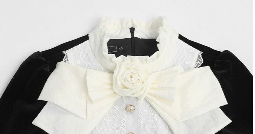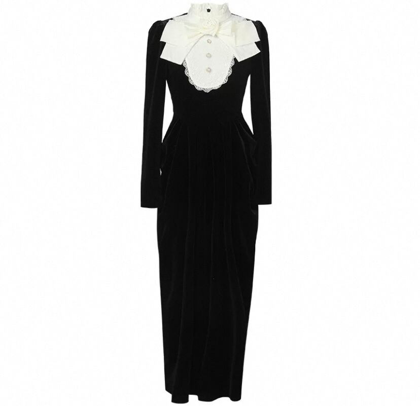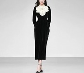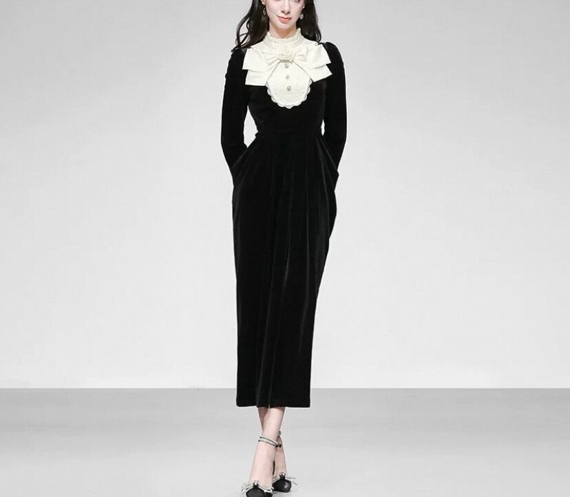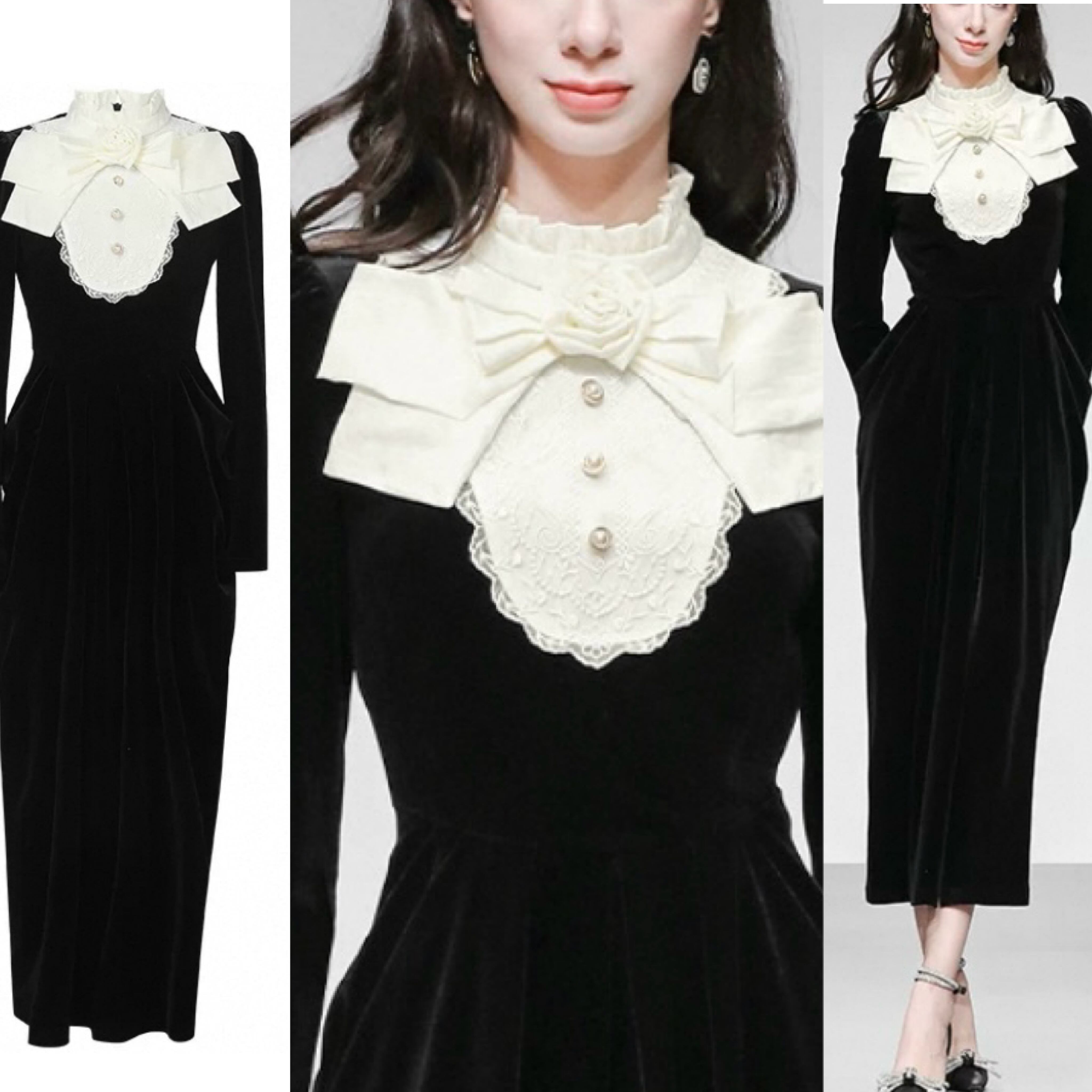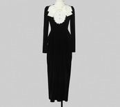 カメリア リボン、白、黒 ベルベット、XL ベロア、タイト マーメイド スリット