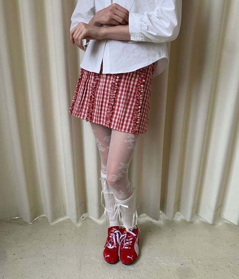チェック 黒 赤 ミニスカート リボン フリル ボトムス マイクロミニスカート タイト チェック。ギンガムチェック 原宿 かわいい