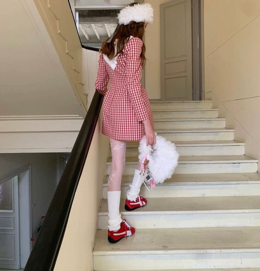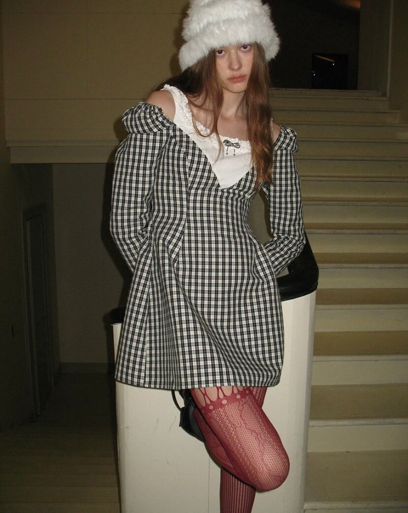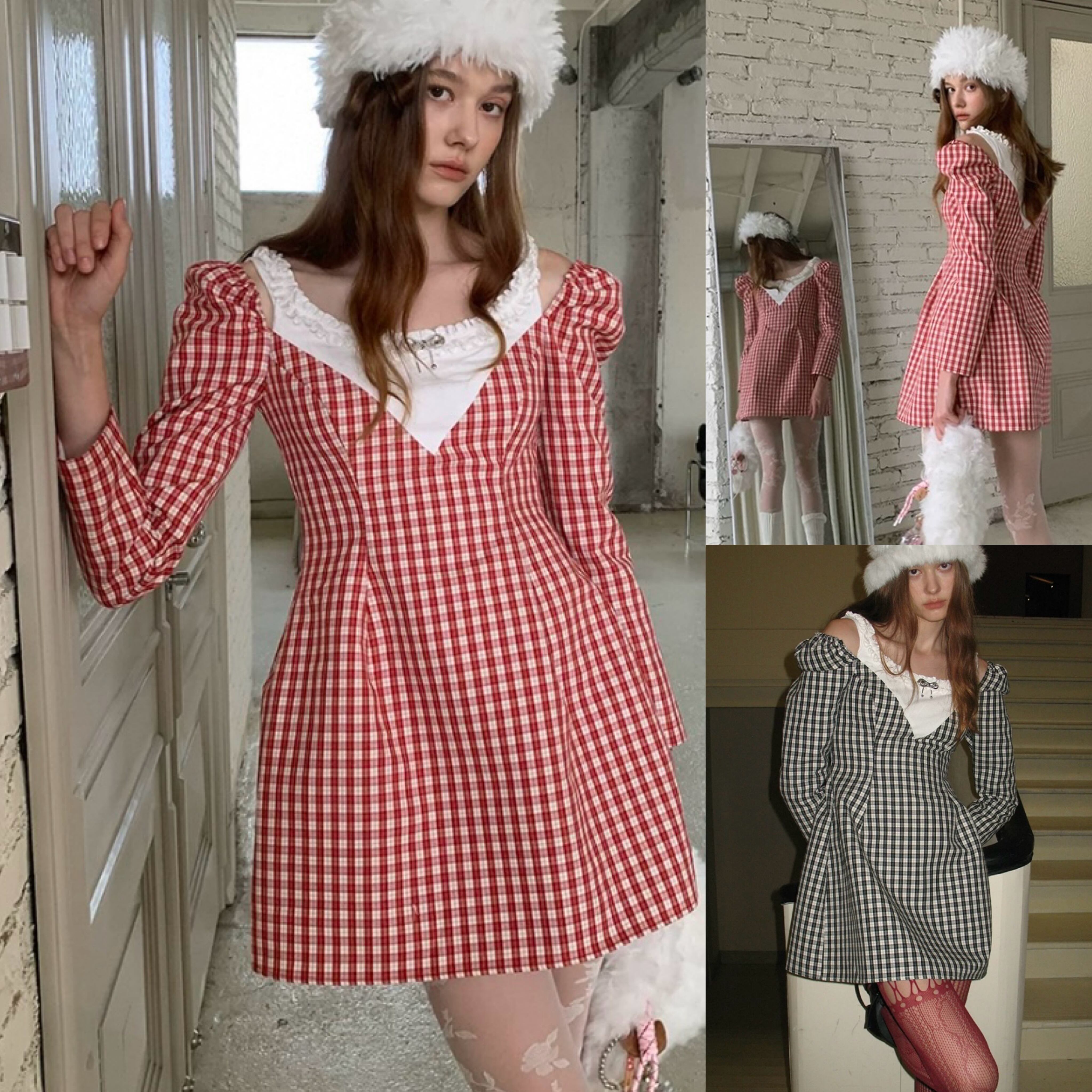 ★サイズ 赤 オフショルダー 黒 ギンガムチェック ワンピース オフ、ショルダー、トップス、ミニスカート、ボトムス ワンピース かわいい 原宿