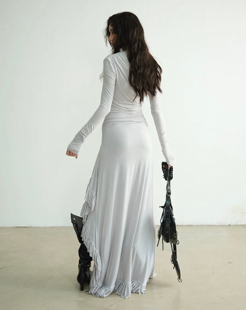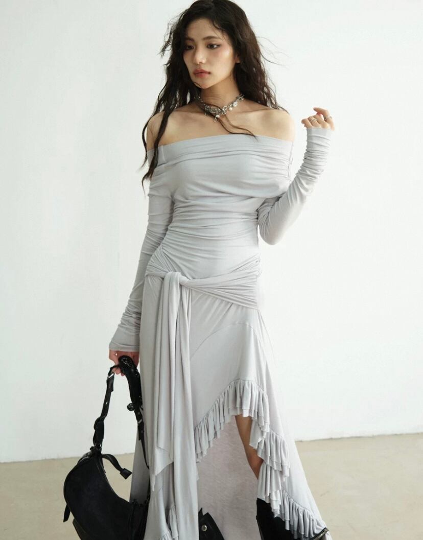 マキシ ワンピース オフショルダー カジュアル スウェット Tシャツ シンプル 無地 グレー 白 ロング ワンピース ロングスカート カジュアル スウェット セクシー タイト ストリート ワンピース ドレス ロング Tシャツ