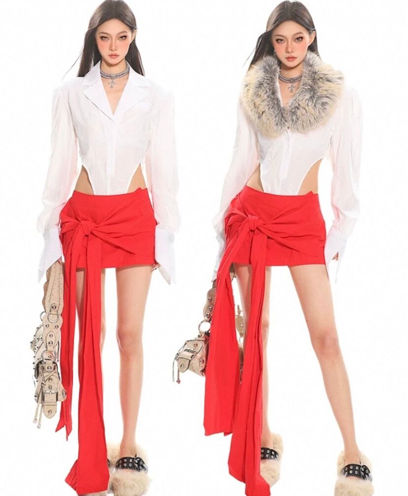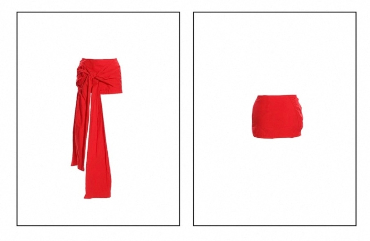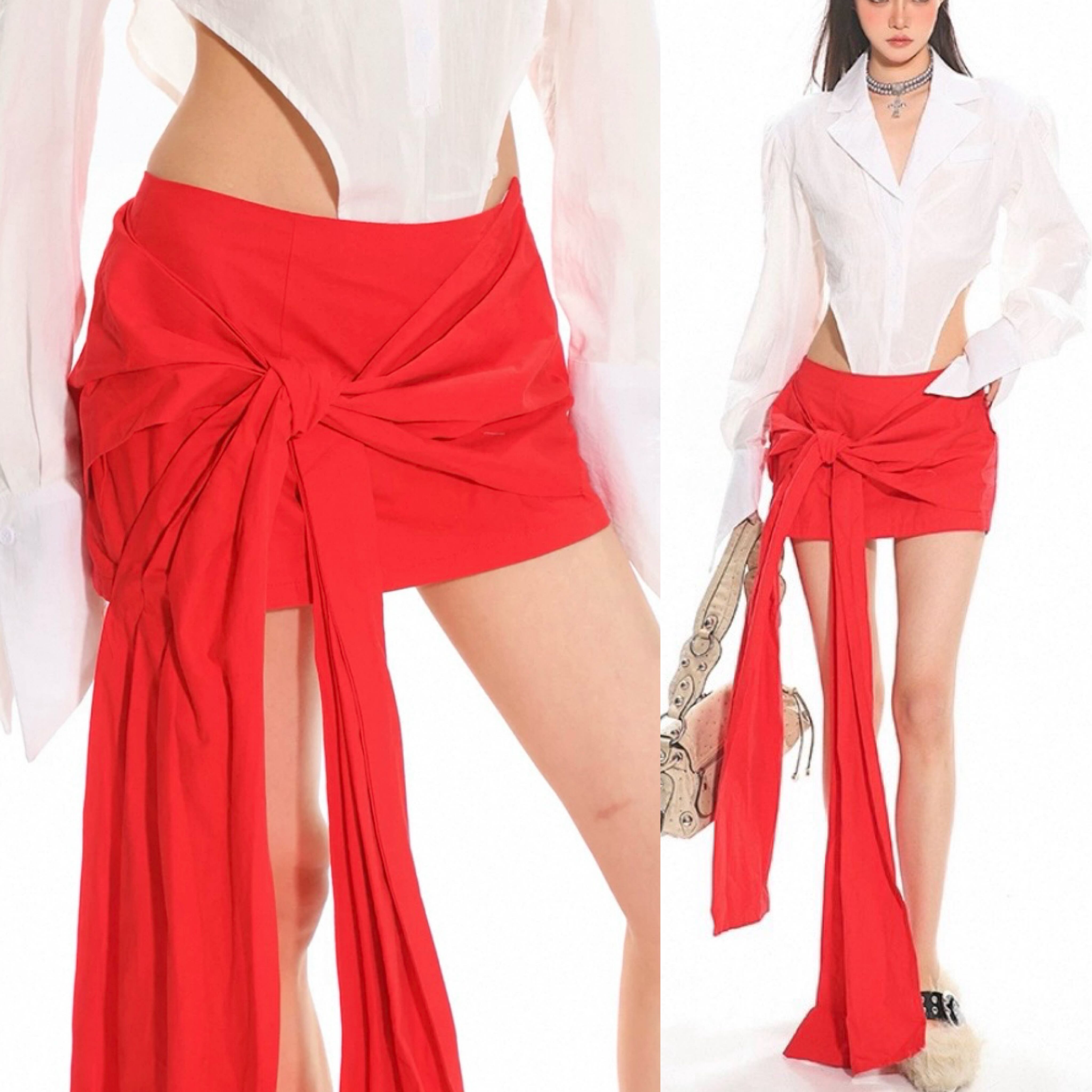 ミニスカート ボトムス、タイトスカート リボン、赤 ストリート ダンス クラブ、セクシー、ミニマム 超ミニ 渋谷 ギャル ストリート 重ね着 Y2K