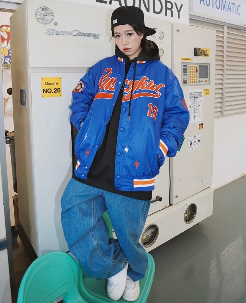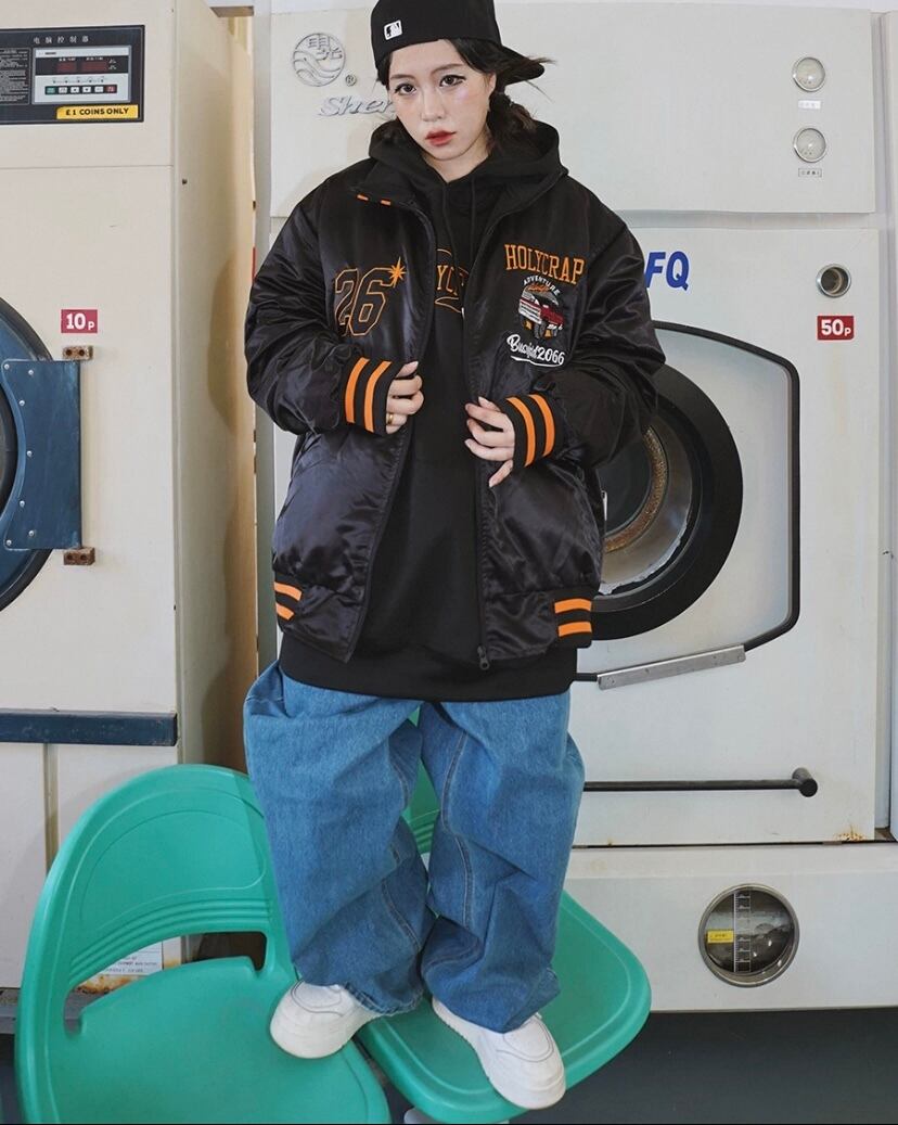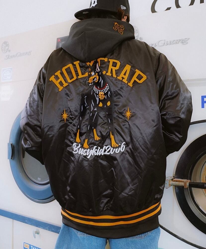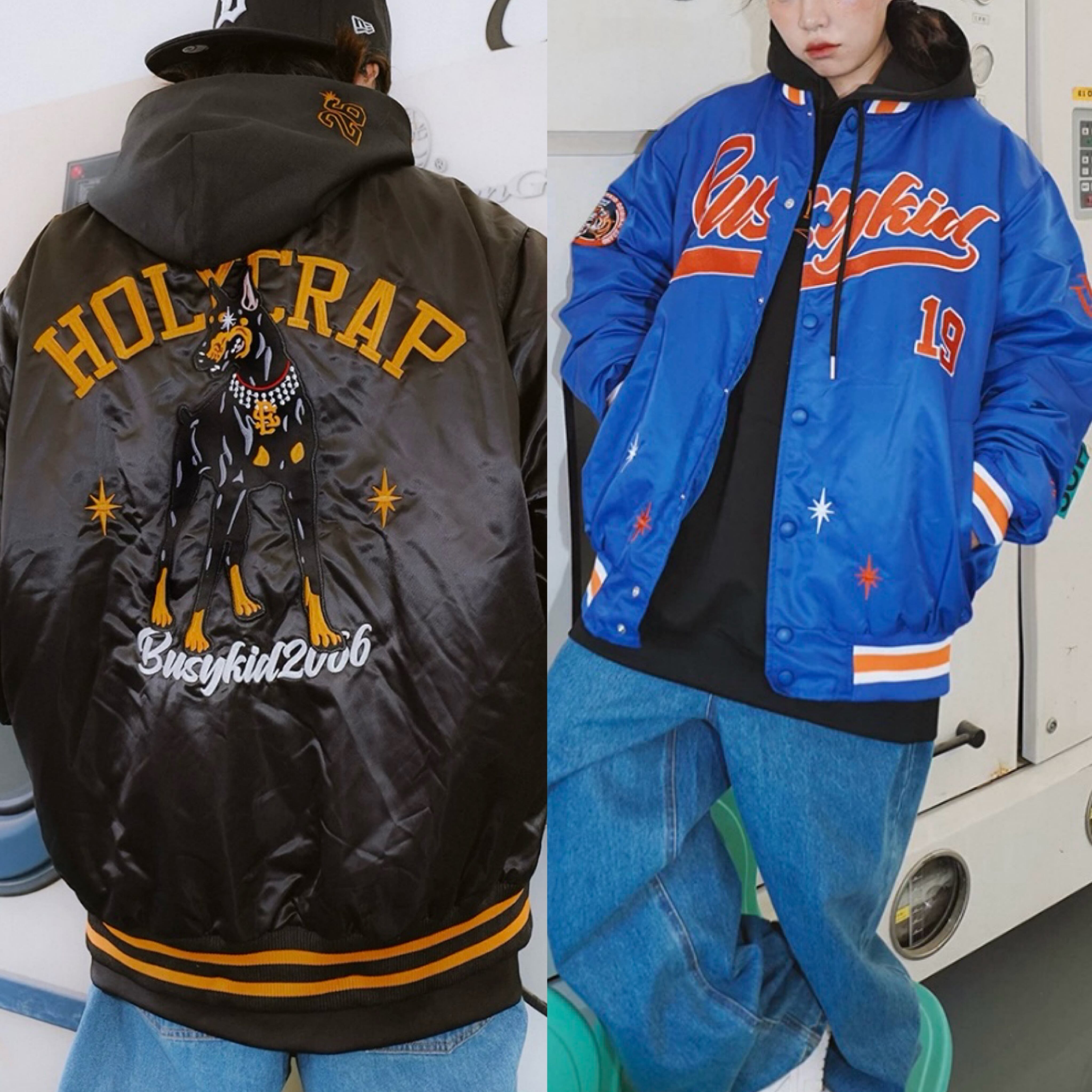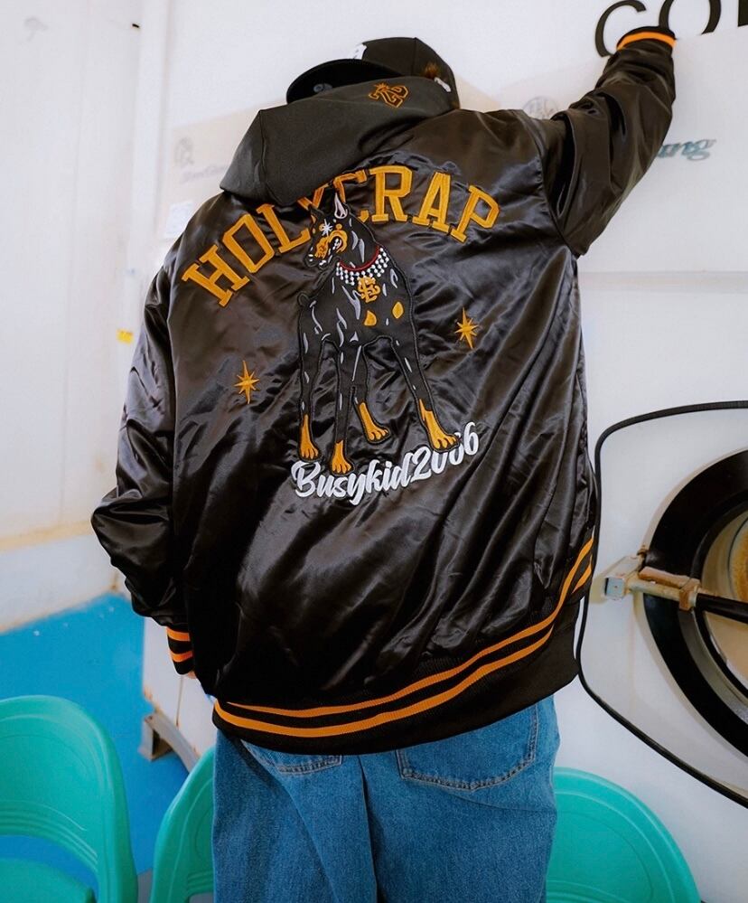 ユニセックス メンズライク オーバーサイズ ジャケット、19 .虎 ワッペン XL 2XL お揃い リンクコーデ。オーバーサイズ ヒップホップ、原宿、渋谷 ダンスクラブ、BBOY スタジャン ジャンバー、アウター、ブルゾン、スポーツ、黒、オレンジ ナンバー、ドーベルマン、犬、ペット