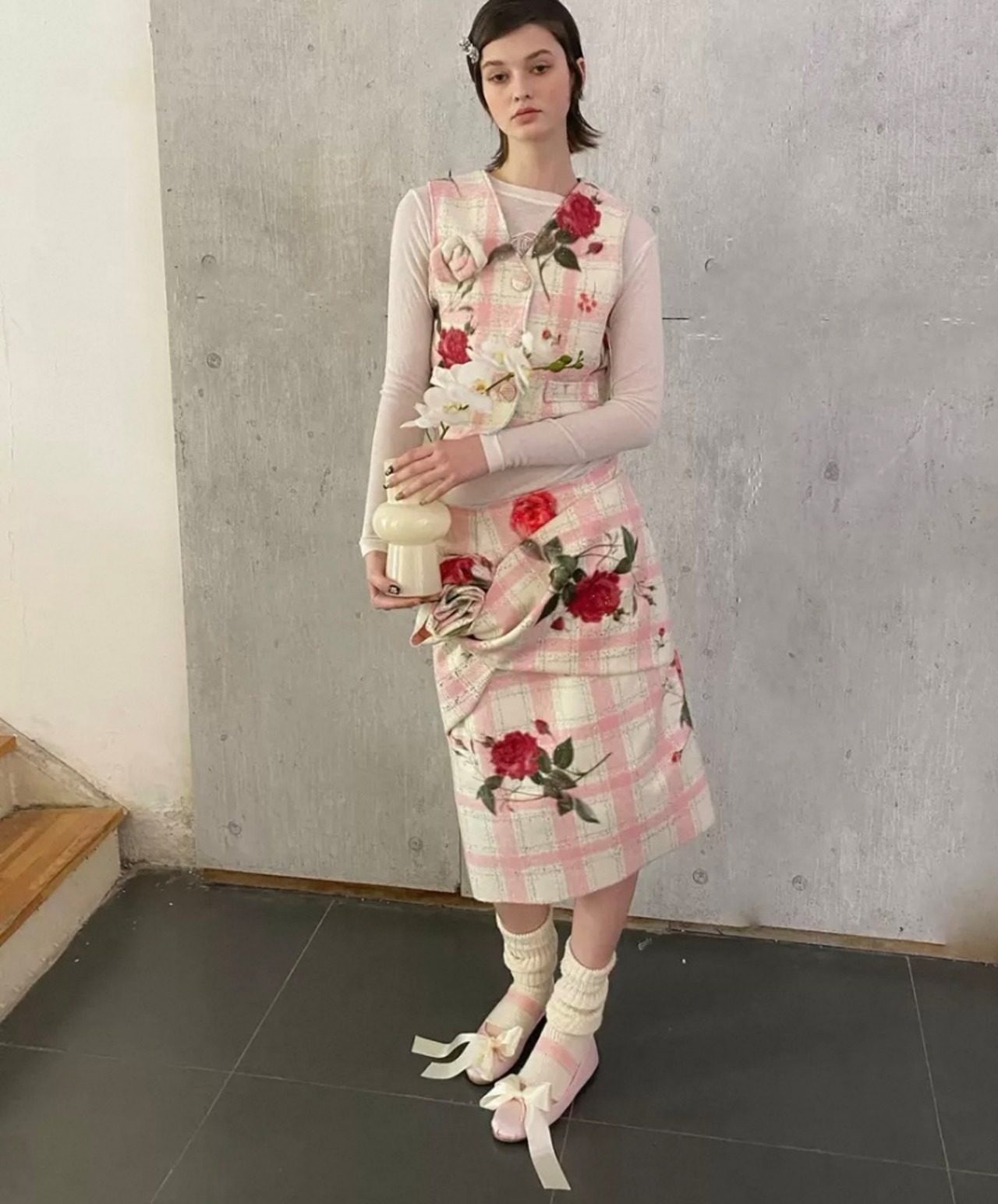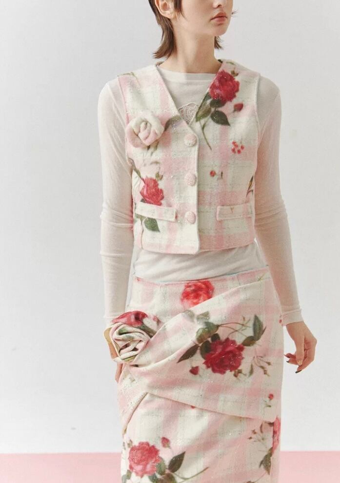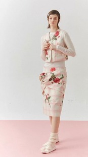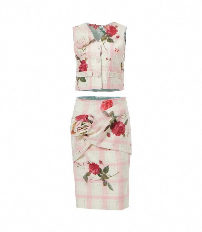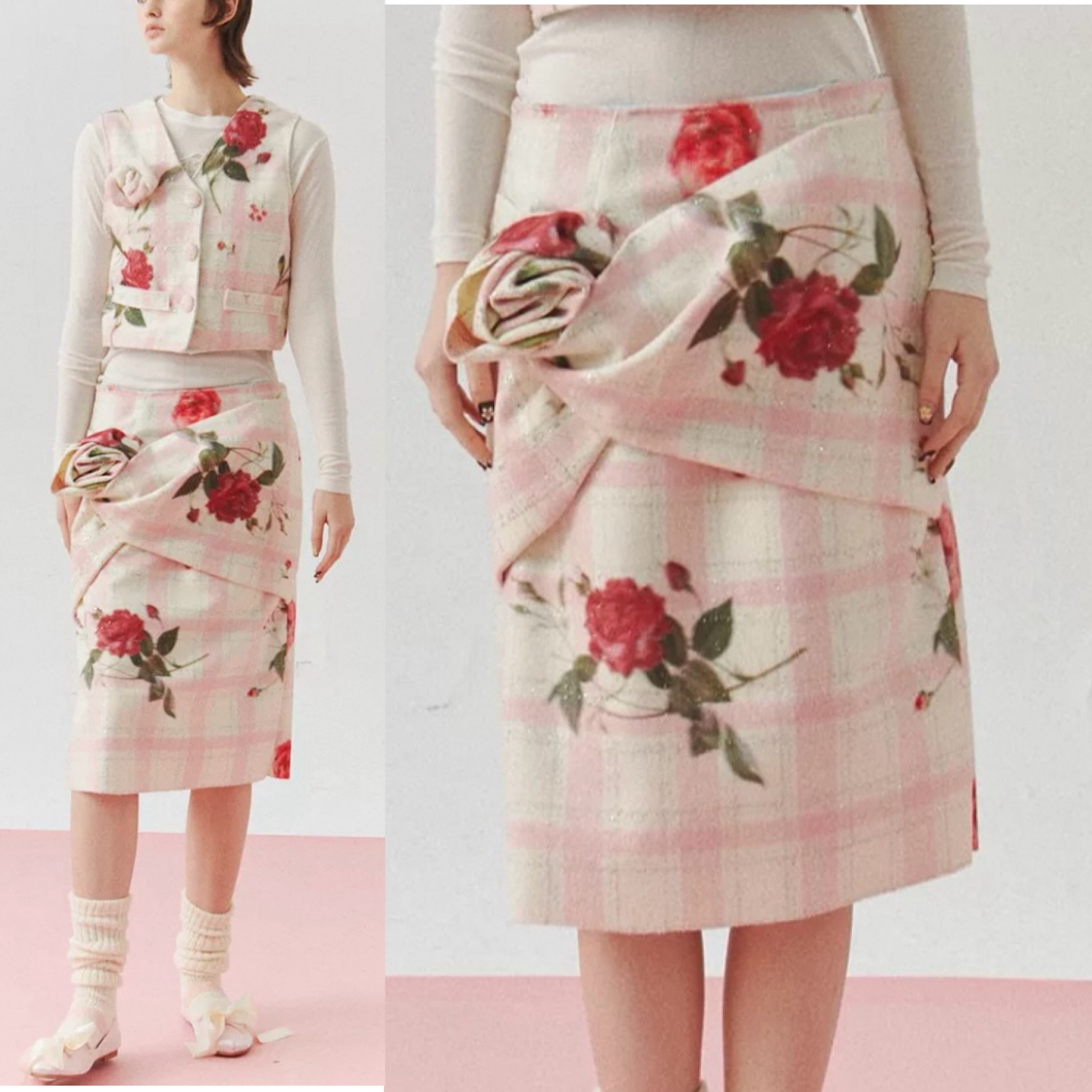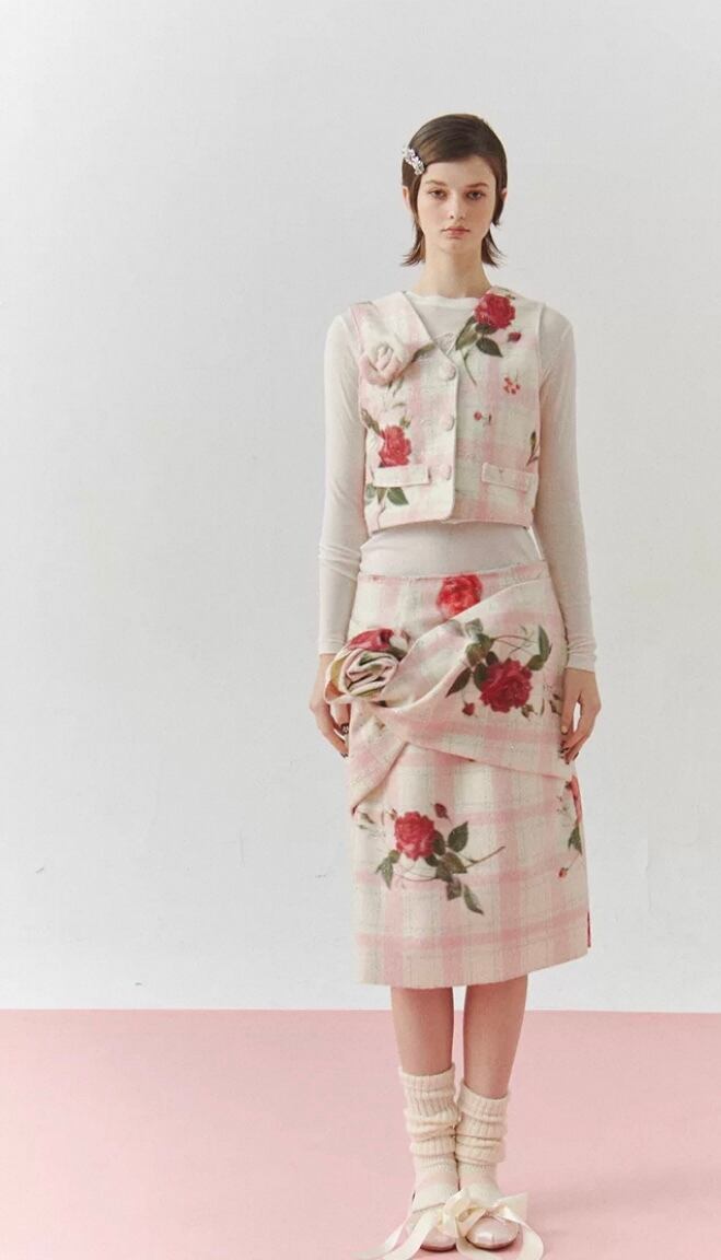 【スカート】ボトムス タイトスカート スリット チェック 花柄 フラワー かわいい 膝丈 丈エレガント、お嬢様 パーティー ツーピース ワンピース ボトムス