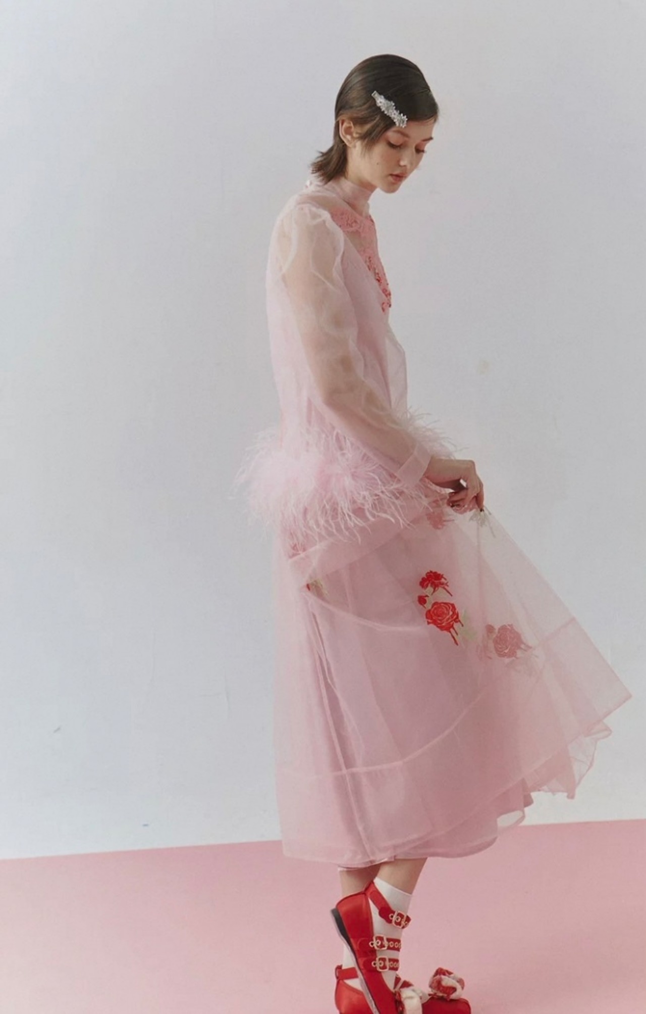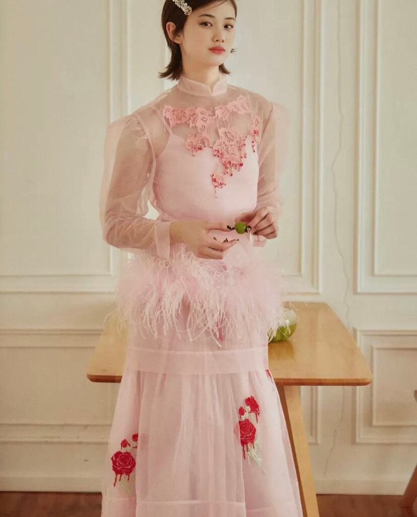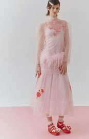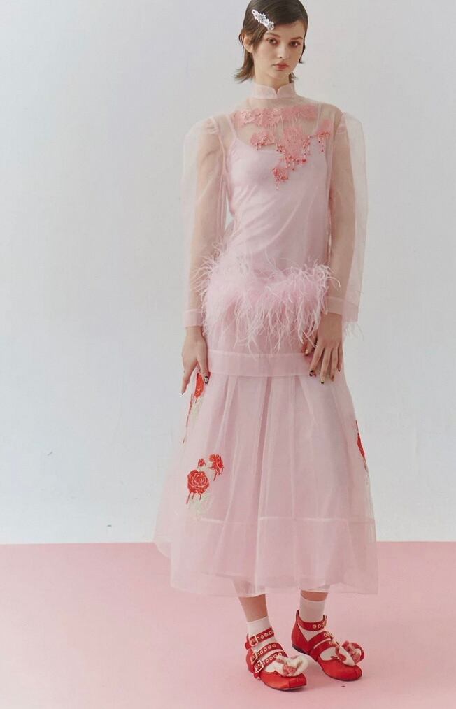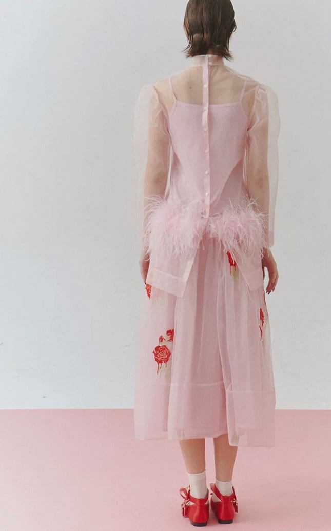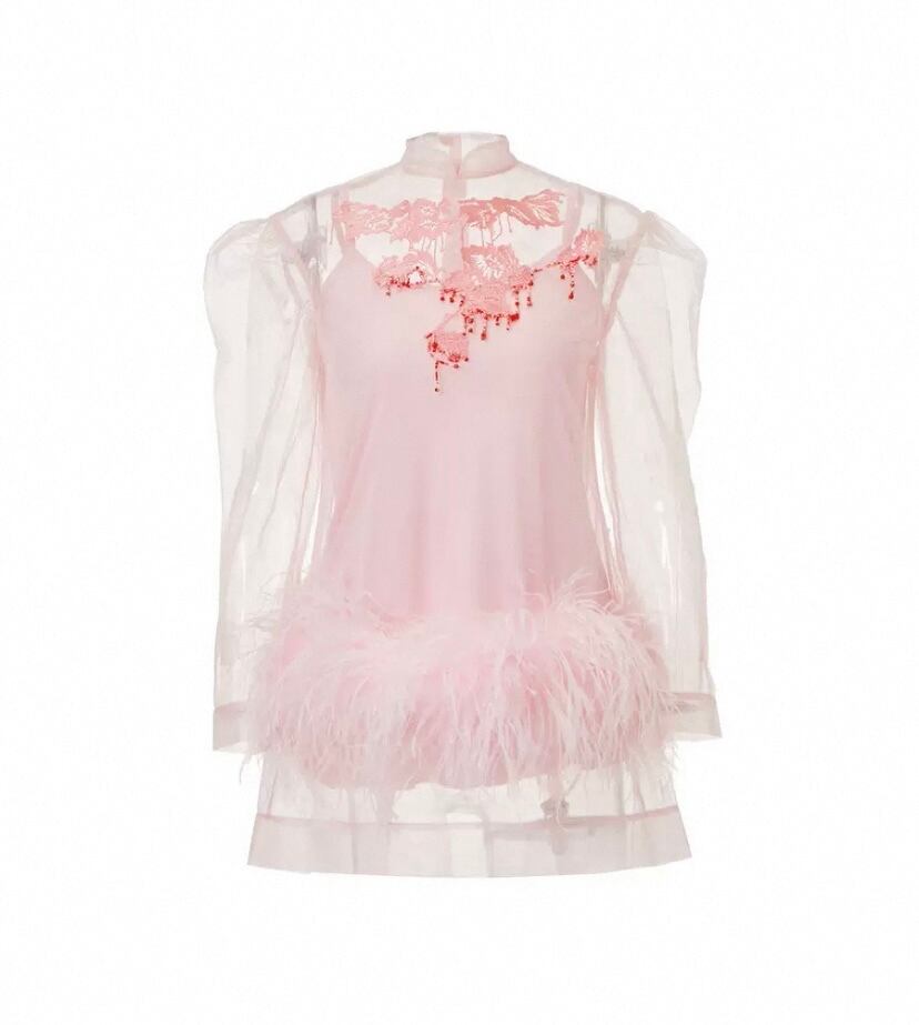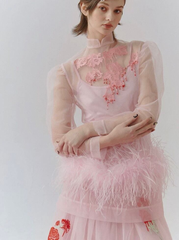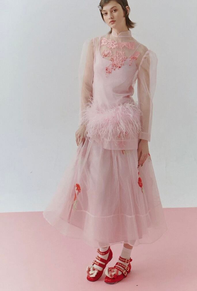 【トップス】シースルー エレガント ブラウス、重ね着 パーティー、花柄、フラワー、ファー、刺繍、ゴージャス、パーティー ドレス、ブラウス、シャツ、エレガント、銀座、表参道、お嬢様