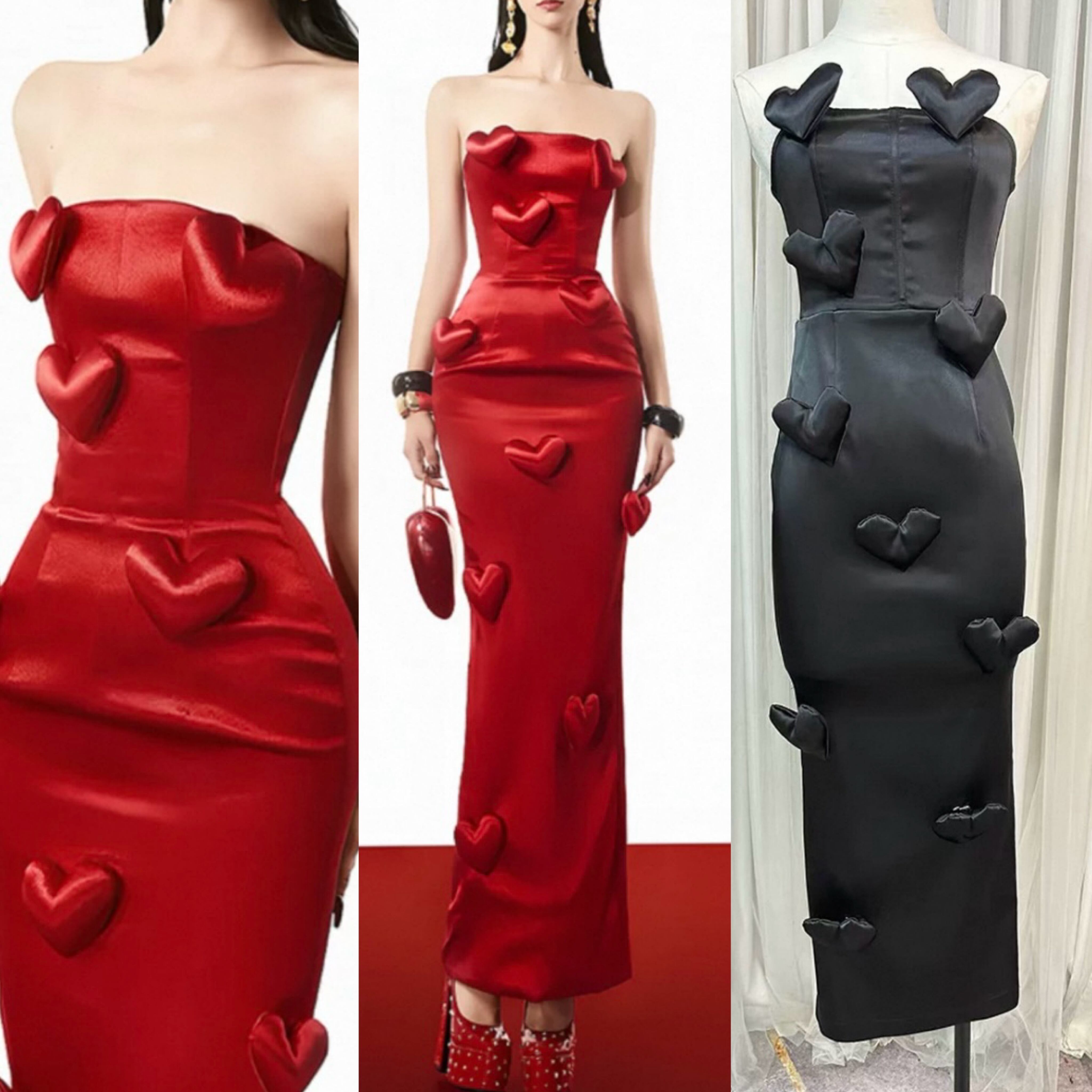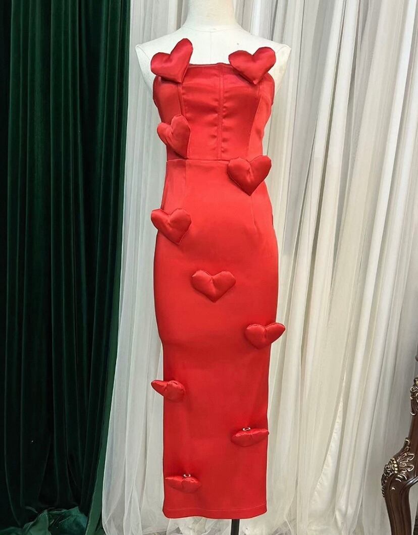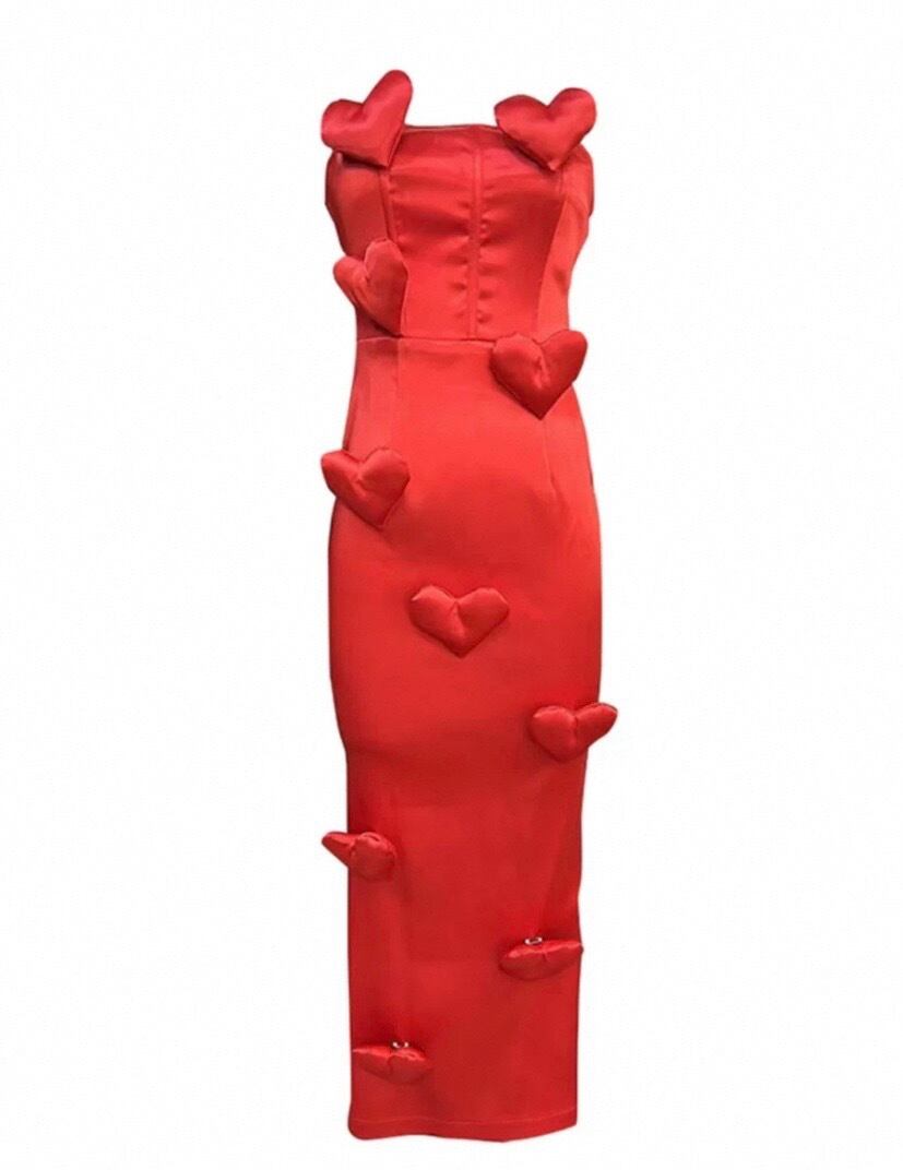 タイトスカート マーメイド ハート ぷくぷく デコレーション ベアトップ ドレス 人魚姫 赤 黒 ドレス ワンピース パーティー エレガント、銀座 ゴージャス かわいい 華やか お嬢様 表参道 ベアトップ チューブトップ