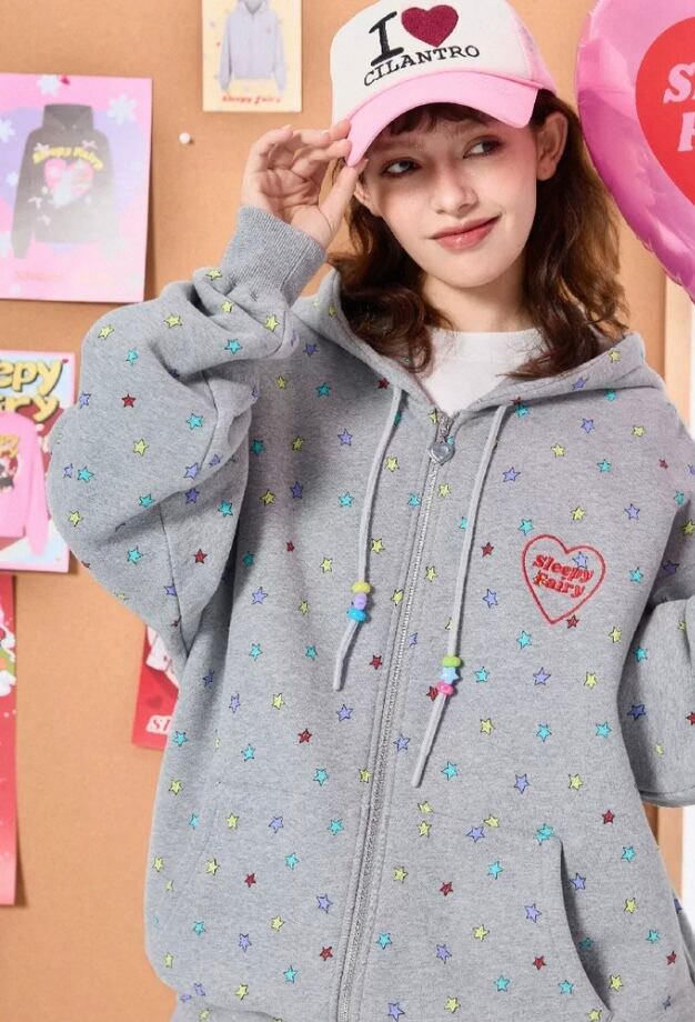 【パーカー】グレー ピンク スウェット パーカー スウェット、オーバーサイズ、ネイビー ストリート カジュアル ジム ゆったり オーバーサイズ 運動トップスうさぎ、青、 トレーナー パーカー アウター 原宿 ジャケット、コート運動、事務カジュアル星カラフルレインボーフード スウェット ルームウェア ハート かわいい きらきら