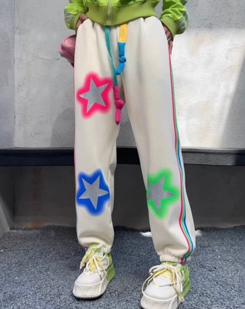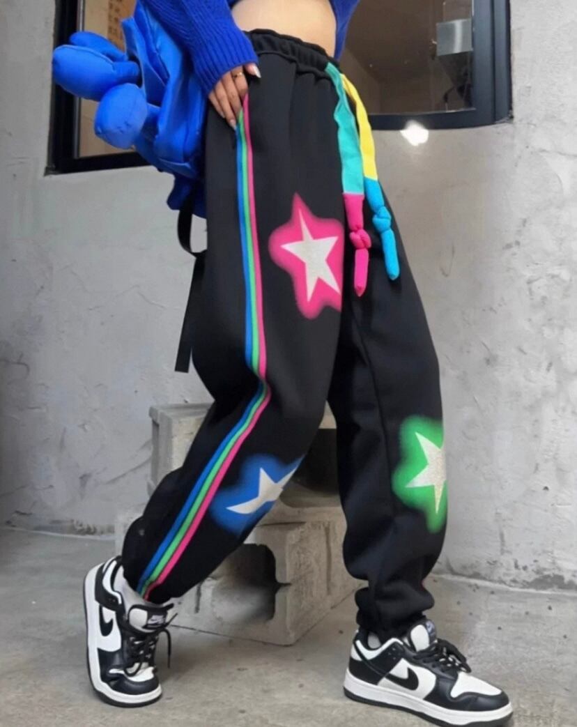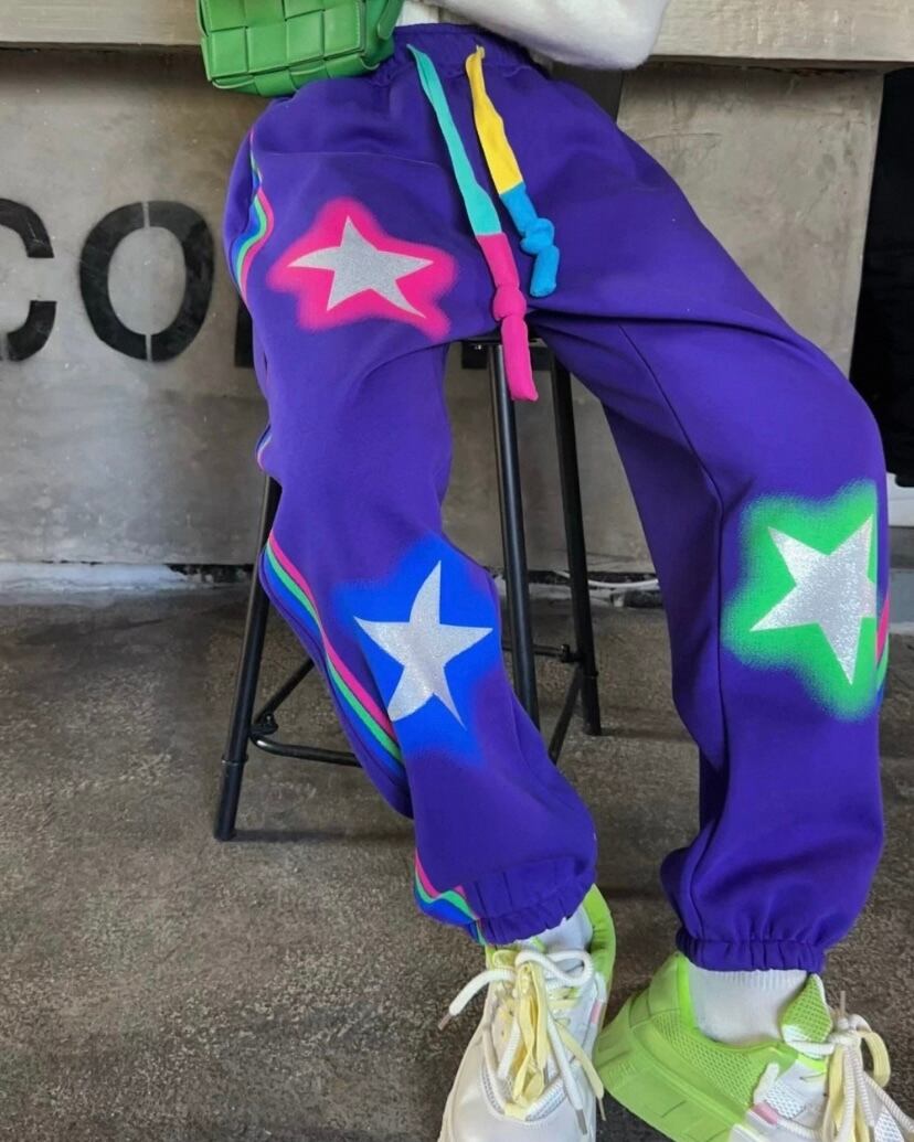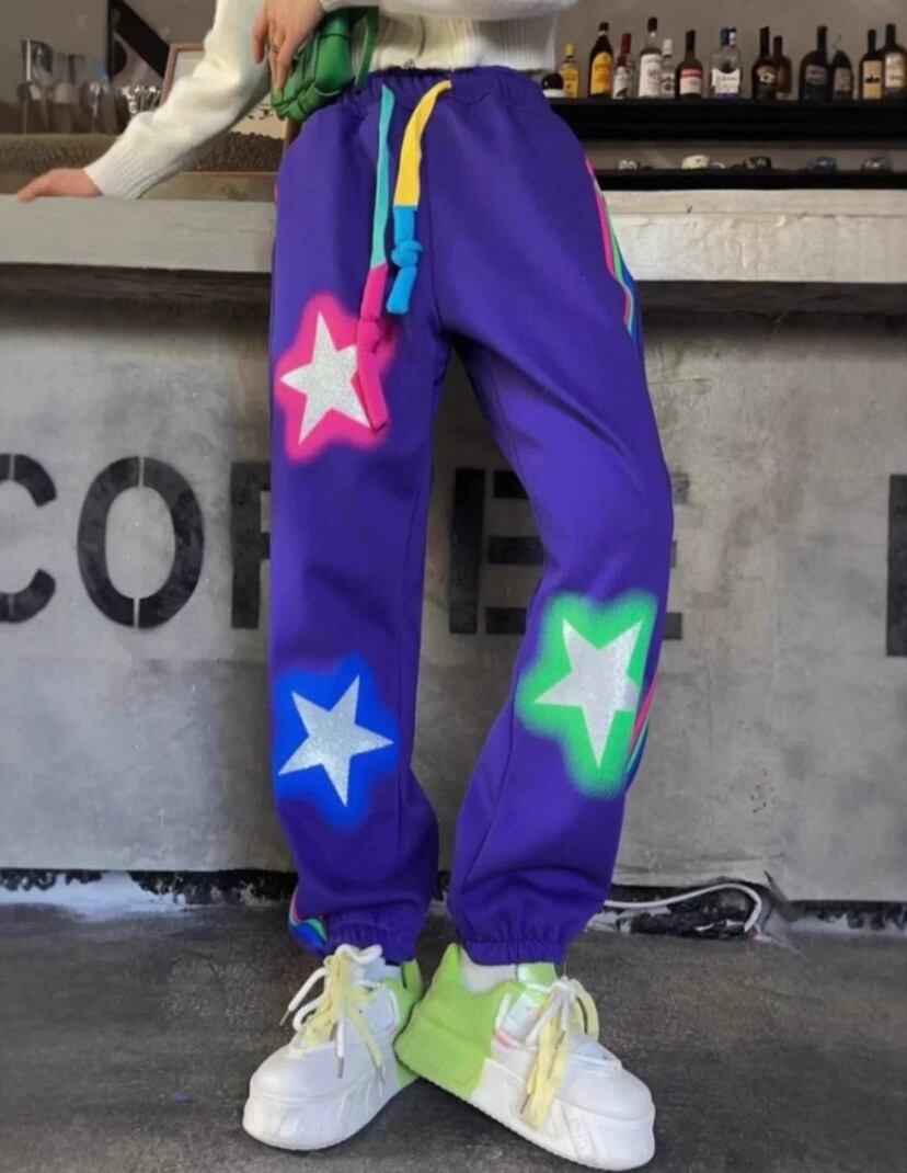 ボトムス スウェット 星 紫 ネイビー パンツ ズボンパーカー スウェット、オーバーサイズ、ネイビー ストリート カジュアル ジム ゆったり オーバーサイズ 運動トップスうさぎ、青、
