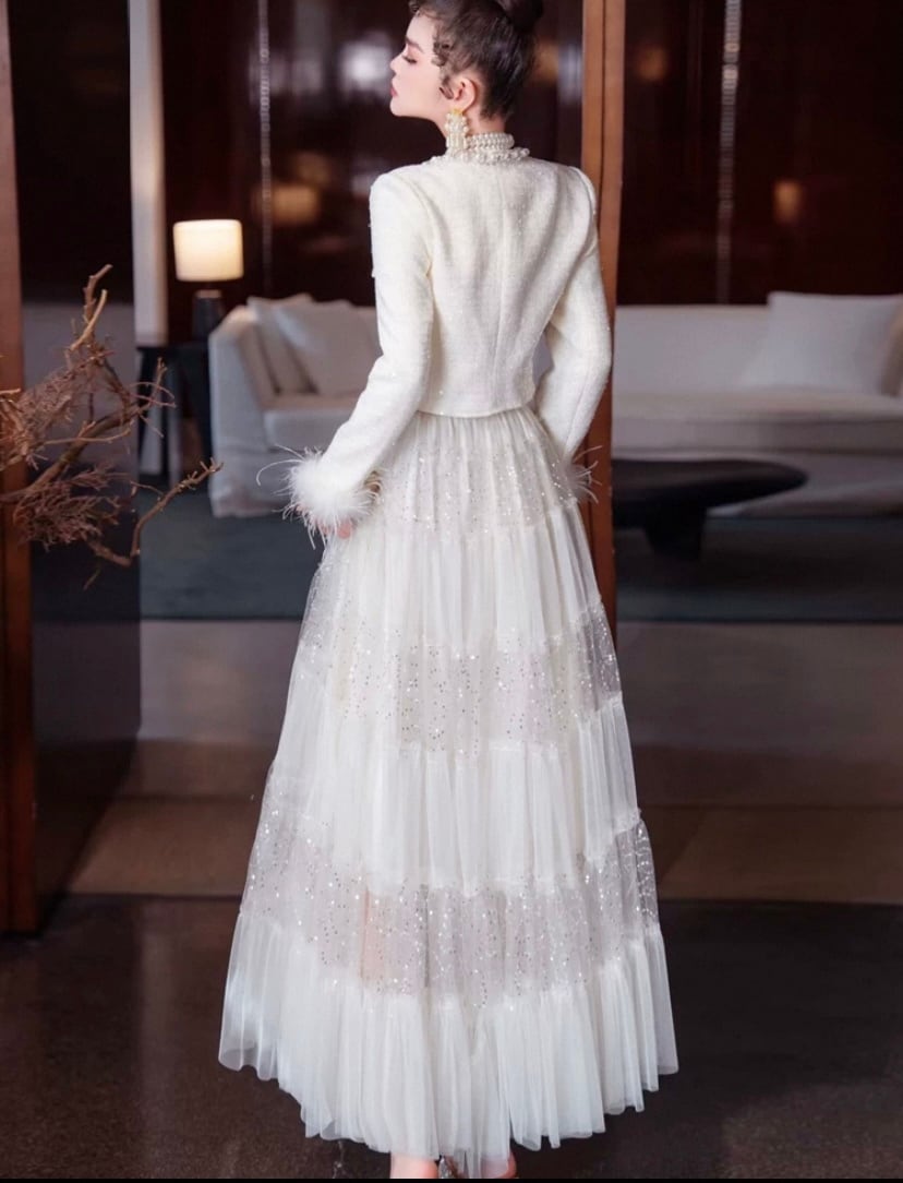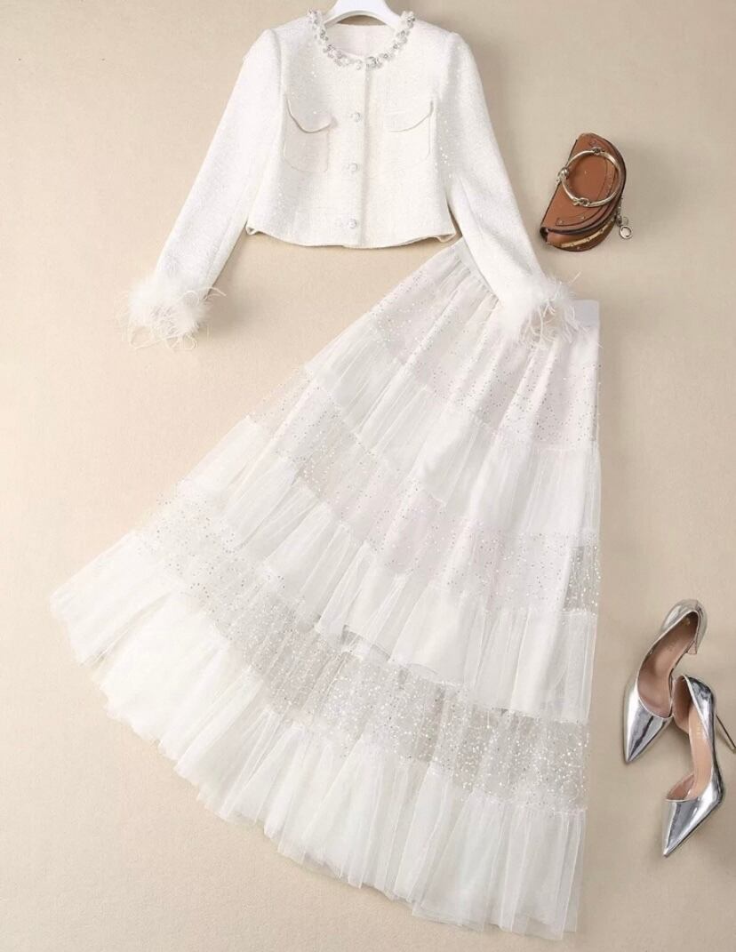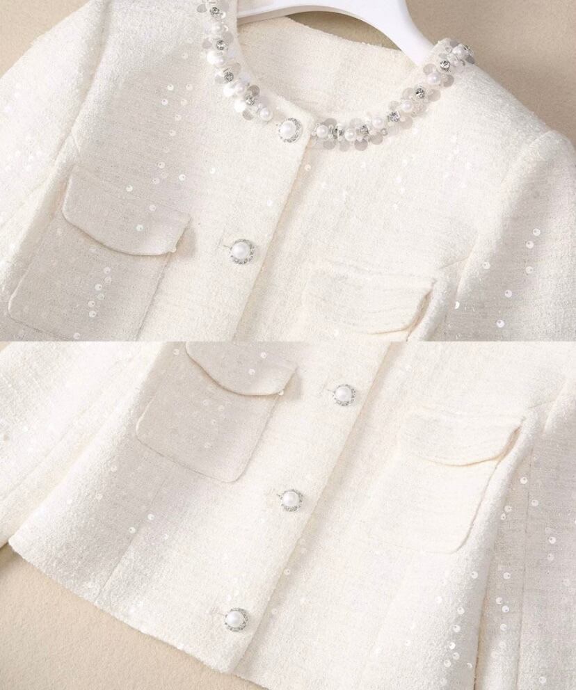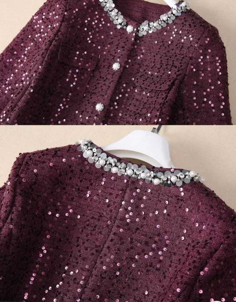【セット】紫 ジャケット、白 ホワイト ツイード風 アウター カーディガン、キラキラ ラインストーン