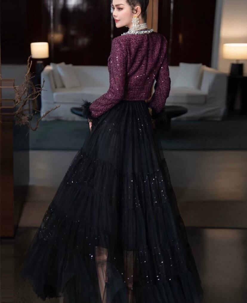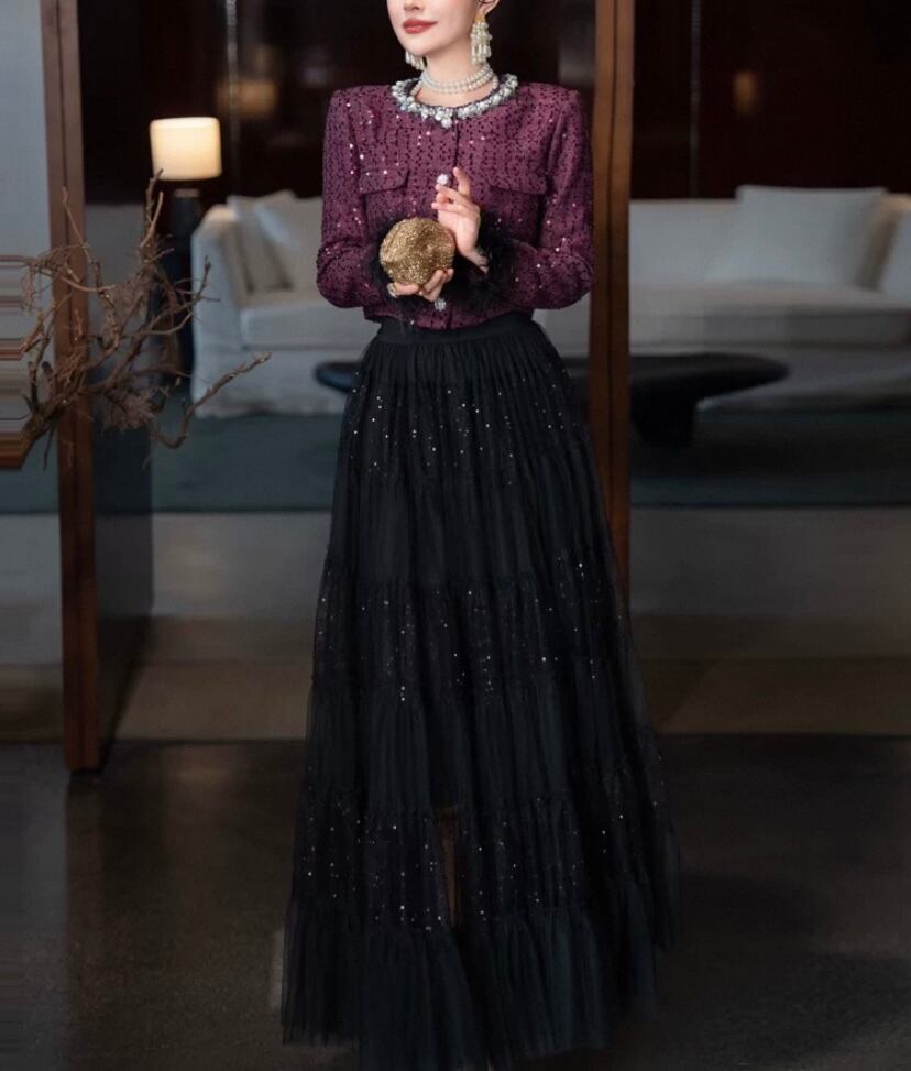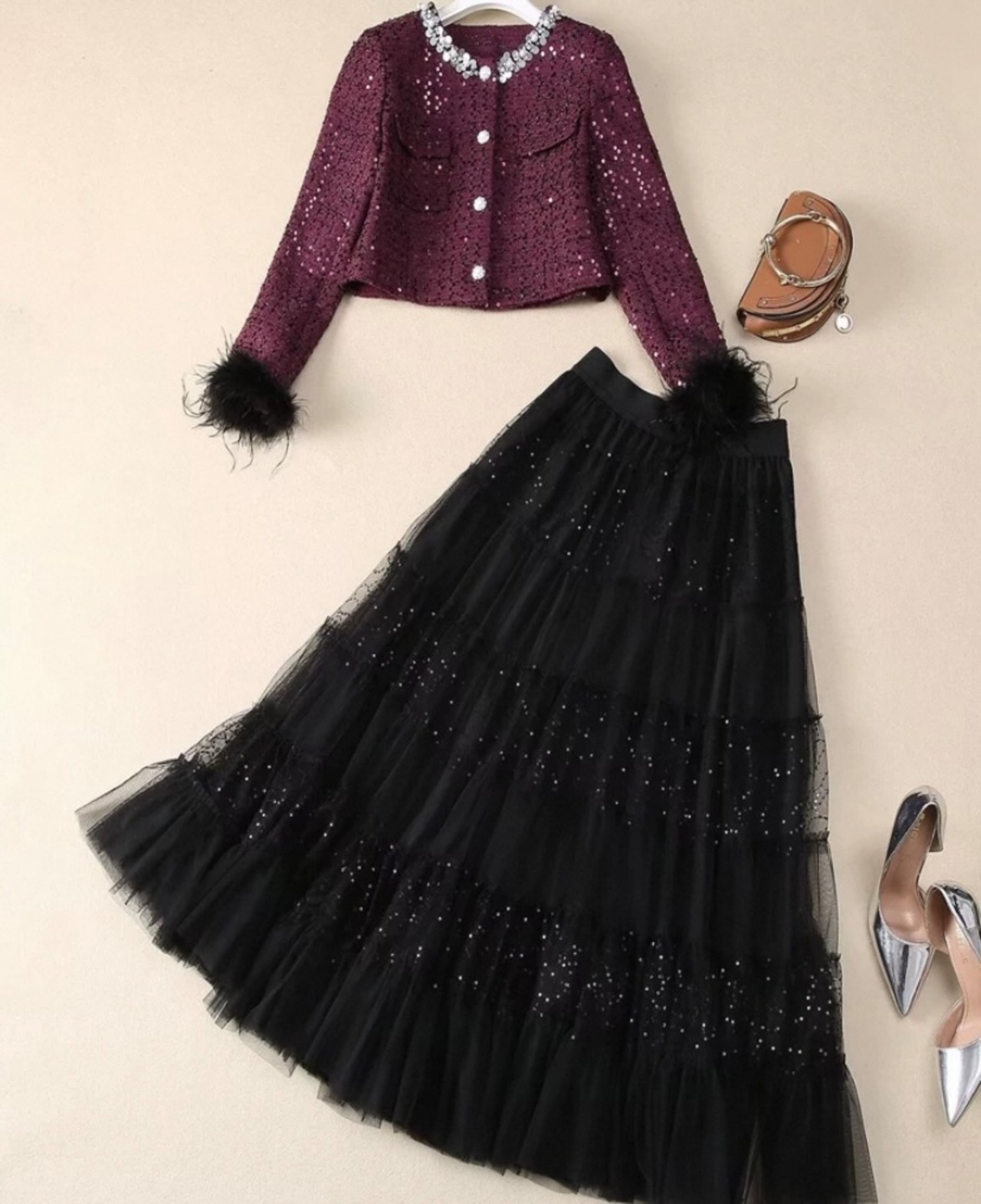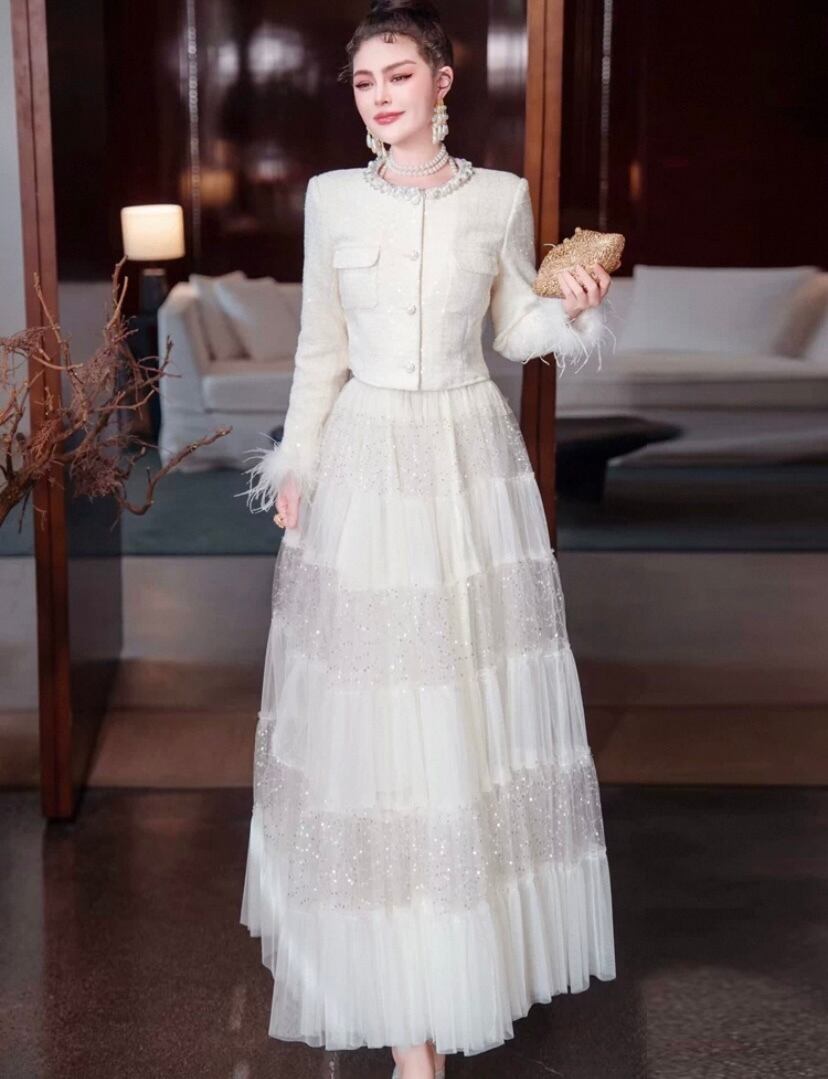 【セット】紫 ジャケット、白 ホワイト ツイード風 アウター カーディガン、キラキラ ラインストーン