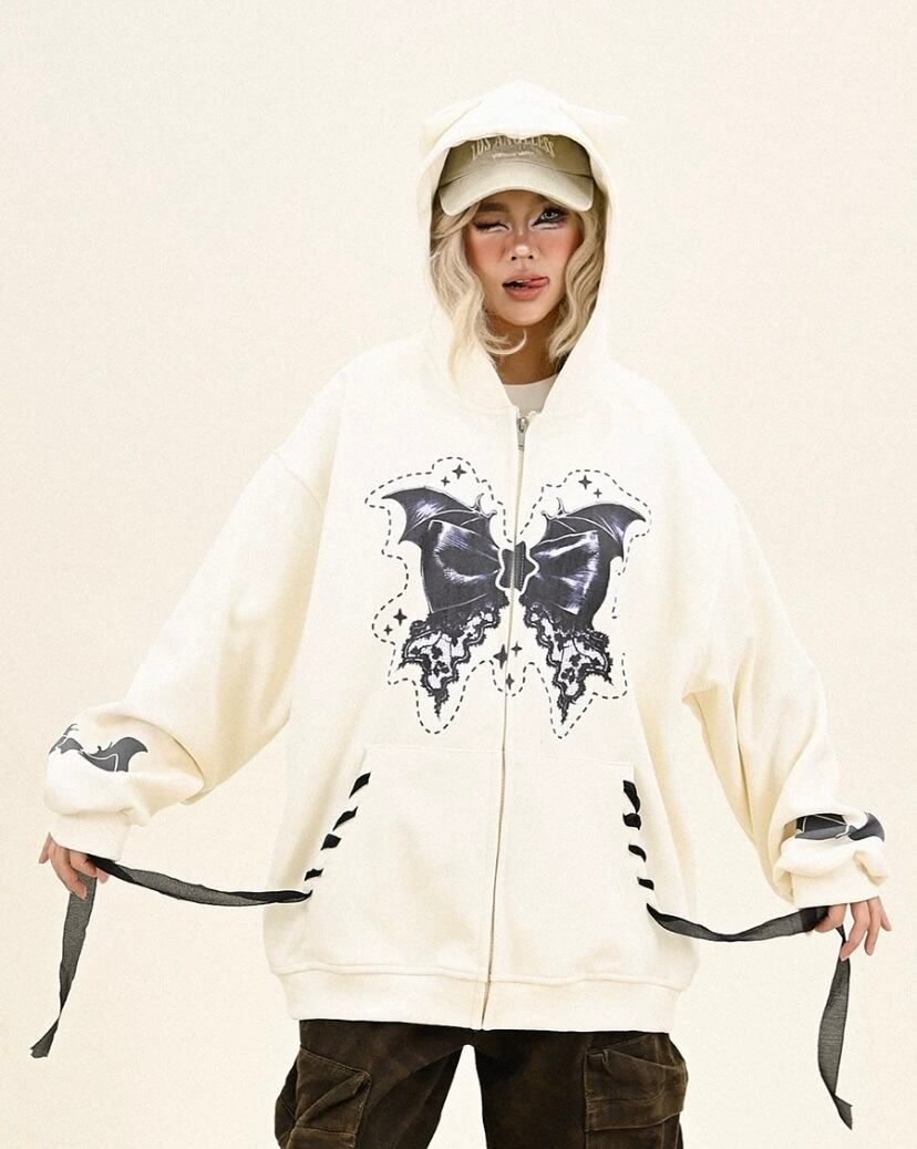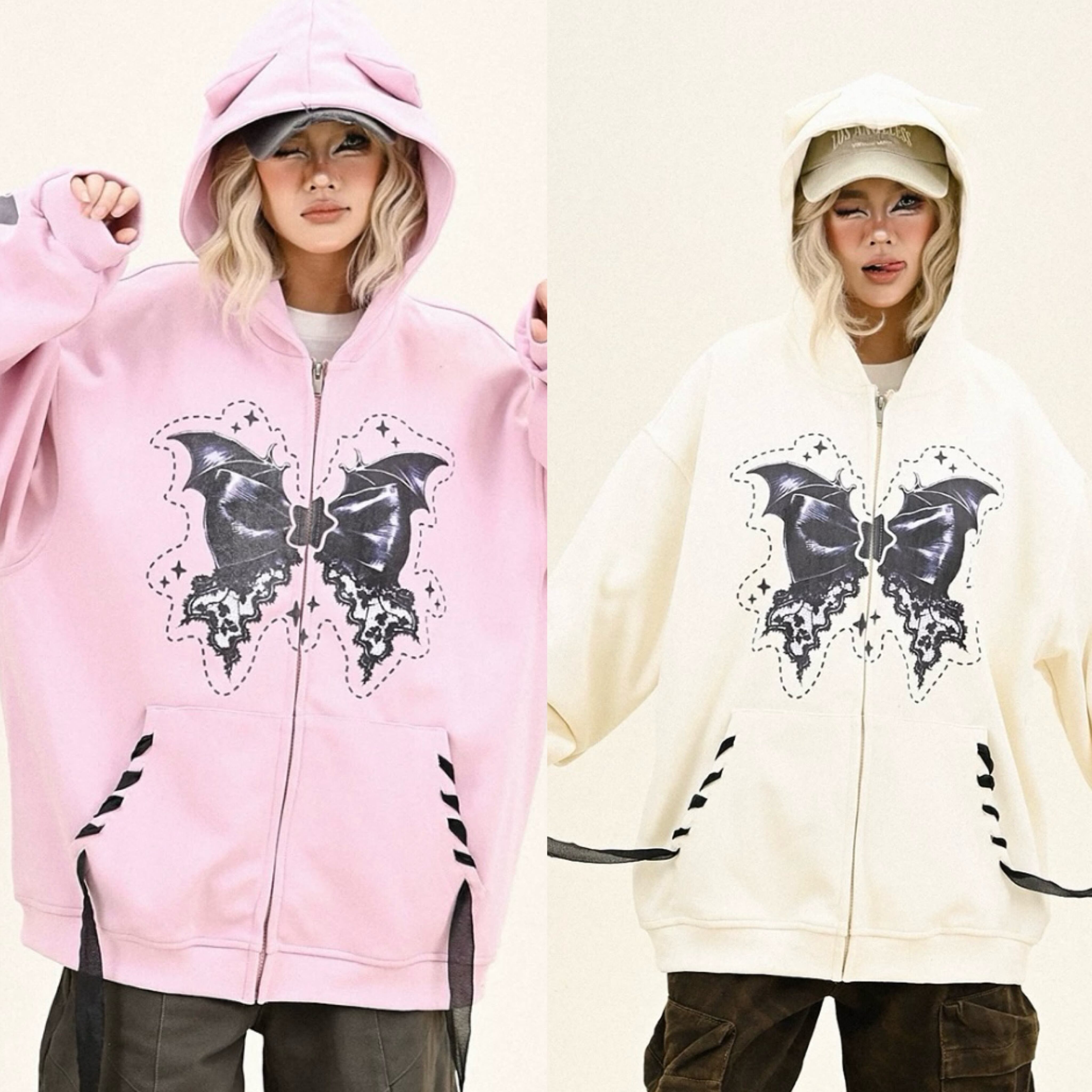 ピンク、ベージュ、バタフライ、リボン、猫耳、耳