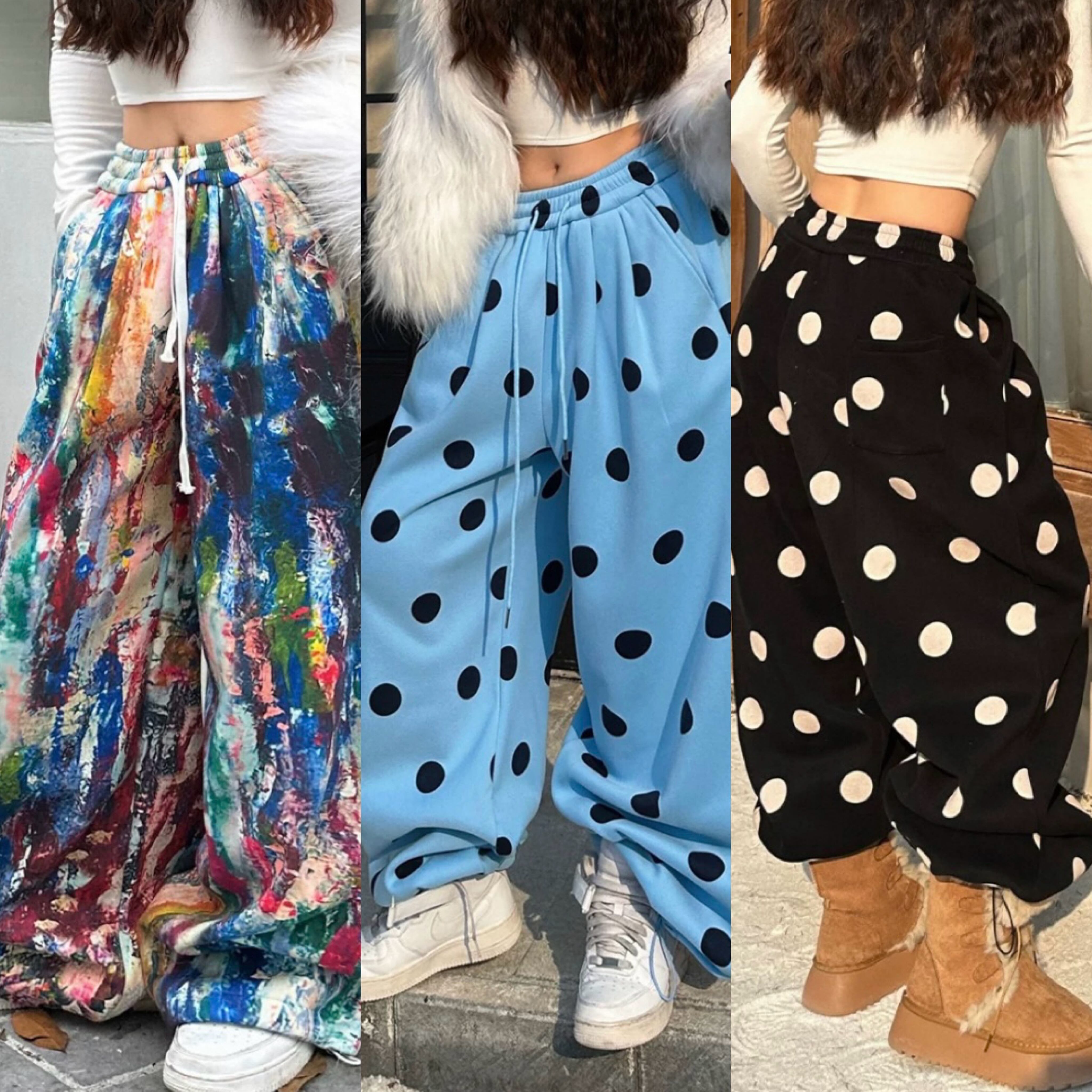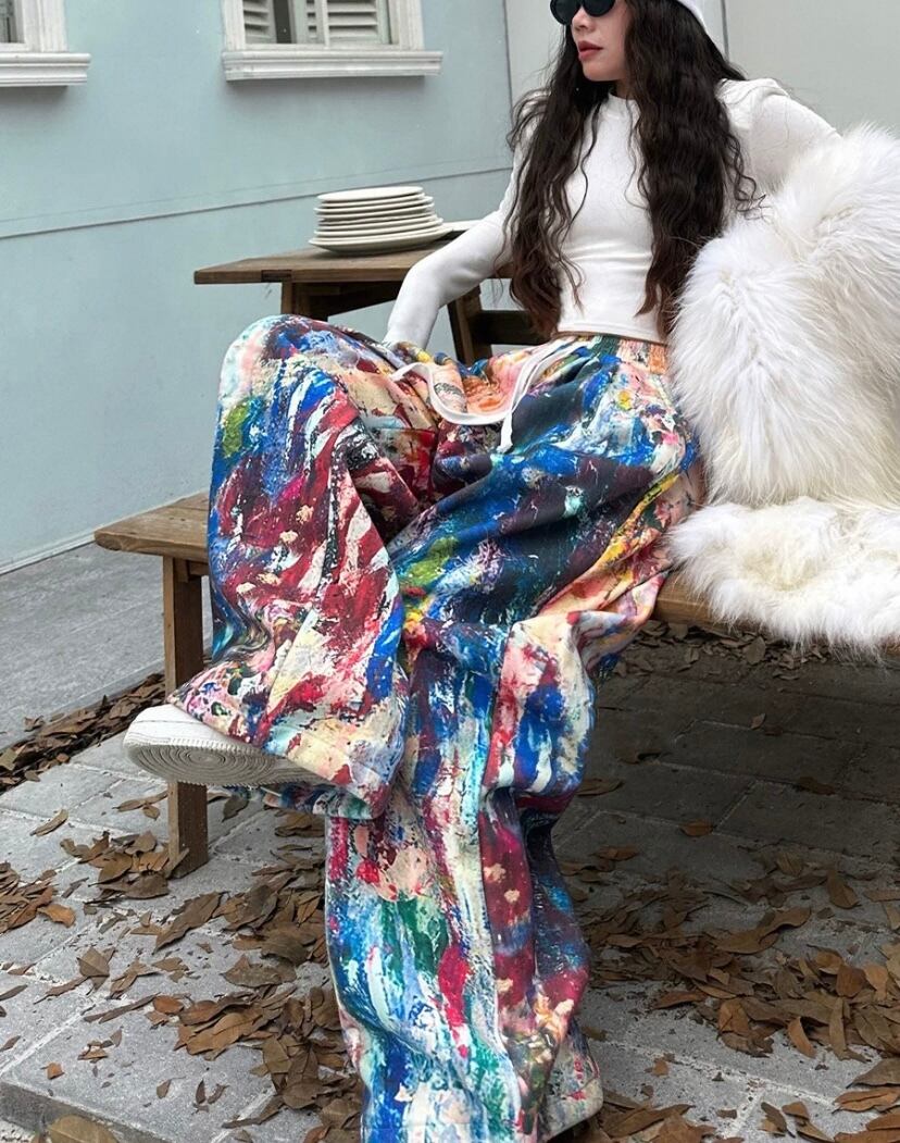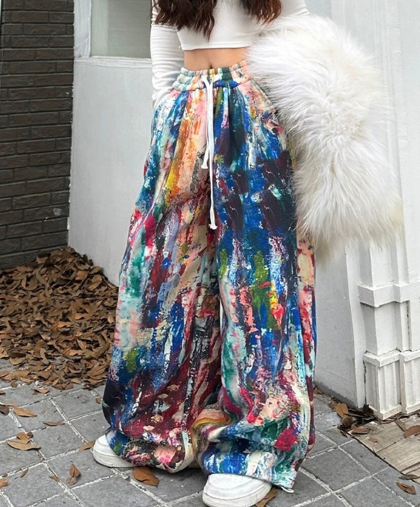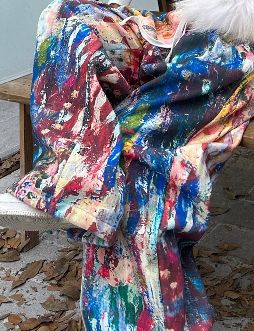 水色、黒 水玉 ドット 柄 ロング 落書き カラフル ペイント