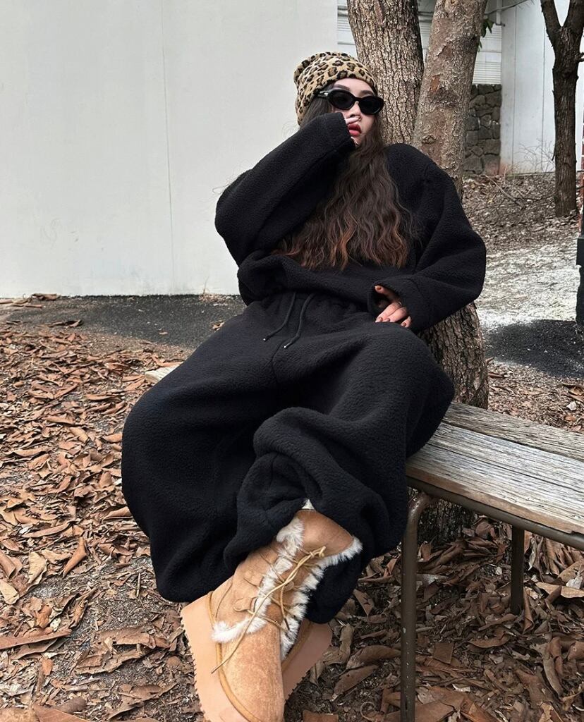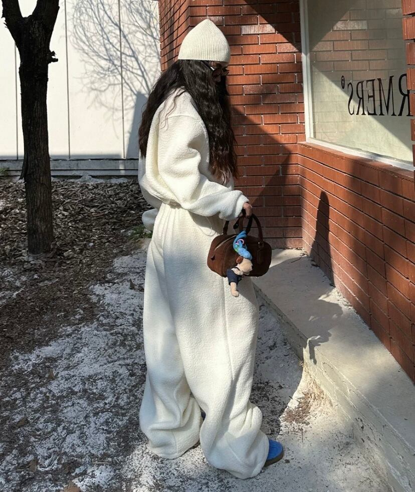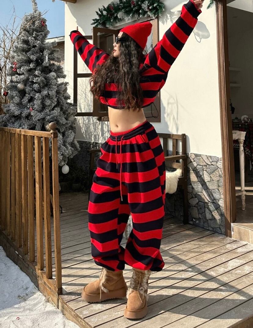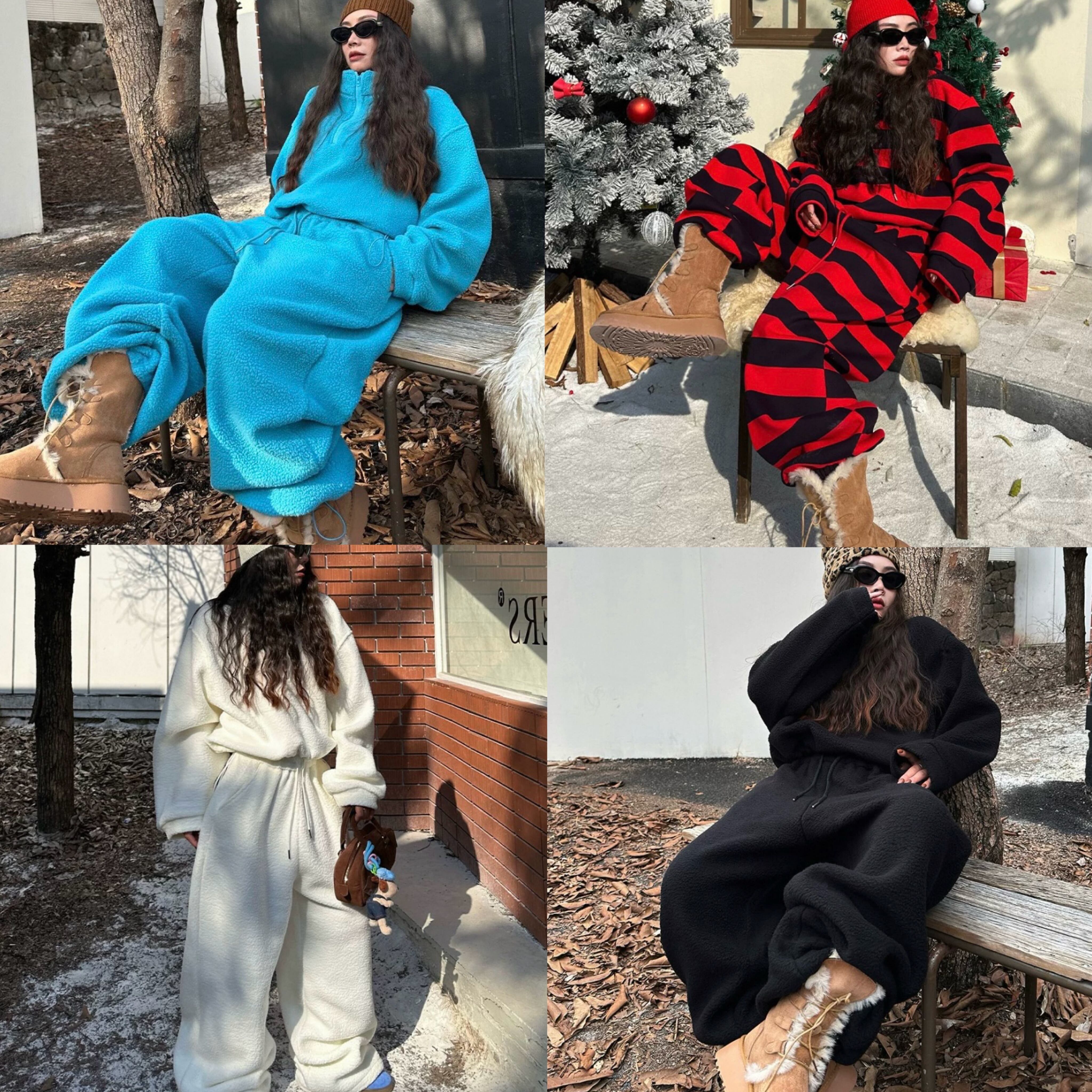 フリース、水色、黒 白 ベージュ、赤 ボーダー セットアップ