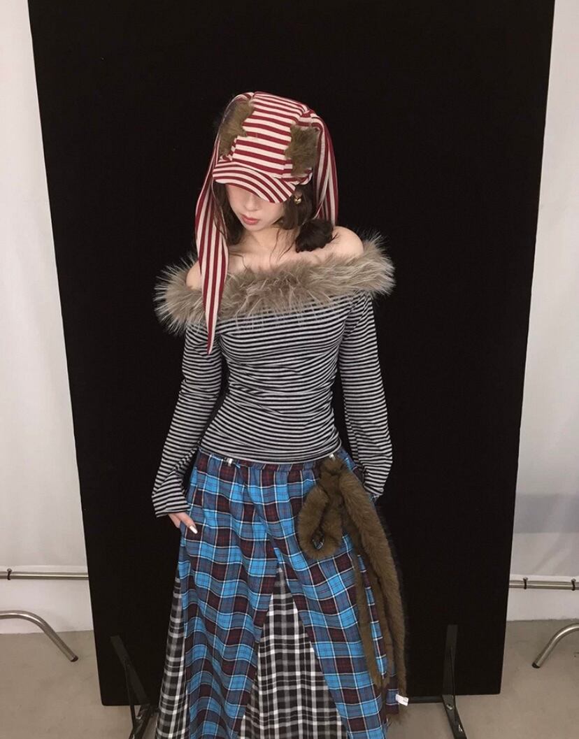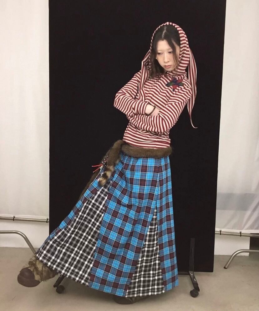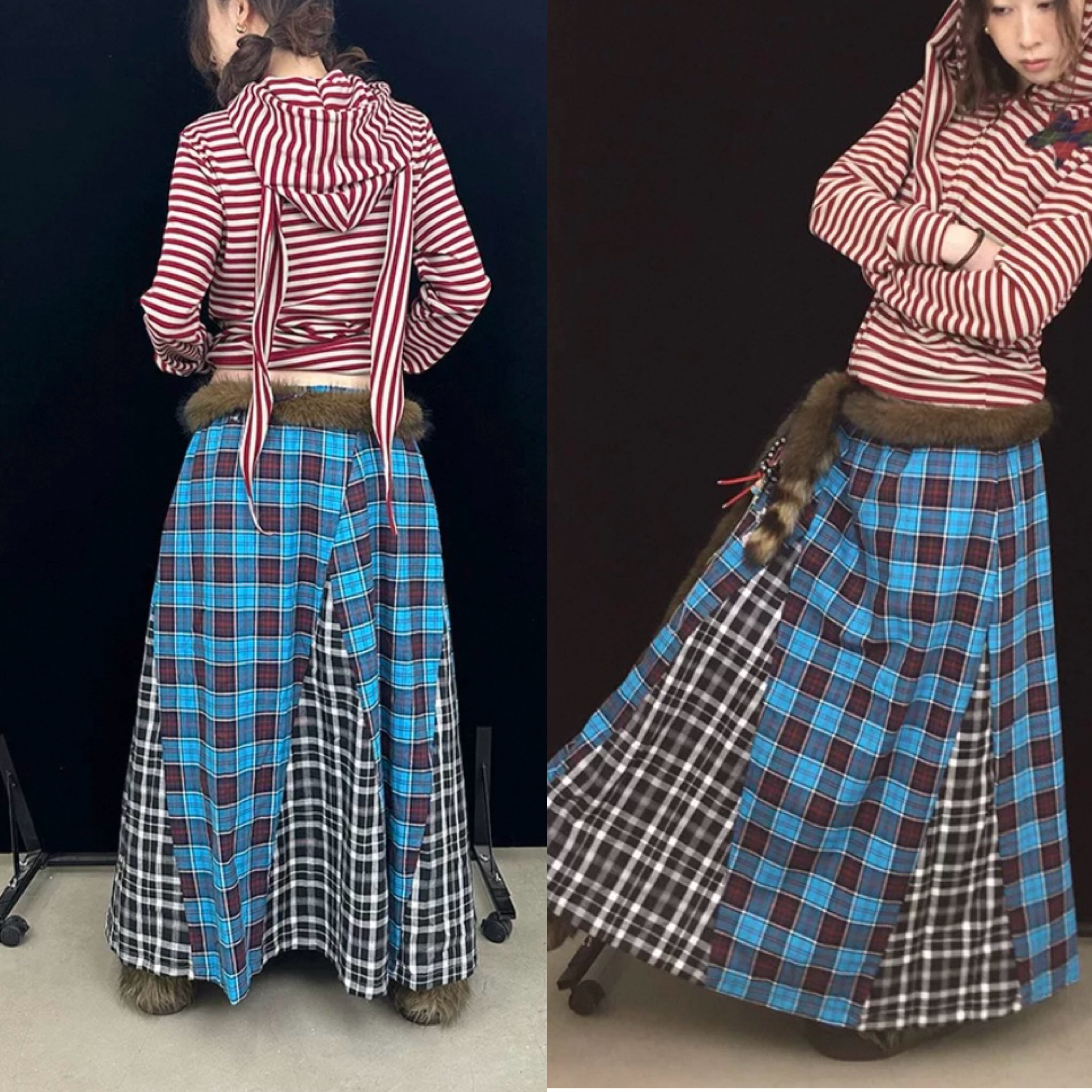 茶色、パッチワーク、水色 チェック、ボトムス、ロングスカート、マキシ 古着、ネルシャツ、原宿