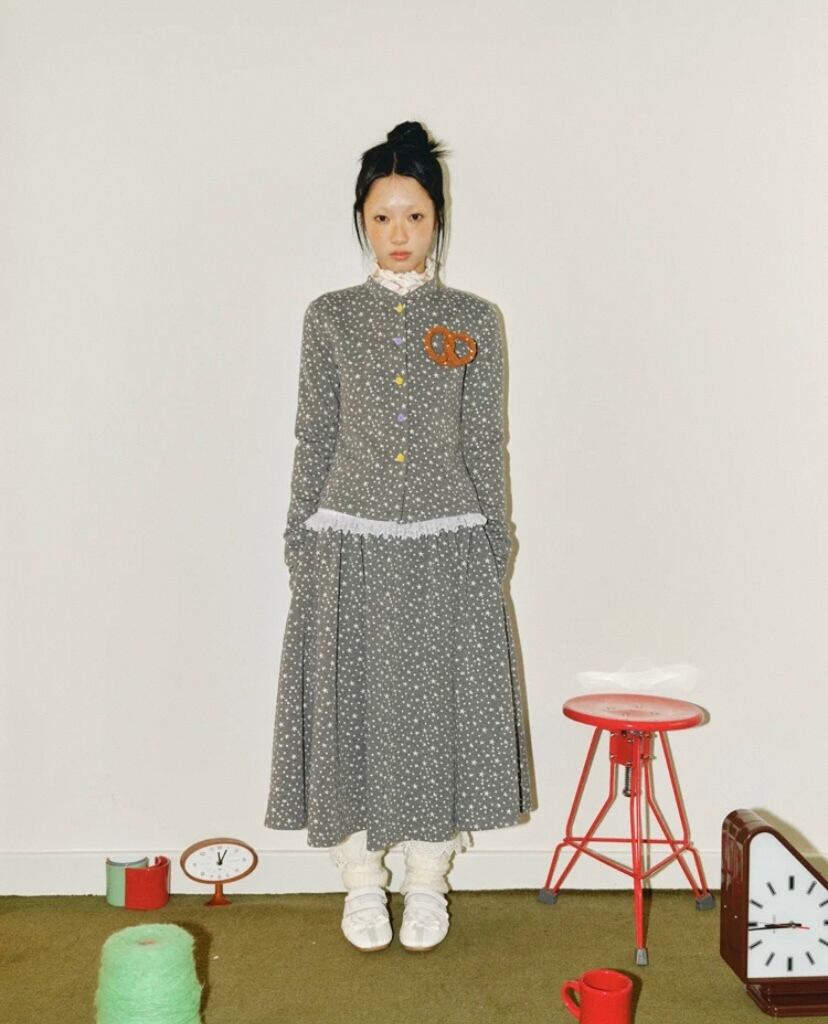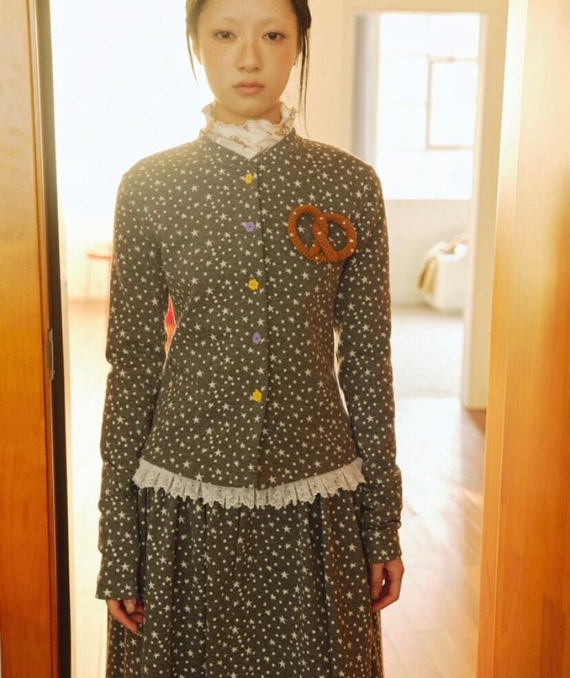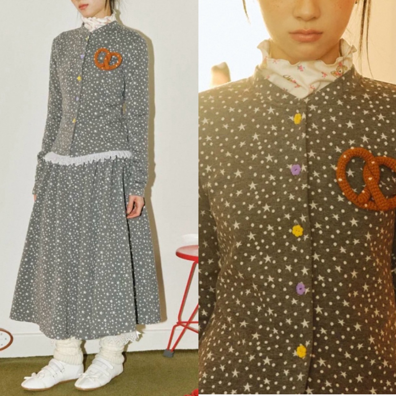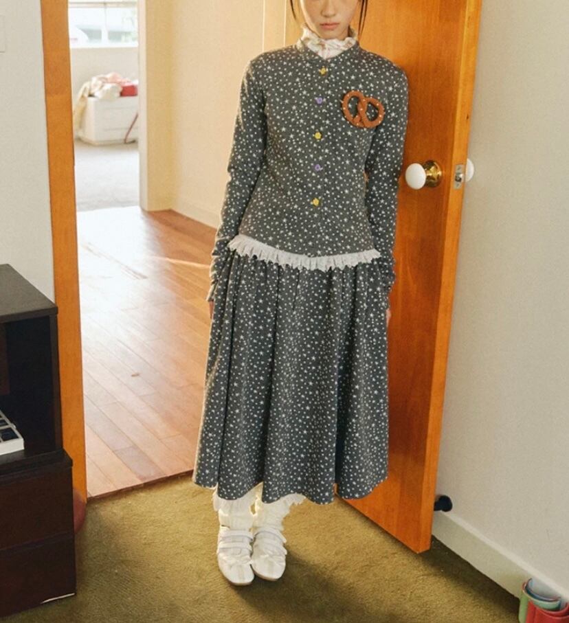 グレー カーディガン、水玉、セーター、トップス、ボトムス フレアスカート プリーツスカート アウター かわいい 原宿 カラフル