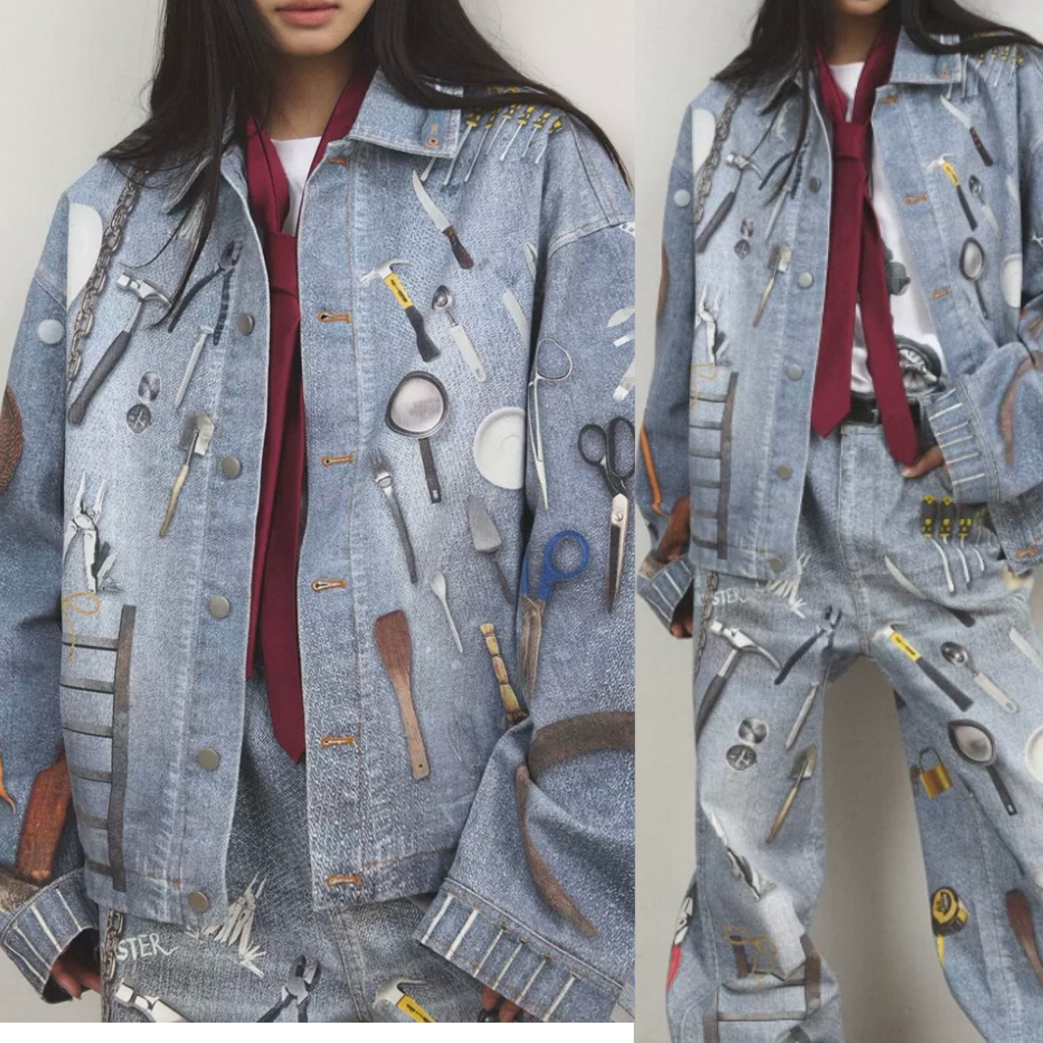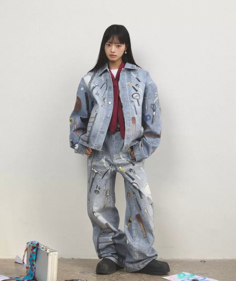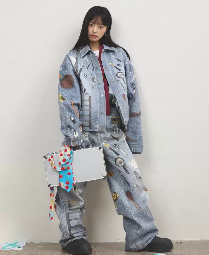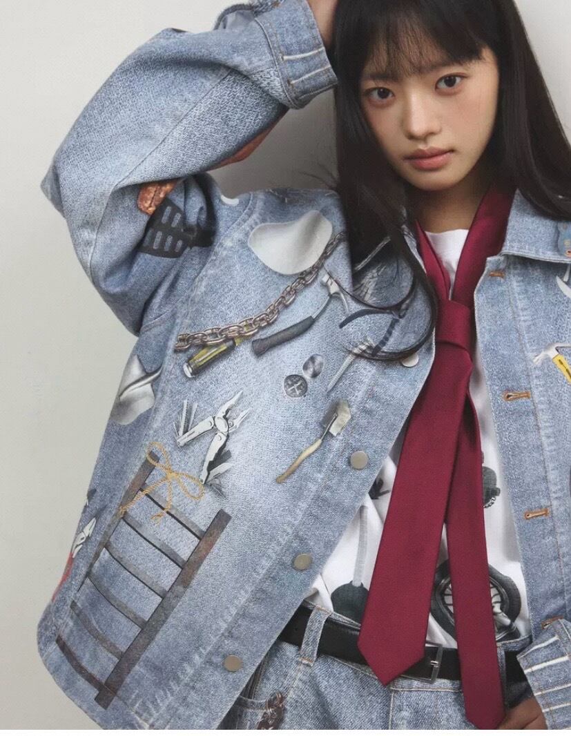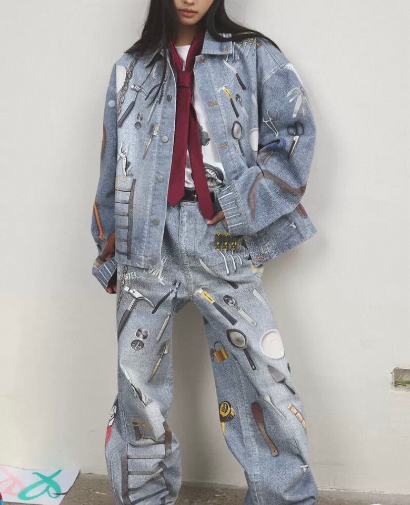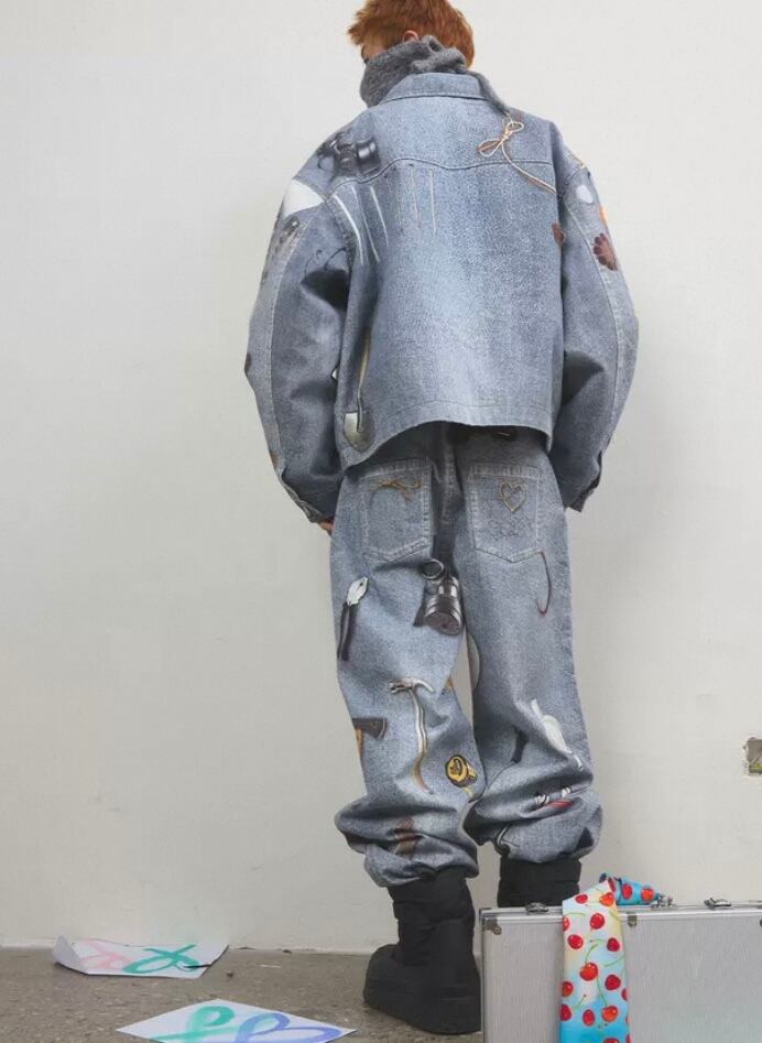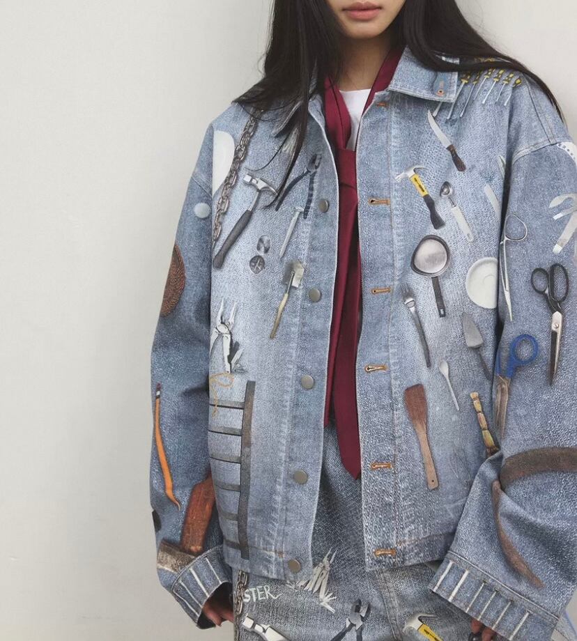 【ジャケット】アウター ジャケット コート リムジン、ジージャン、ジーパンデニム水色、総柄