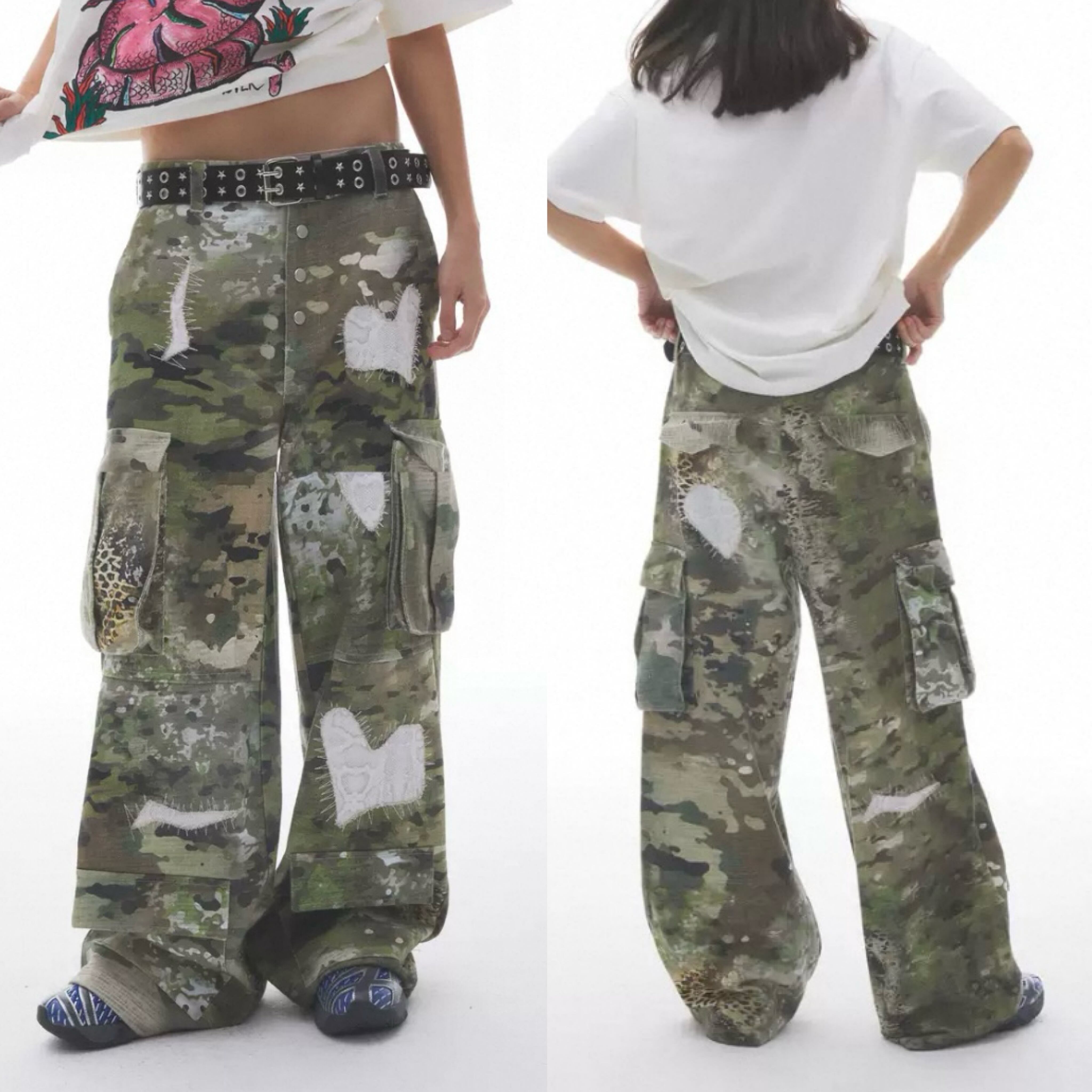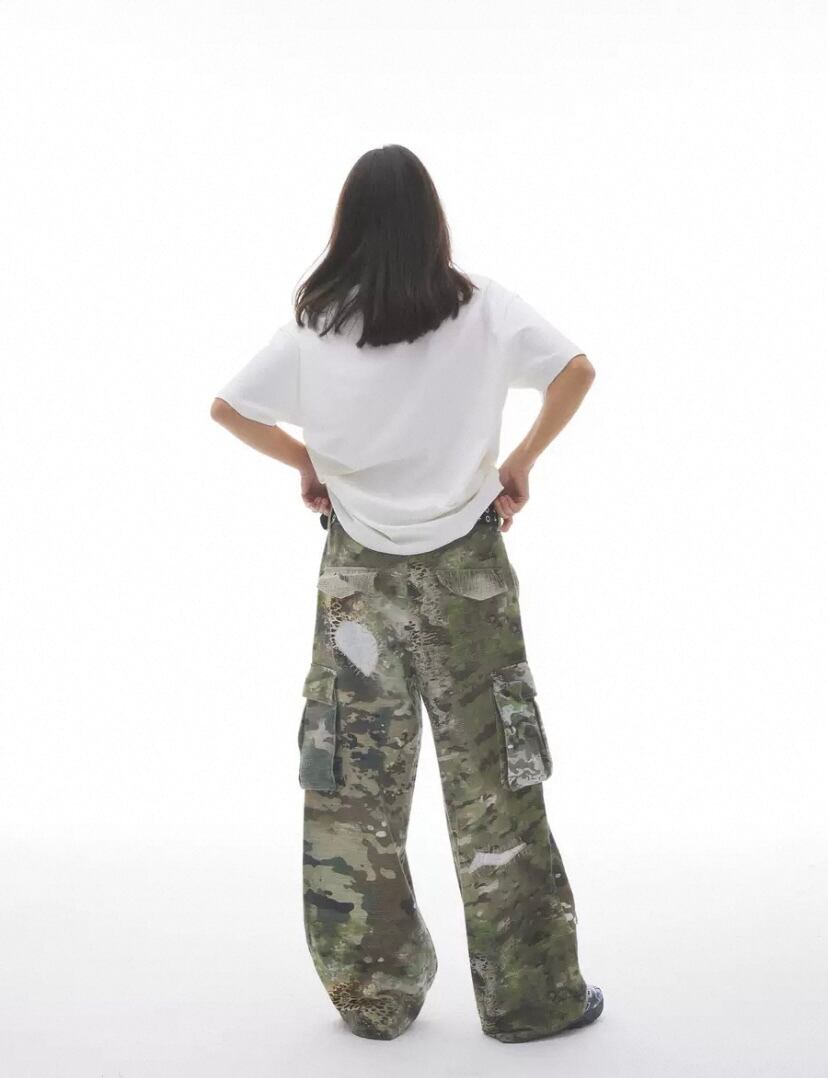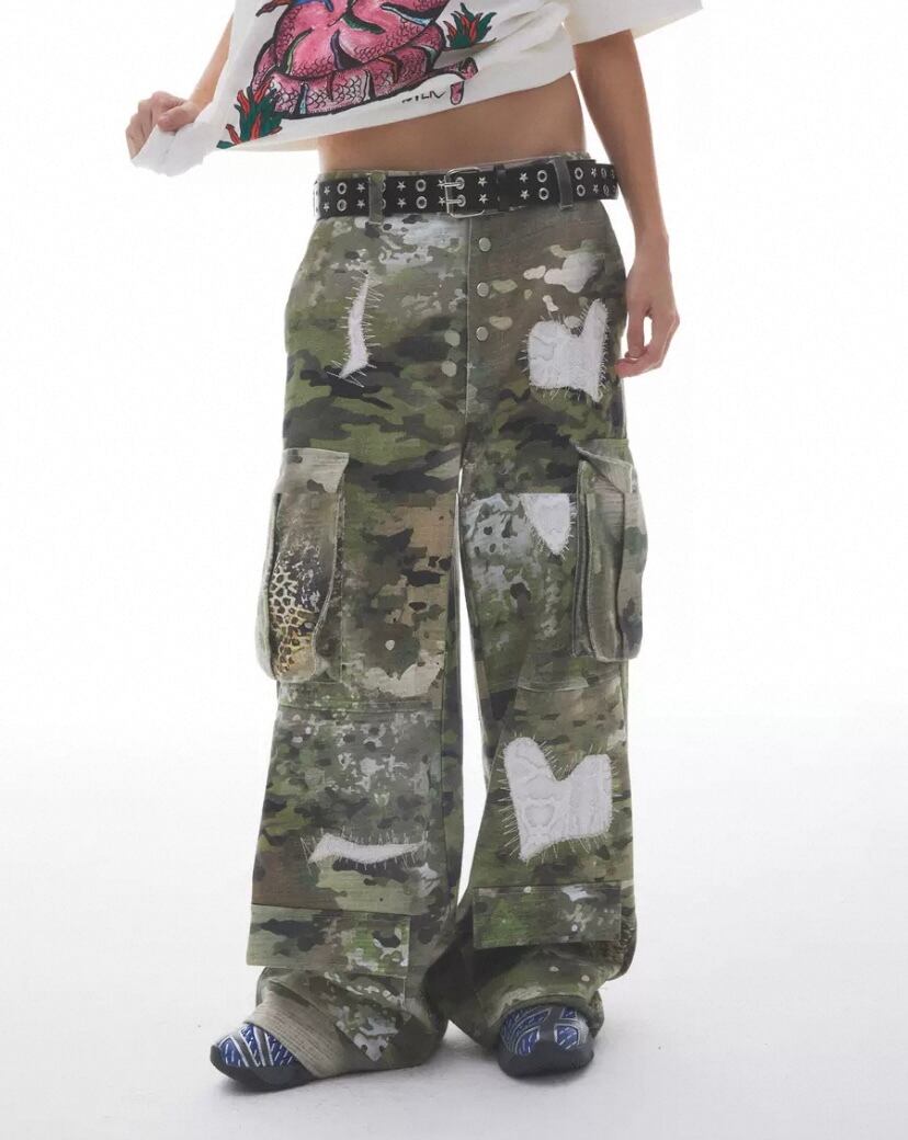 レオパード カモフラージュ ハート パンツ、ボトムス カーゴ パンツ ポケット 作業服