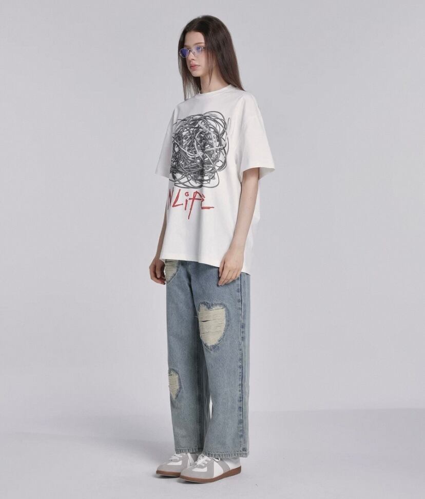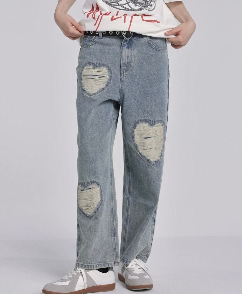 ハート パンツ クラッシュ デニム ジーンズ ダメージ XL