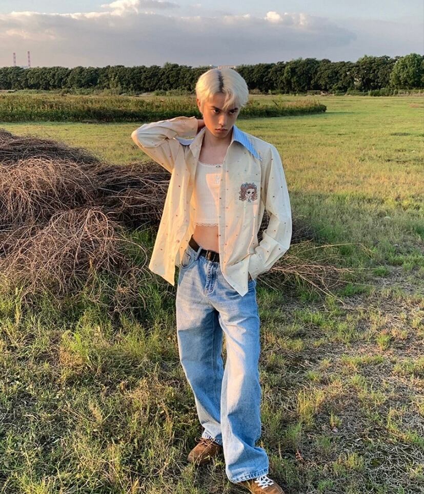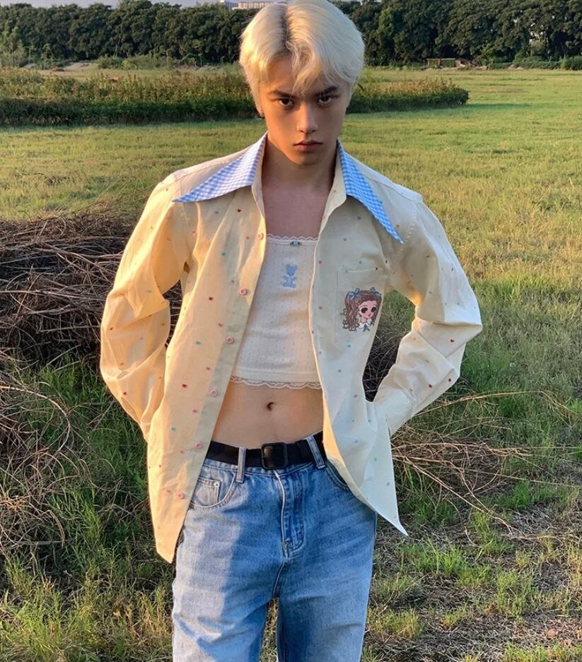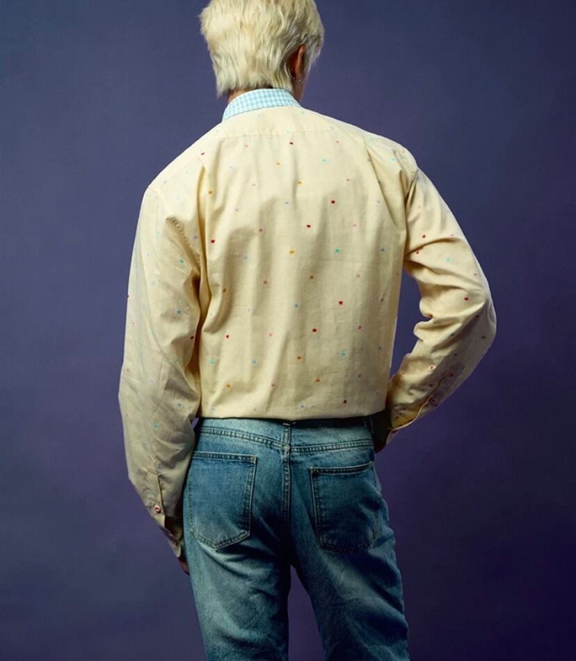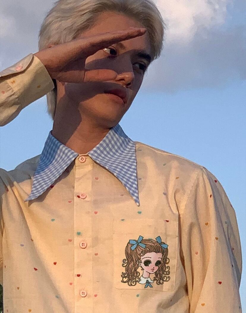 水玉、かわいい 水色、シャツ、ブラウス、トップス オーバーサイズ、XL メンズライク ユニセックス