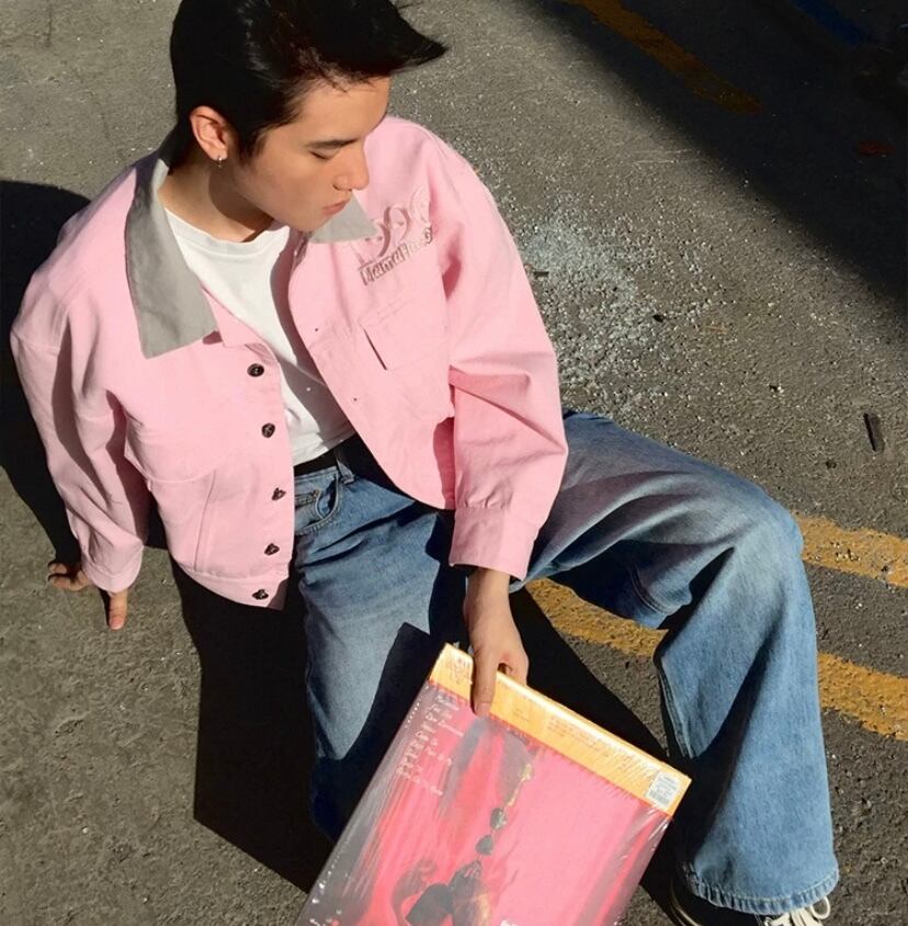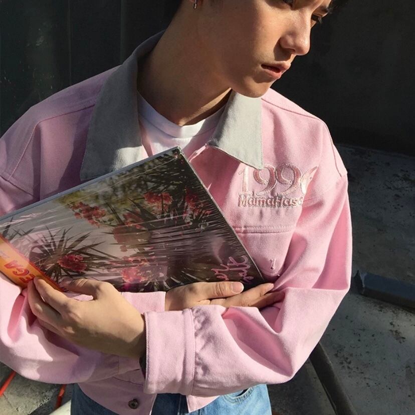 ピンク グレー、ジャケット、ジーンズ デニム ジャケット、コート、アウター、トップス、ユニセックス メンズライク かわいい