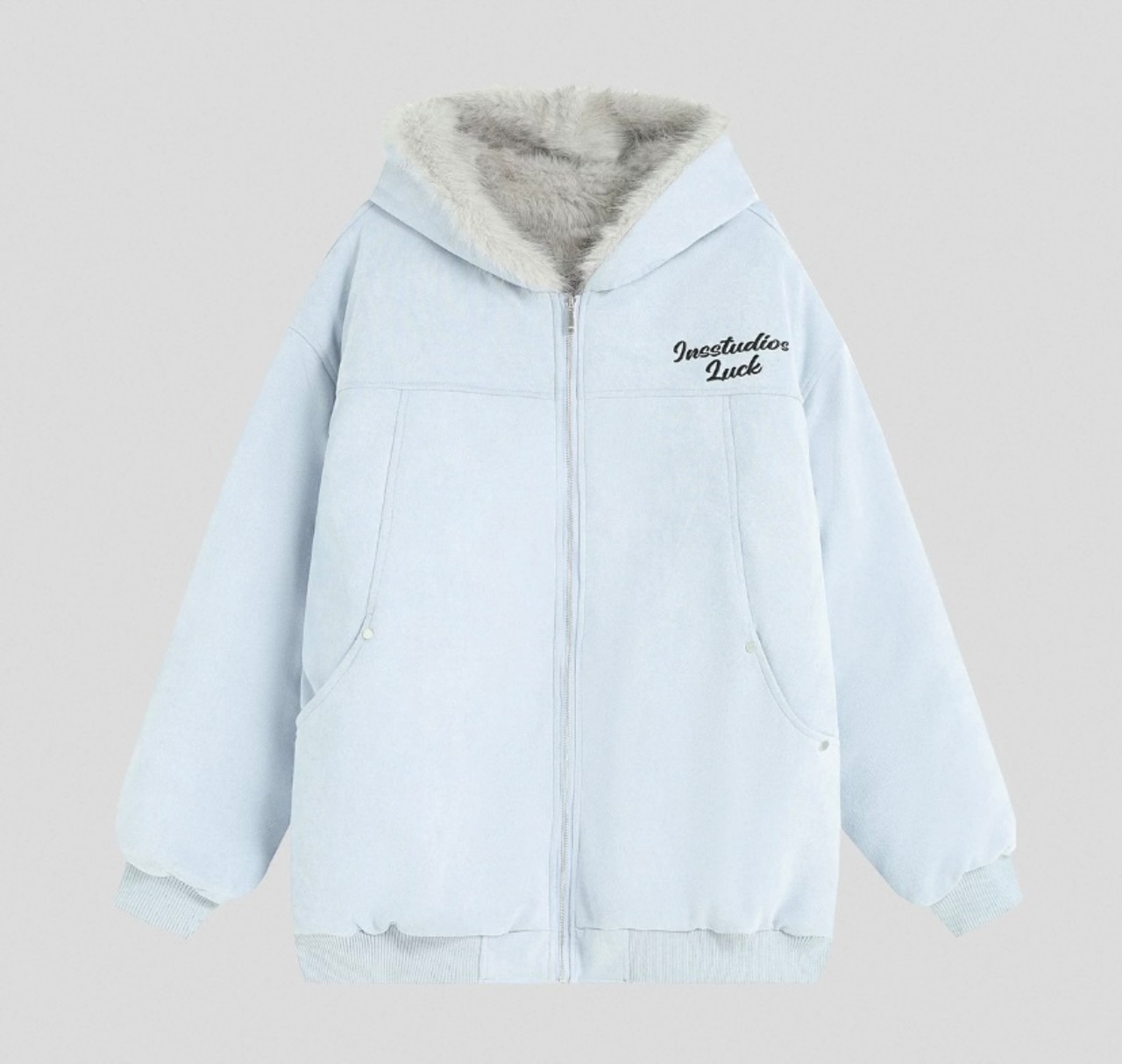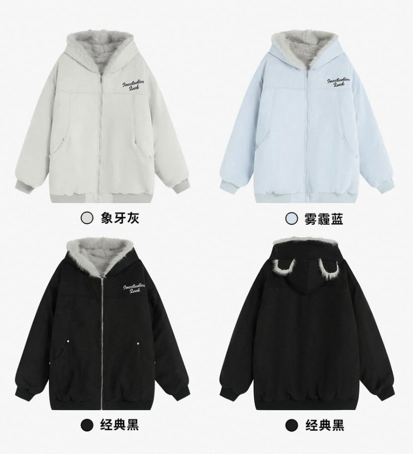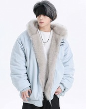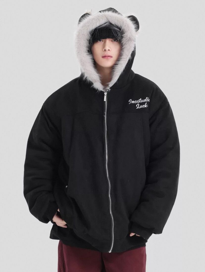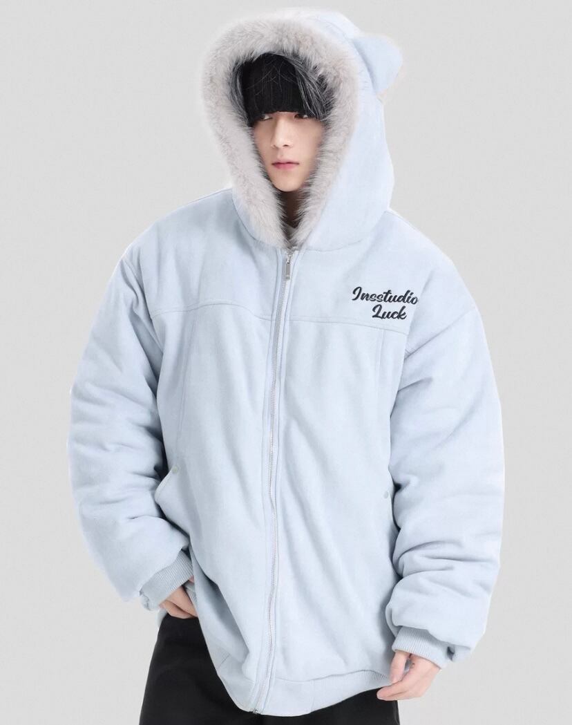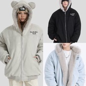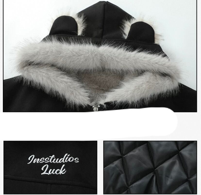 ベージュ、アイボリー、グレー、水色、黒 XL 、熊耳、ネコミミ、ファー ブルゾン、ダウン、コート