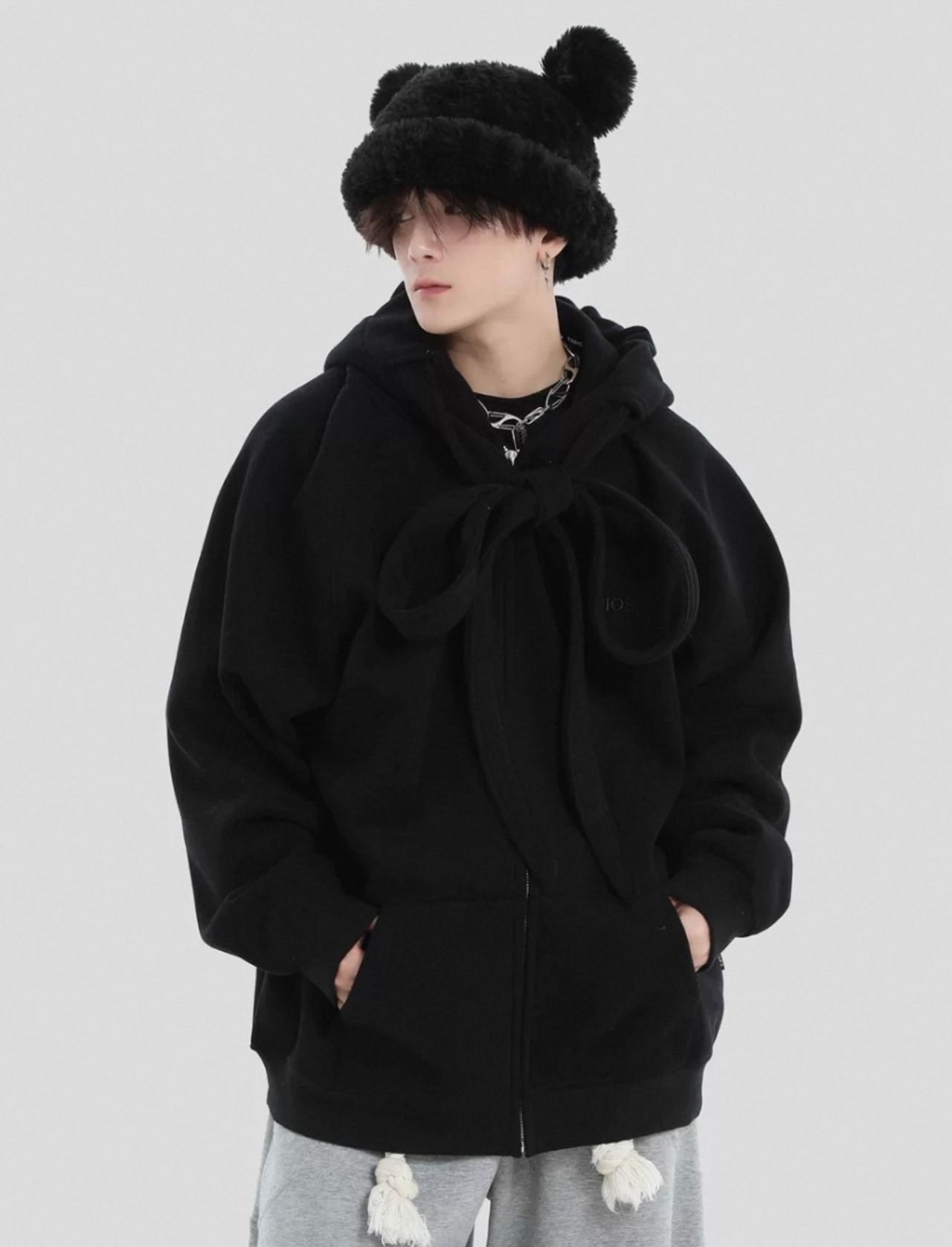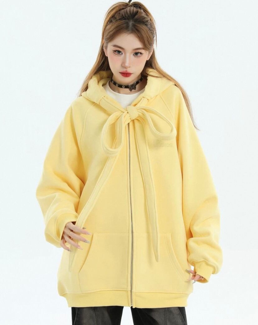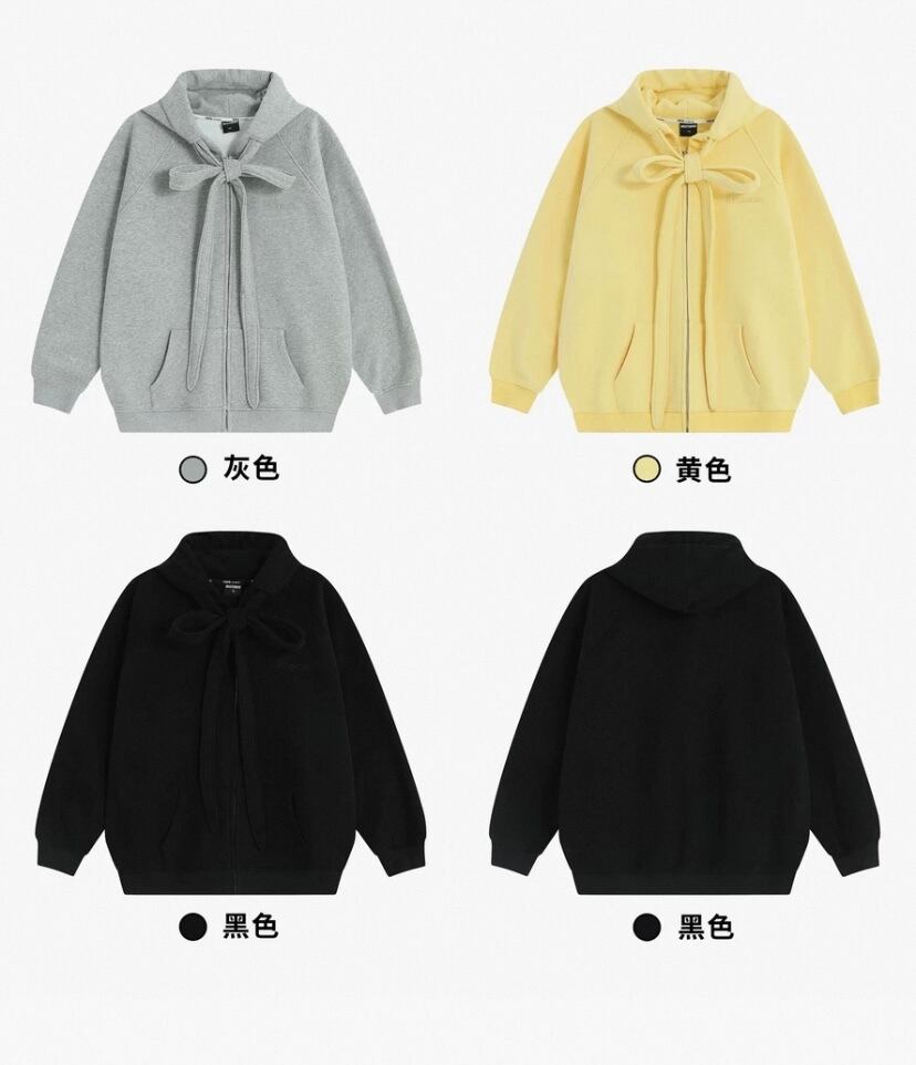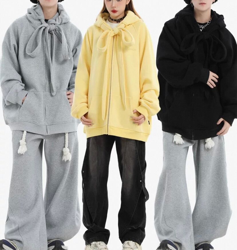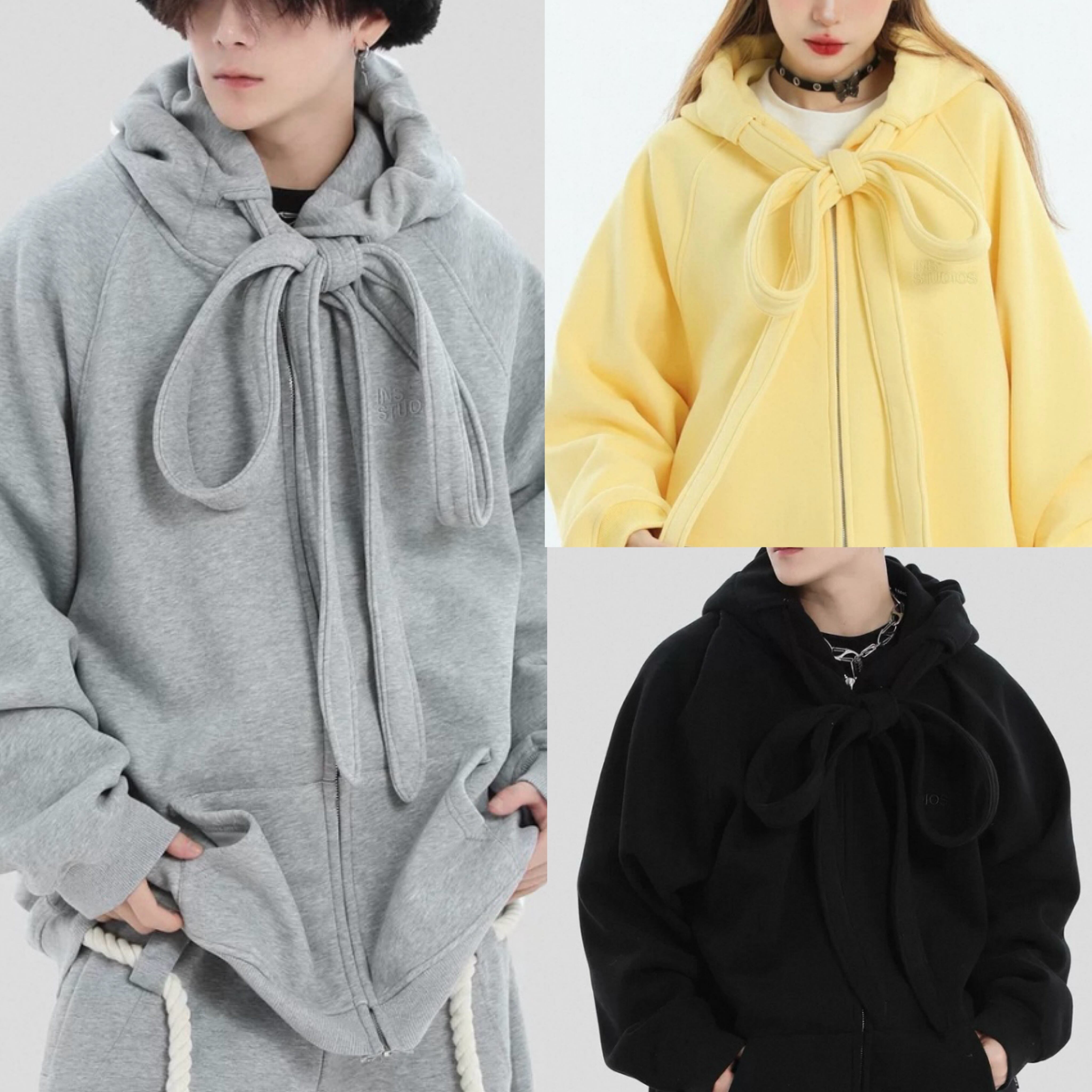 黄色 グレー、黒 アウター パーカー リボン スエット トレーナー
