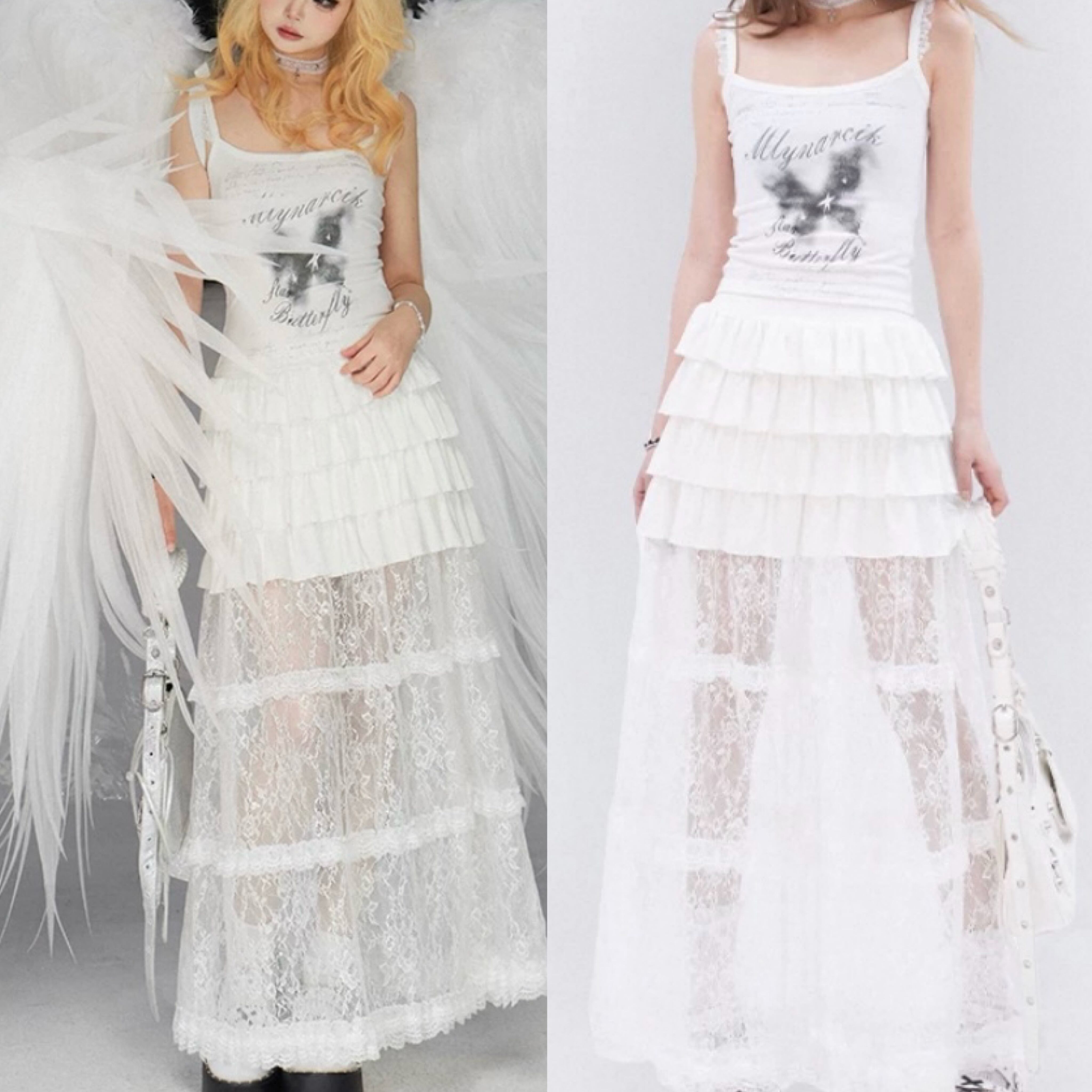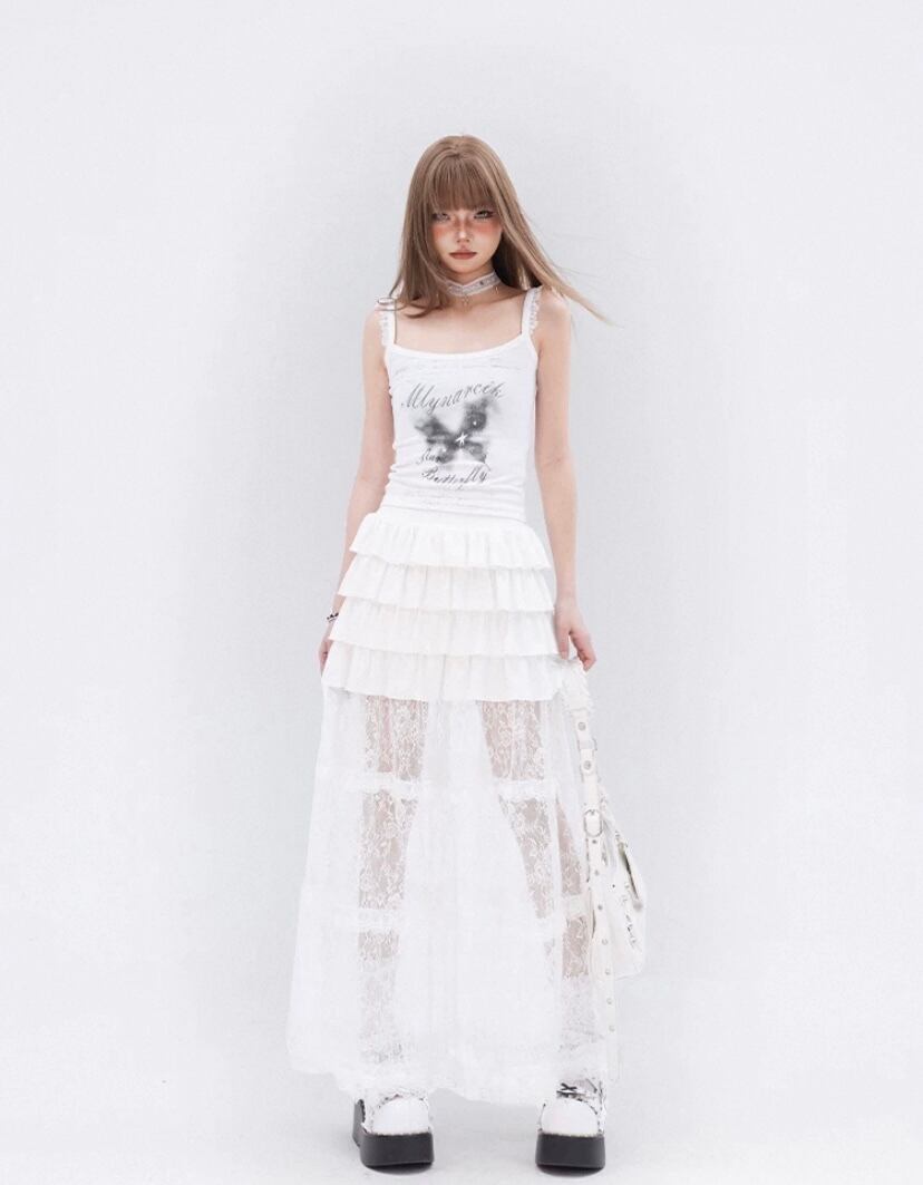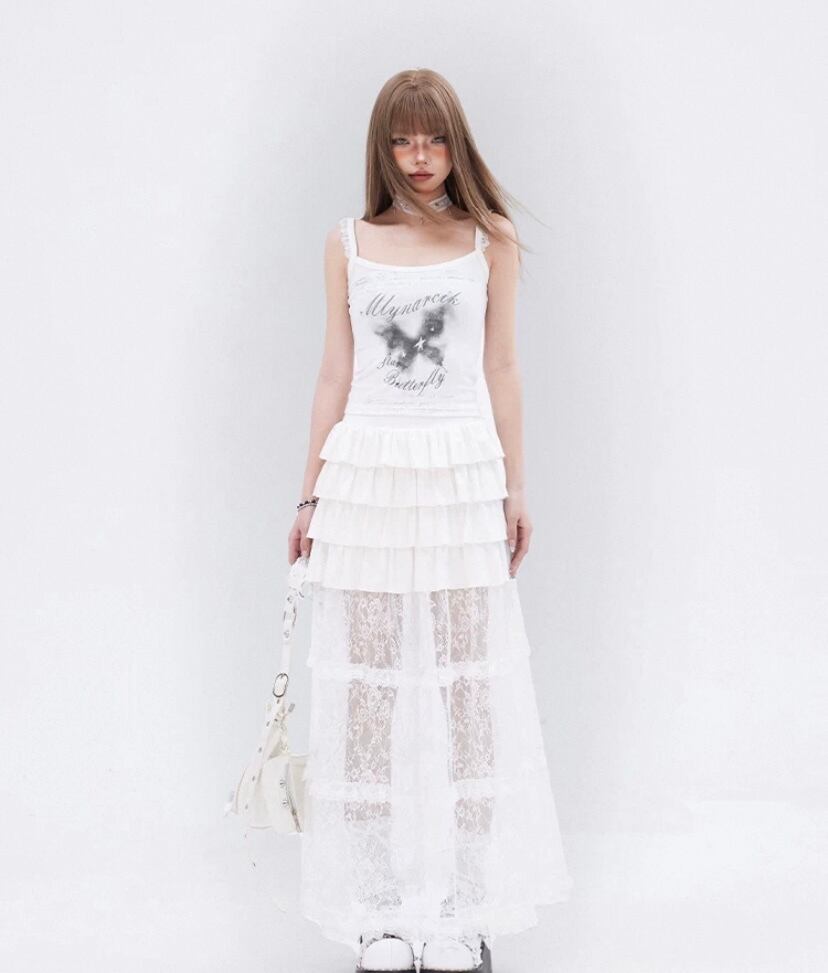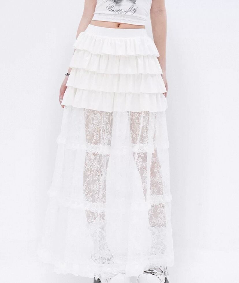 白 ホワイト ロングスカート ミニスカート シースルー かわいい ガーリー、ボトムス ロングスカー