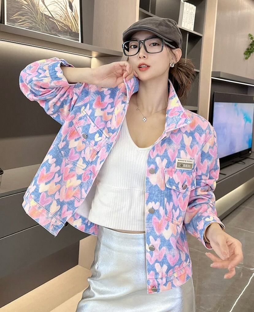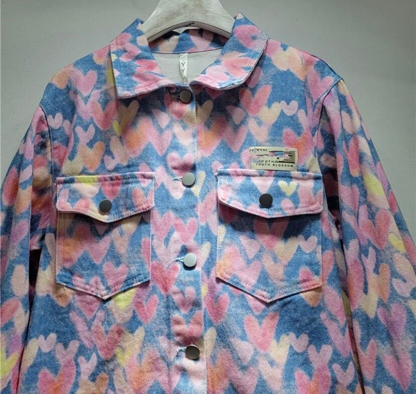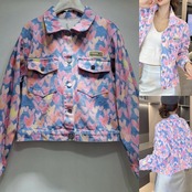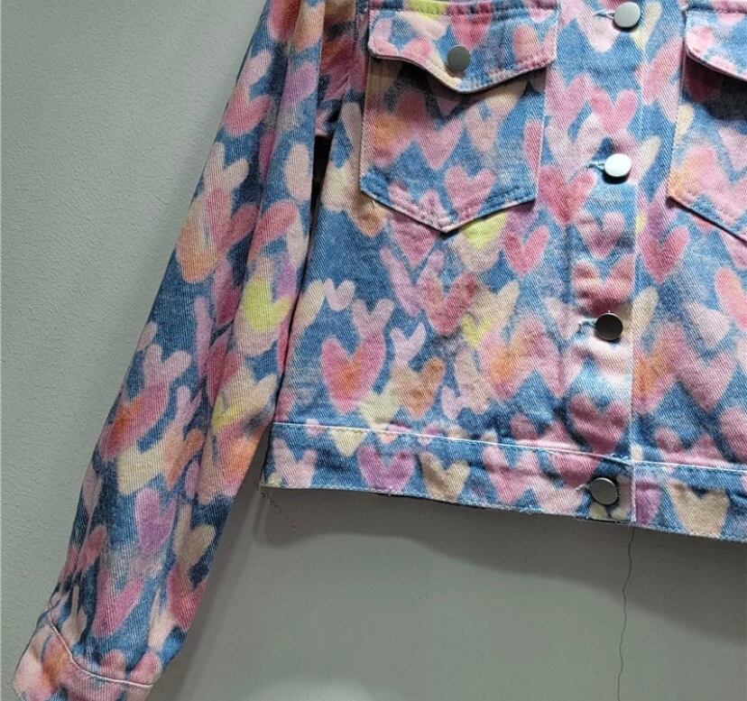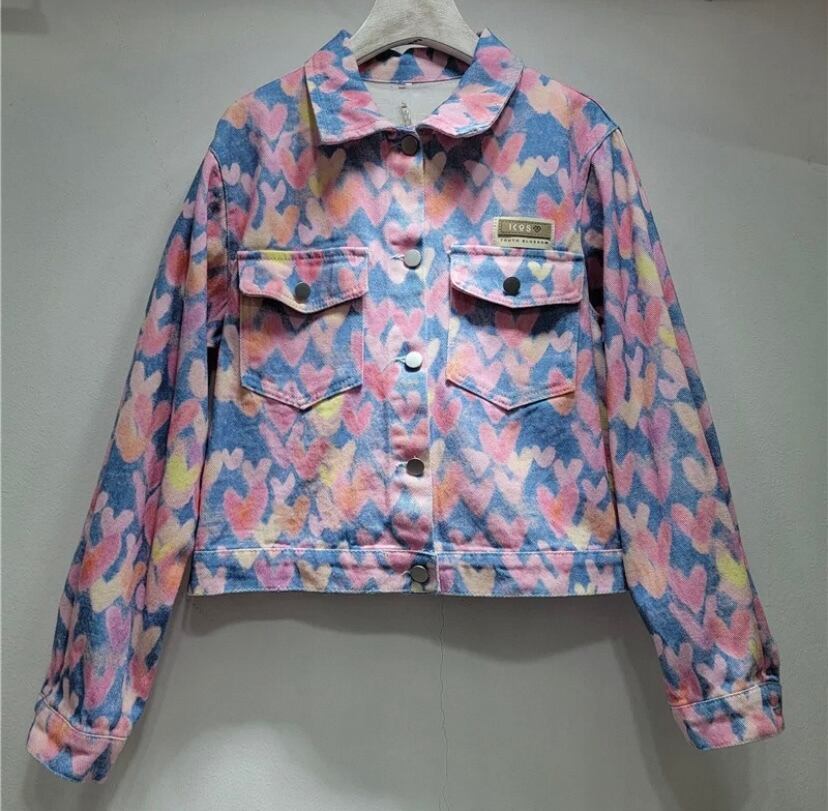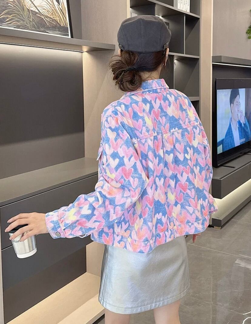 ハート 水色 ジャケット、デニム コート、アウター、ブルゾン、カーディガン、トップス ストリート、カジュアル 水色 ジーンズ ジージャン