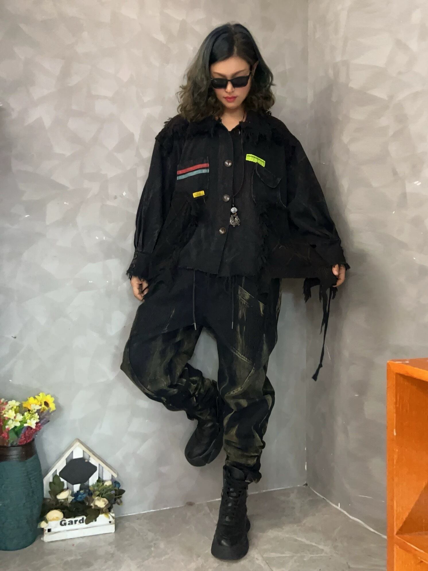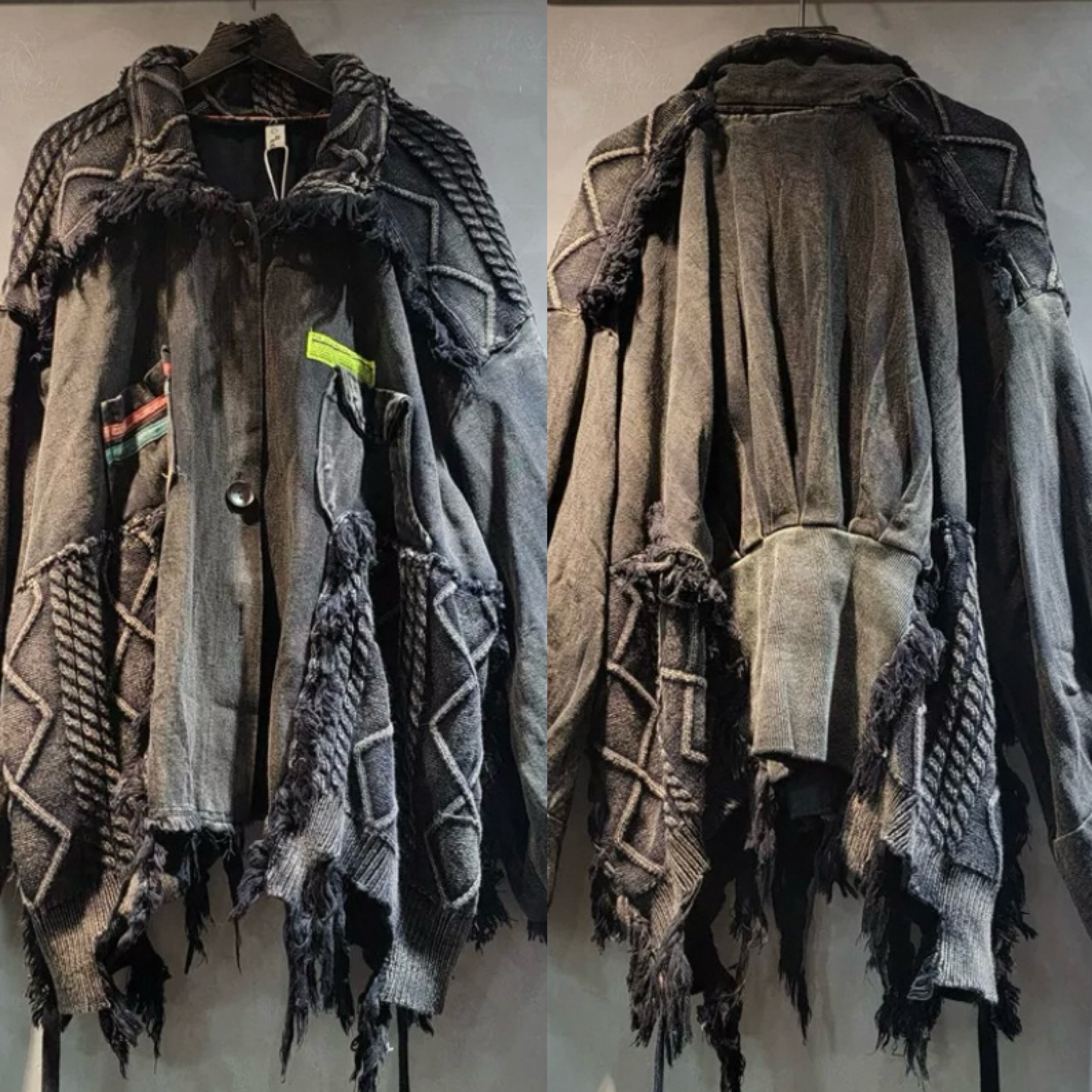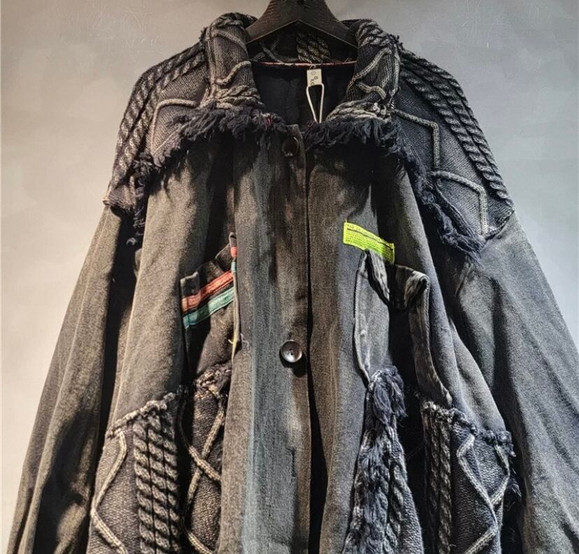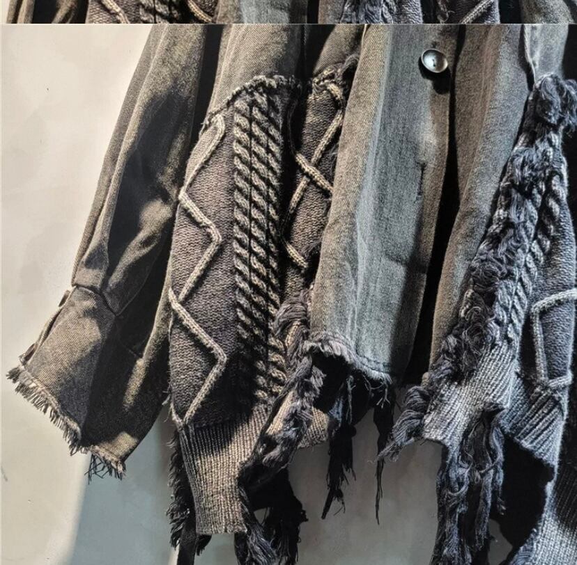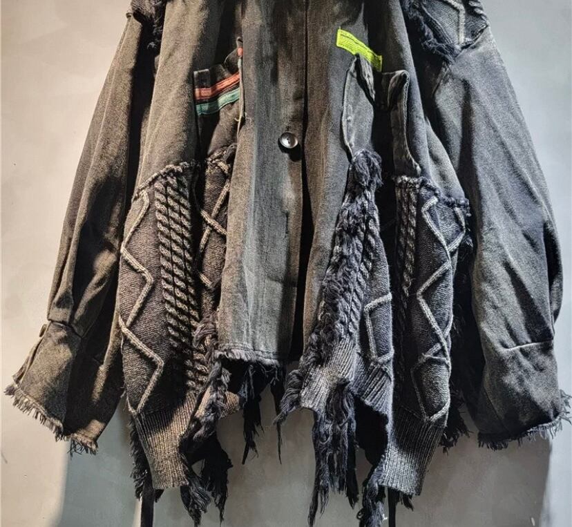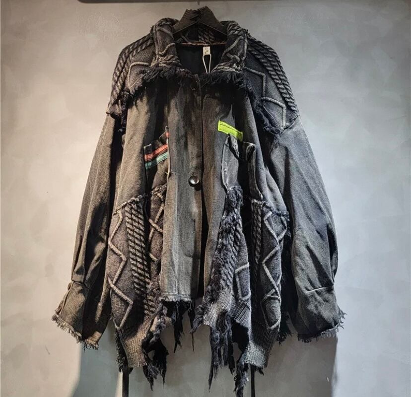 デニム 黒 グレー アウター、カーディガン、コート、セーター、ジャケット ストリート、オーバーサイズ ユニセックス パーカー アウター トレーナー セーター