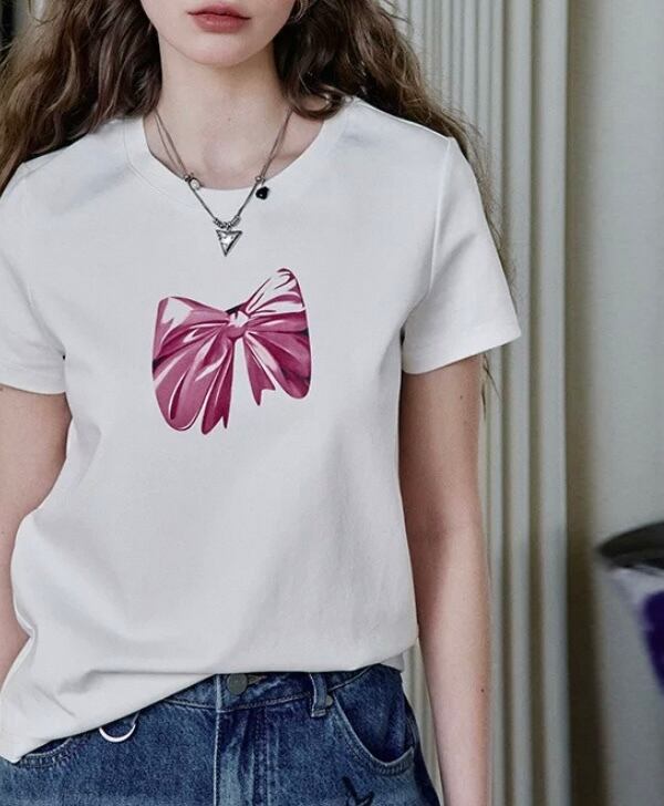 Tシャツ、トップス、半袖 リボン、ピンク、かわいい 白、シンプル ブラウス。カジュアル スウェット 原宿 かわいい