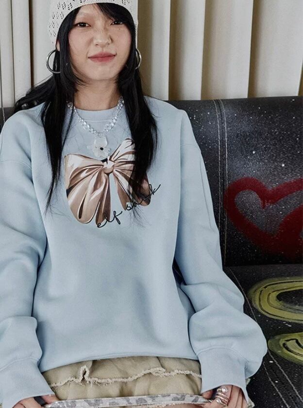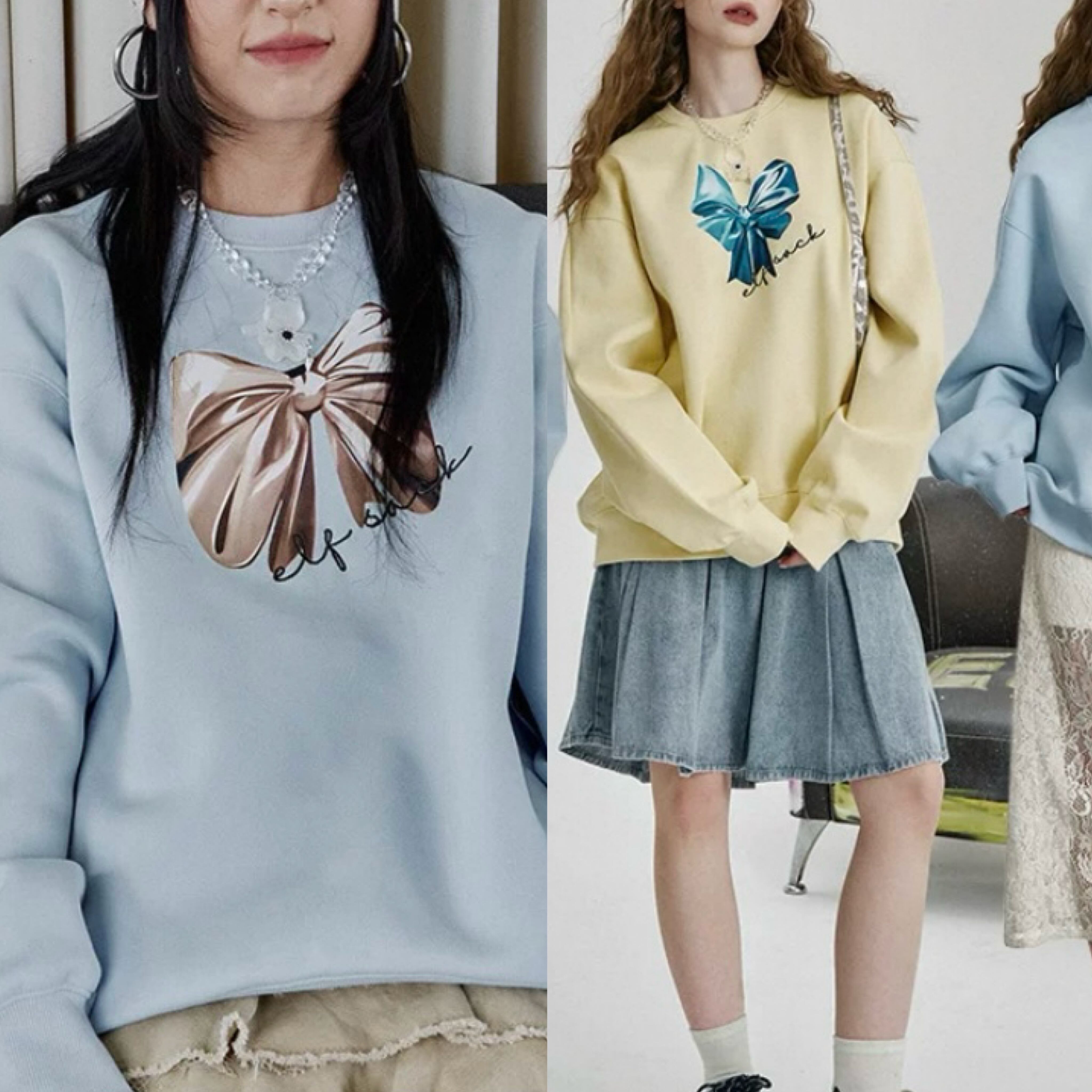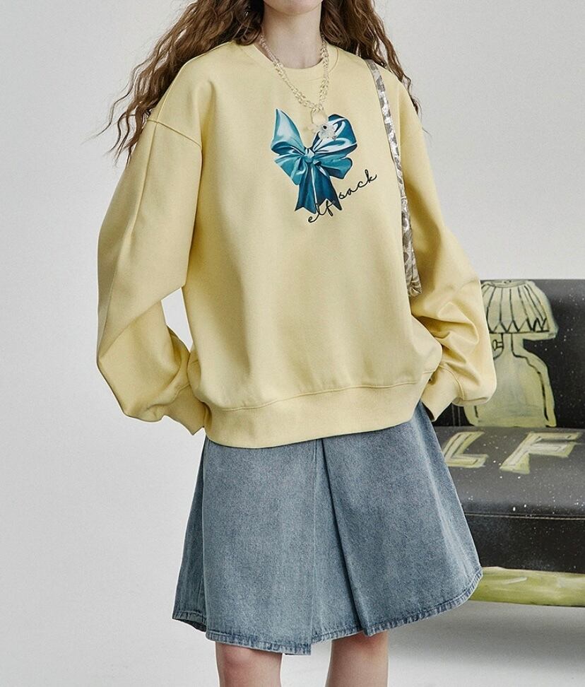 トレーナー スウェット 黄色 水色、シルバー、リボン、カジュアル ブラウス、パーカー ブラウス、トップス スウェット 原宿 スポーツ
