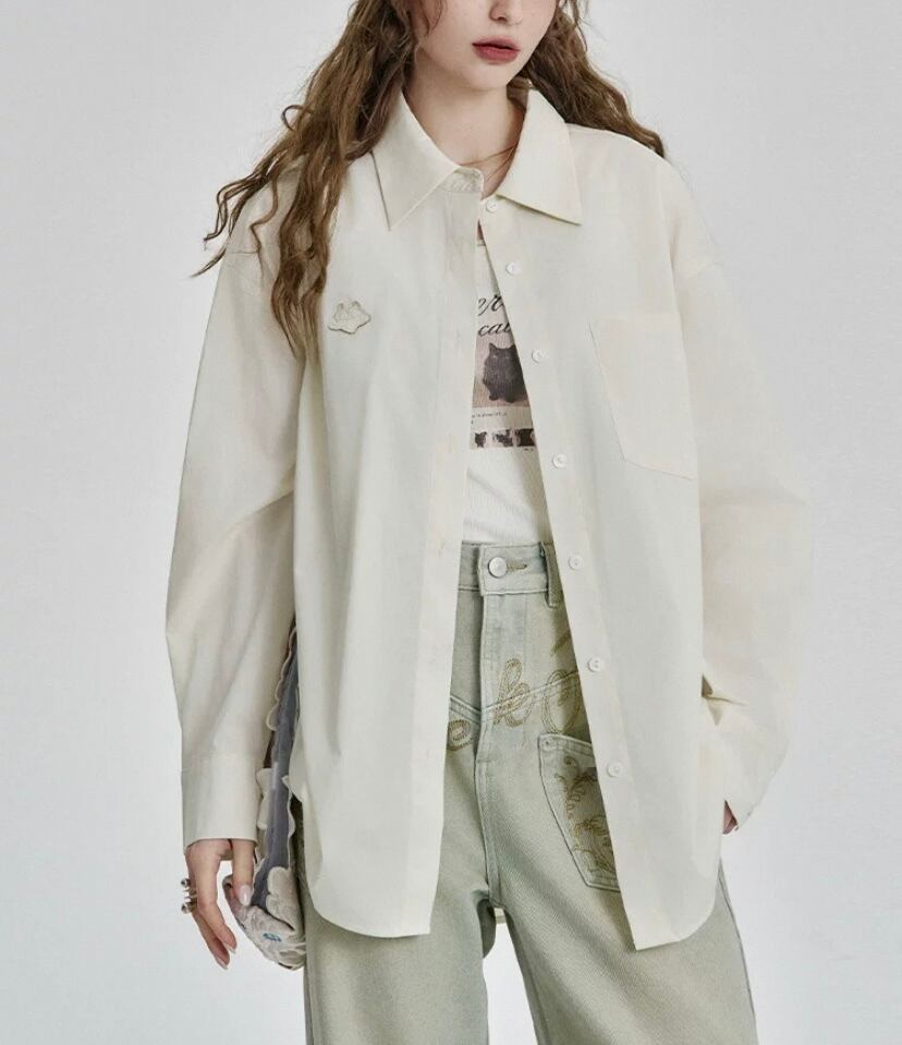 ピンク、白、シンプル、カジュアル、トップス、ブラウス、シャツ、ガーリー、スポーティー、原宿、ゆったり
