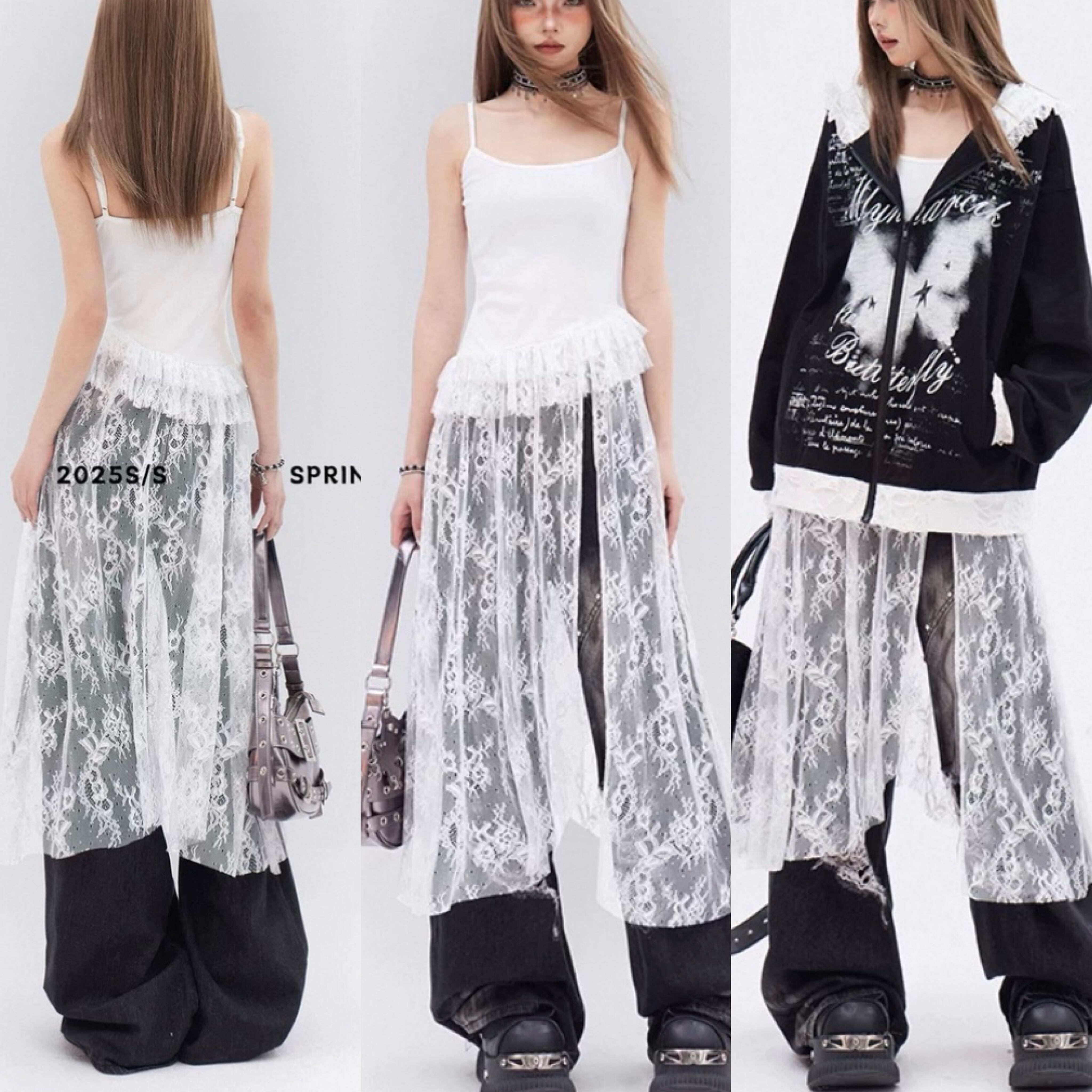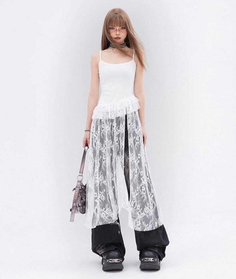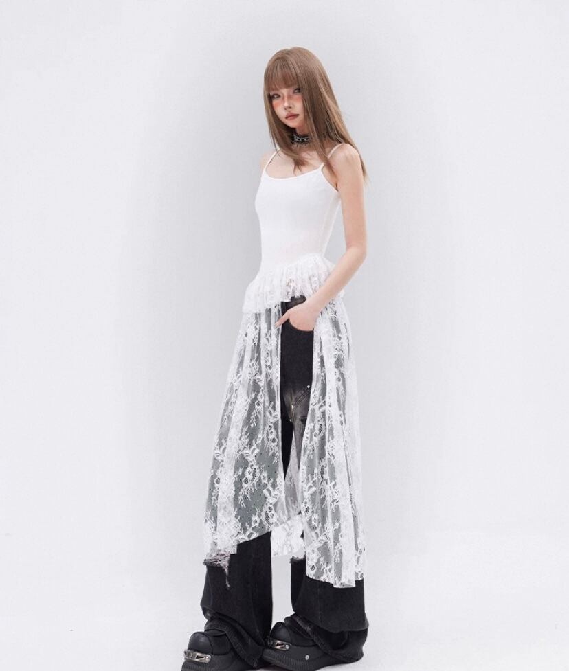 白 ホワイト キャミソール ワンピース、トップス、重ね着 レース、セクシー かわいい ロック、渋谷 原宿、リアル