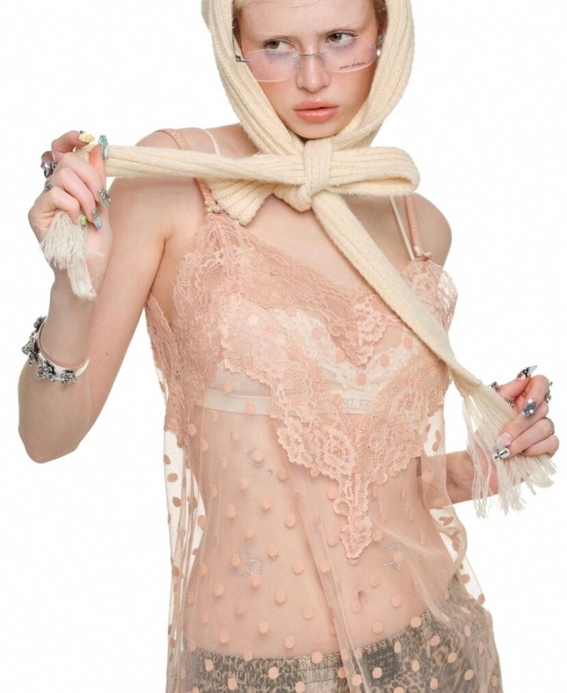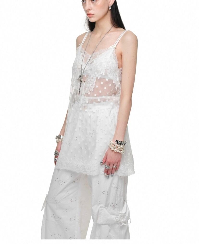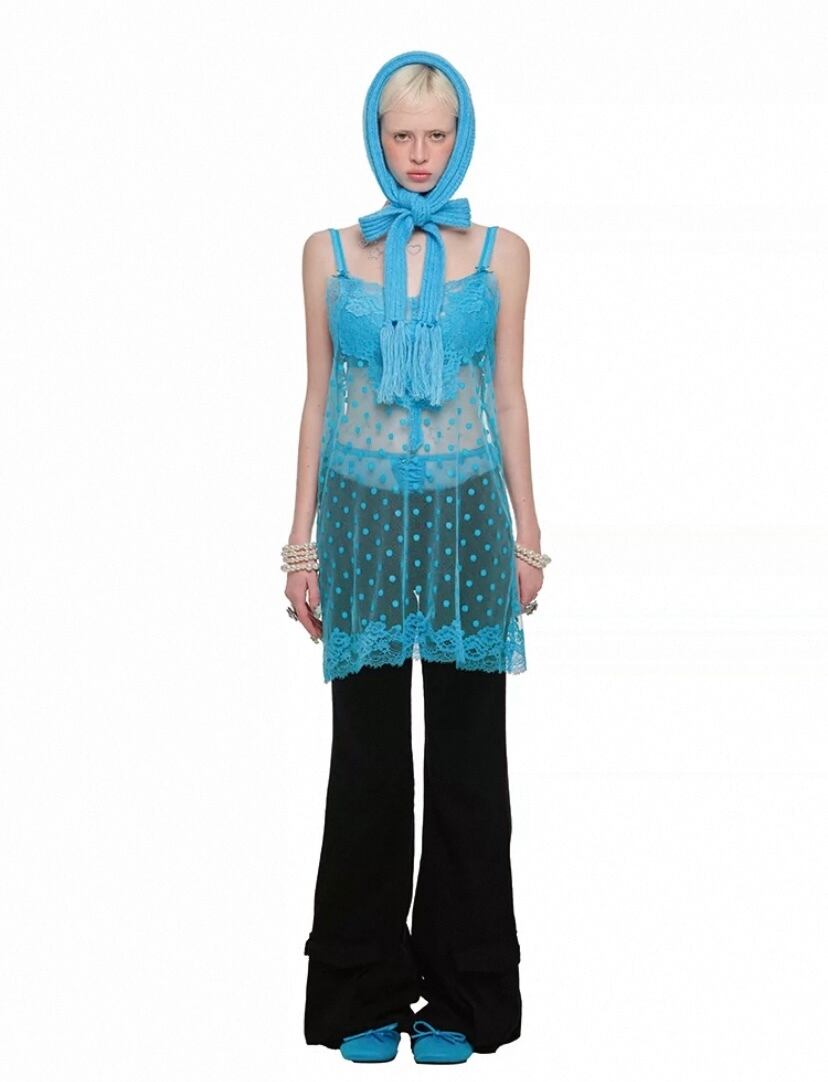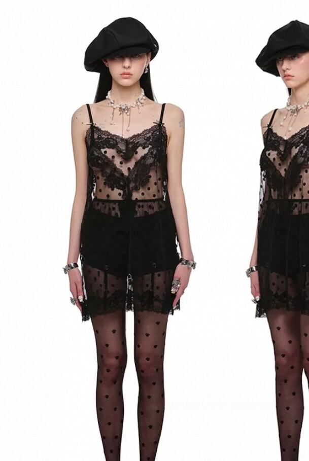 キャミソール、黒、ピンク、ベージュ、水色 水玉. トップス、シースルー、セクシー かわいい エレガント ルームウェア ブラウス タンクトップ