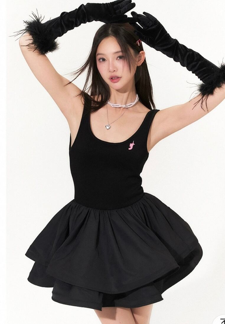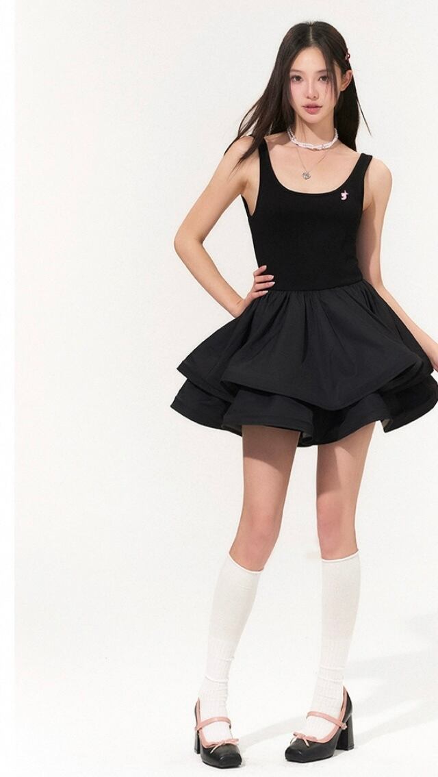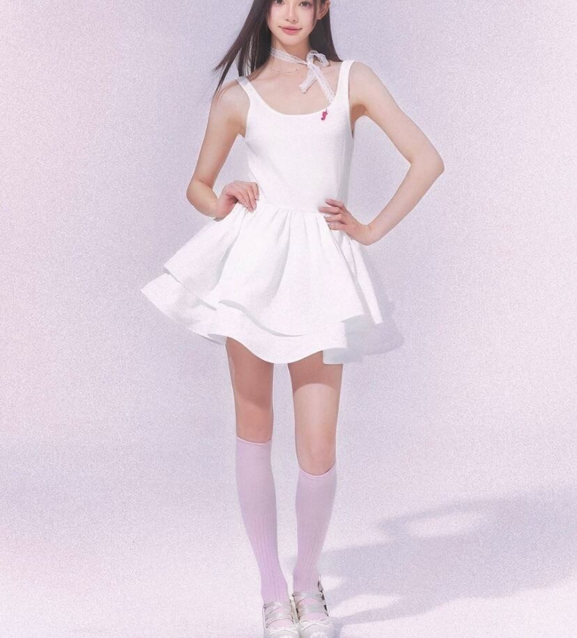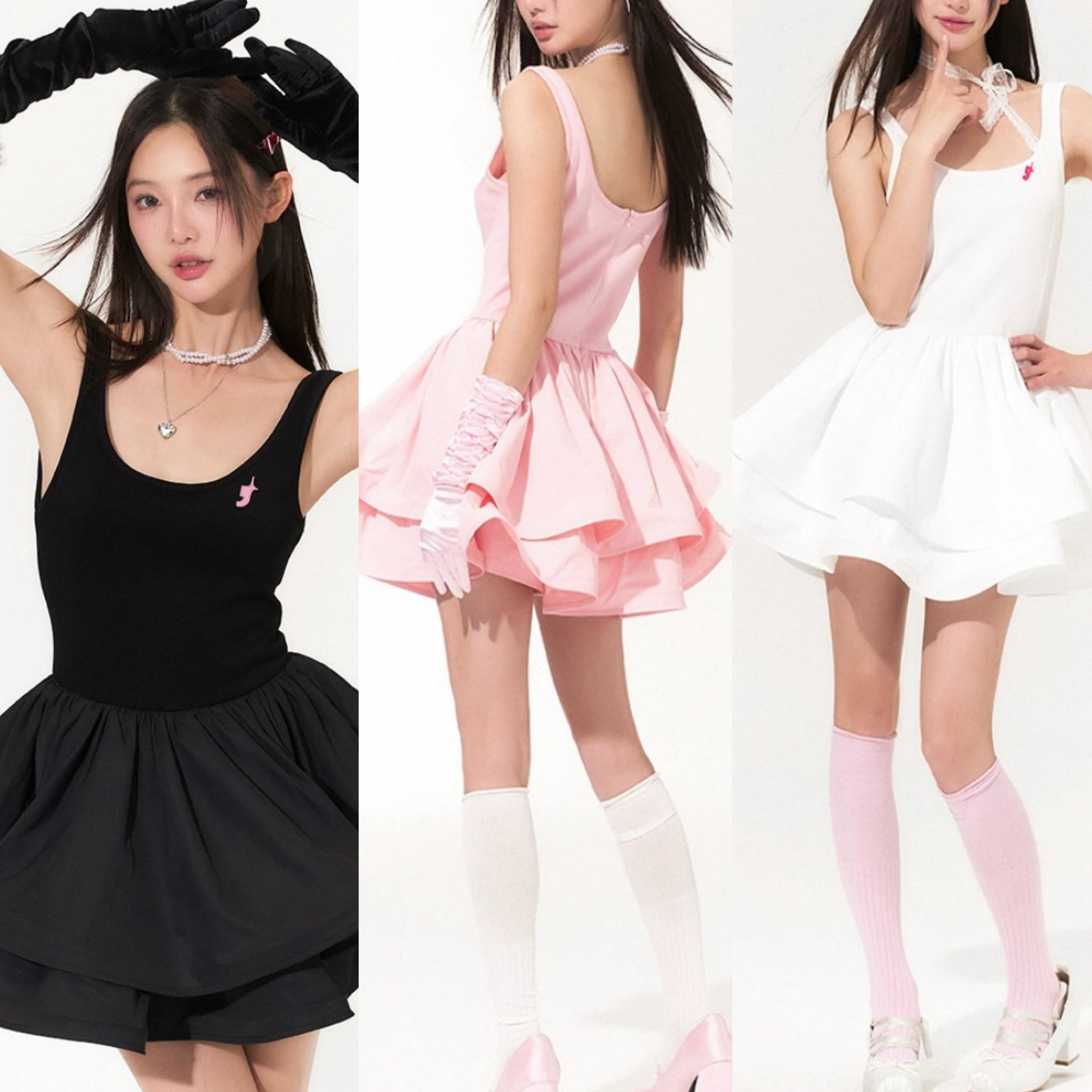キャミソール タンクトップ、ミニスカート フレアスカート、ピンク、カジュアル テニス、ゴルフ スポーティー、白 かわいい 原宿 ガーリー 姫 ワンピース お嬢様 スカート