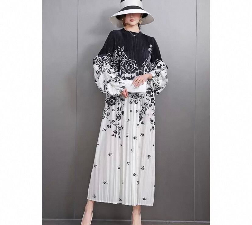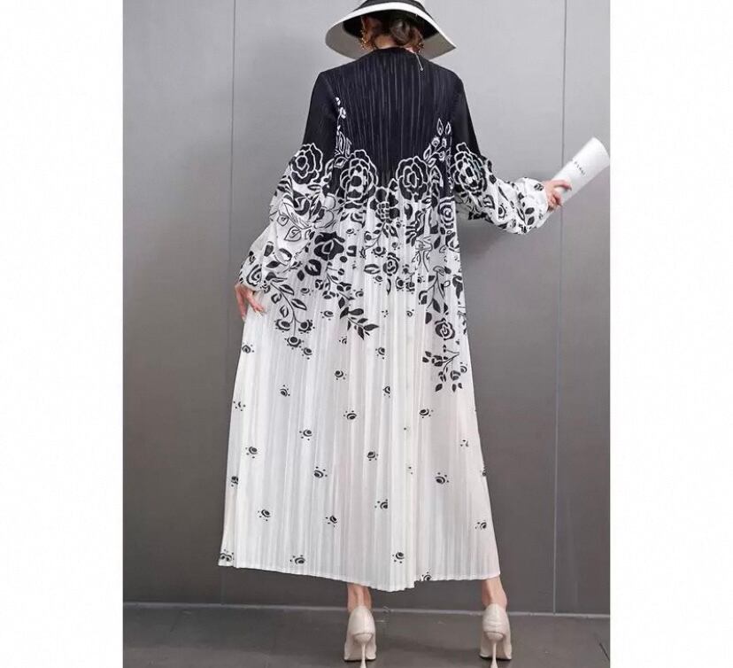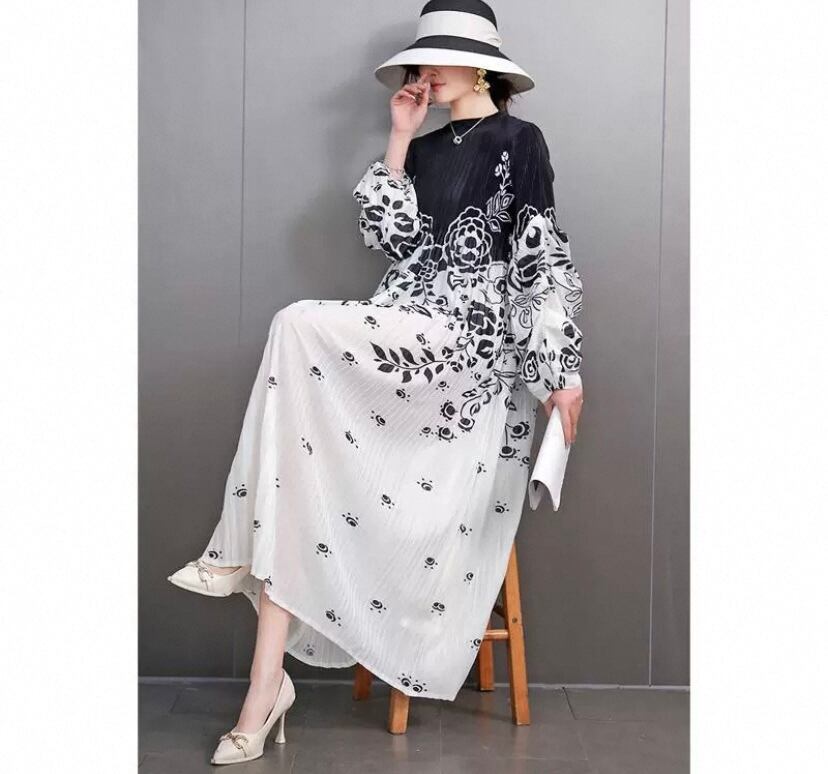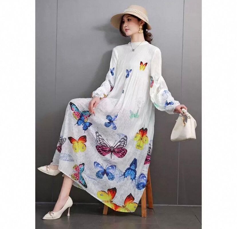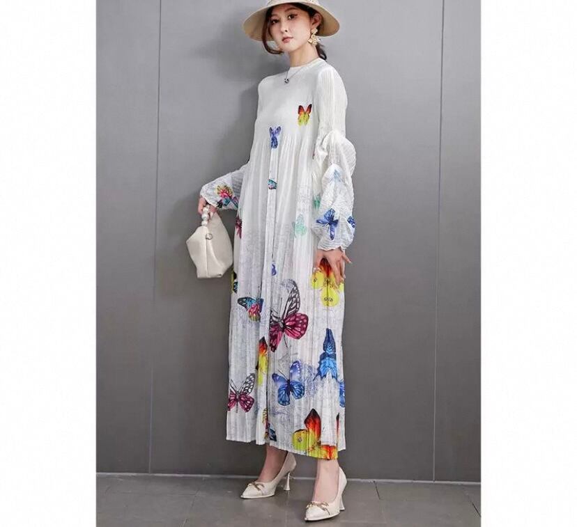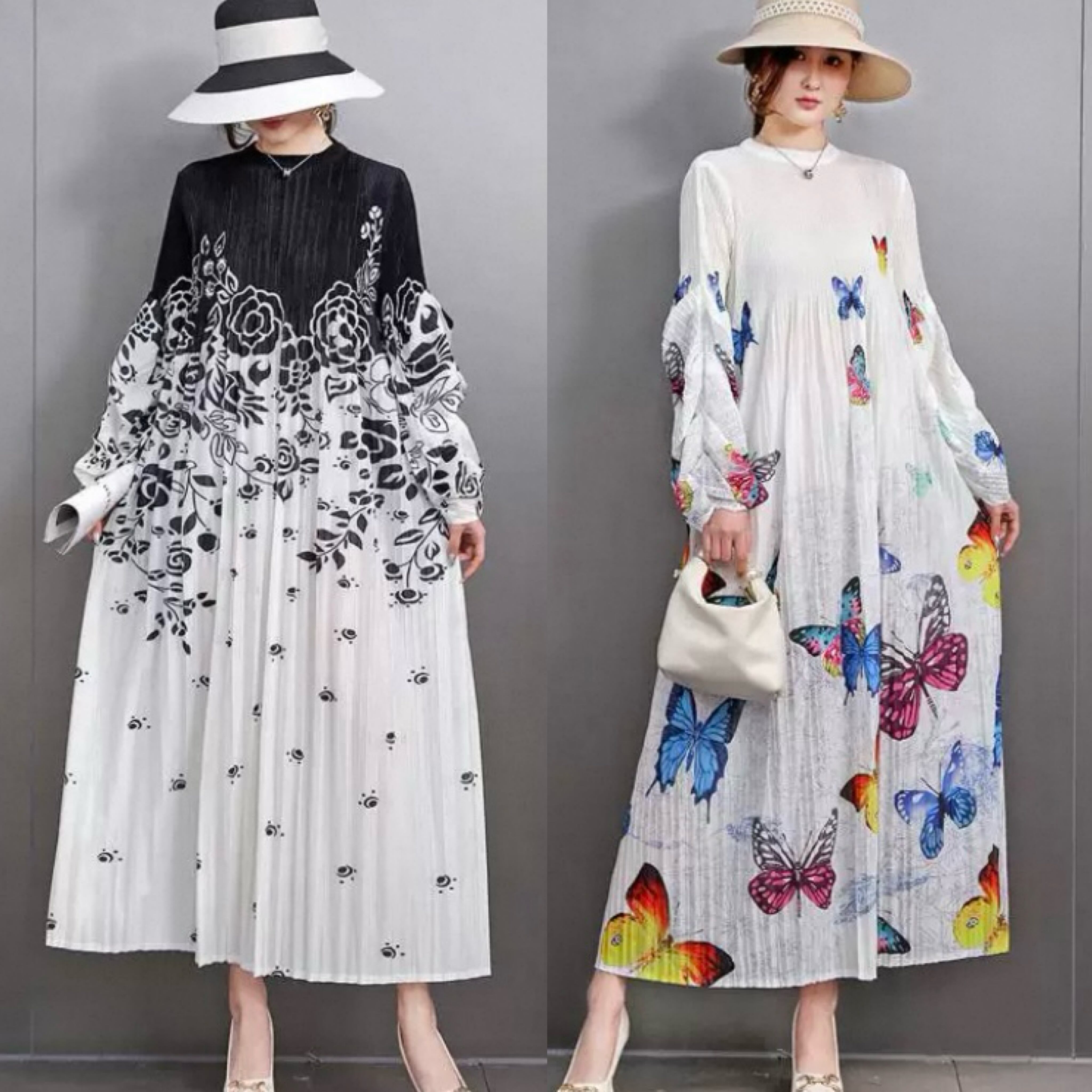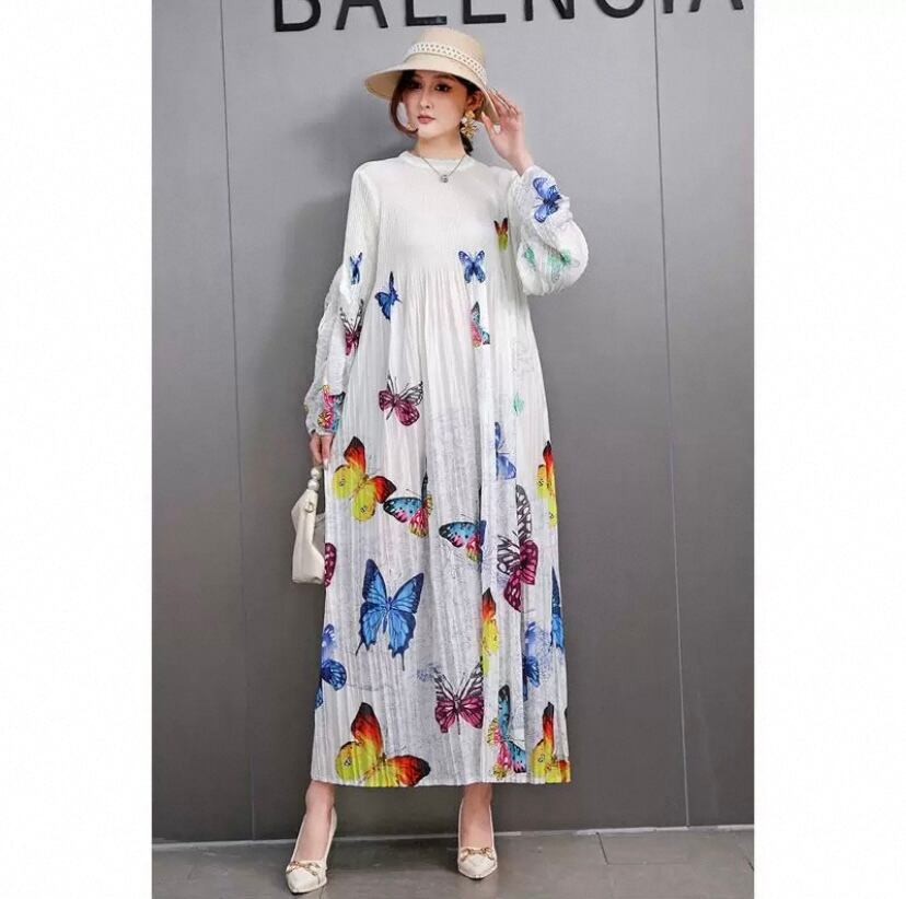 プリーツスカート マキシスカート ロング ドレス ワンピース 蝶々 白 黒 モノトーン カラフル バタフライ 花柄 フラワー エレガント ロング XL ゆったり