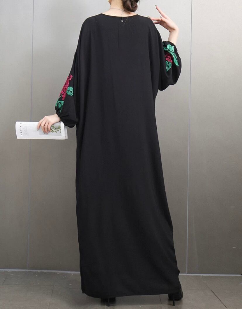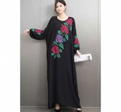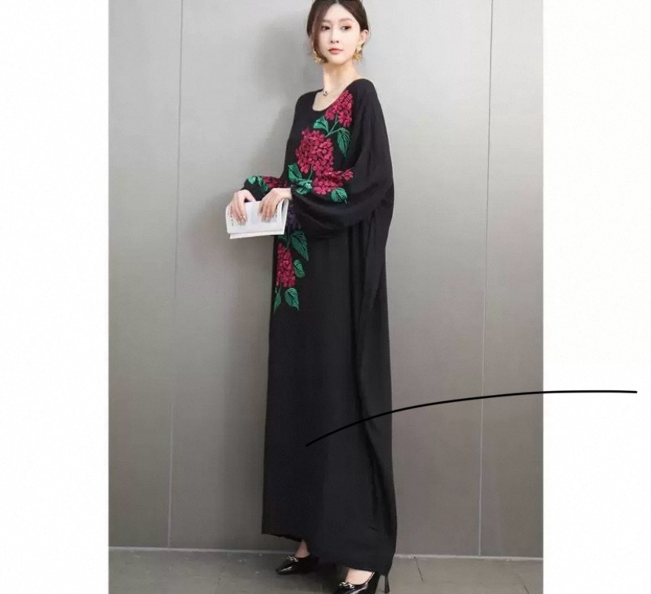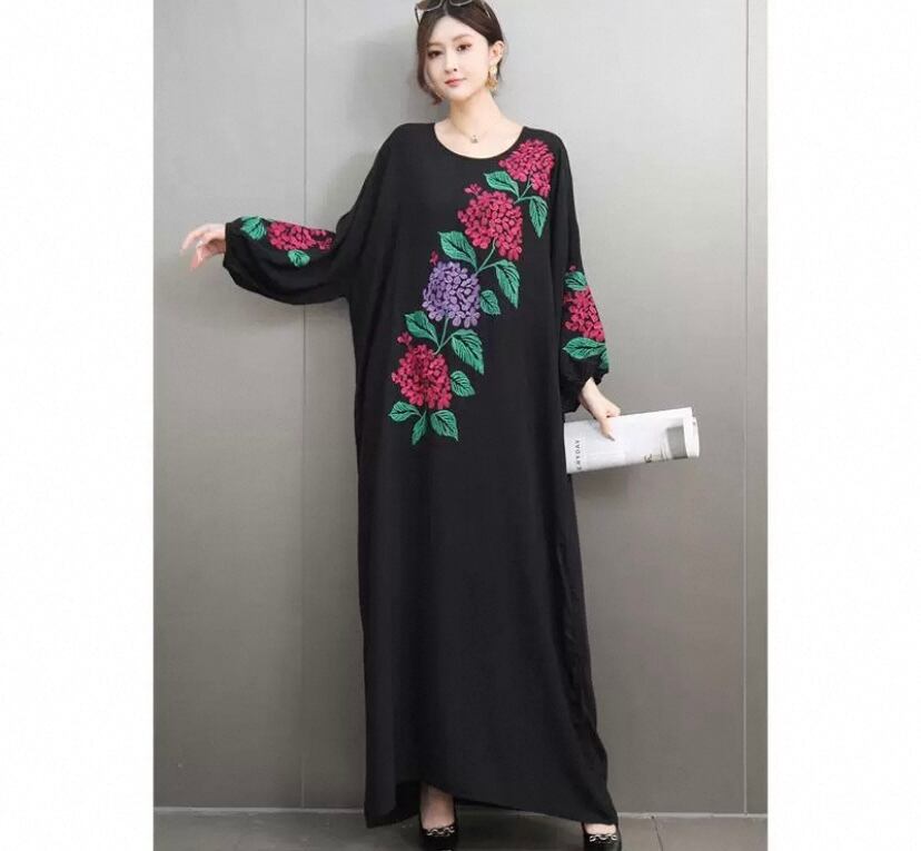 黒 紫陽花、ピンク、紫 花柄 フラワー エレガント マキシスカート ワンピース ロング 黒 チュニック ブラウス、XL ゆったり