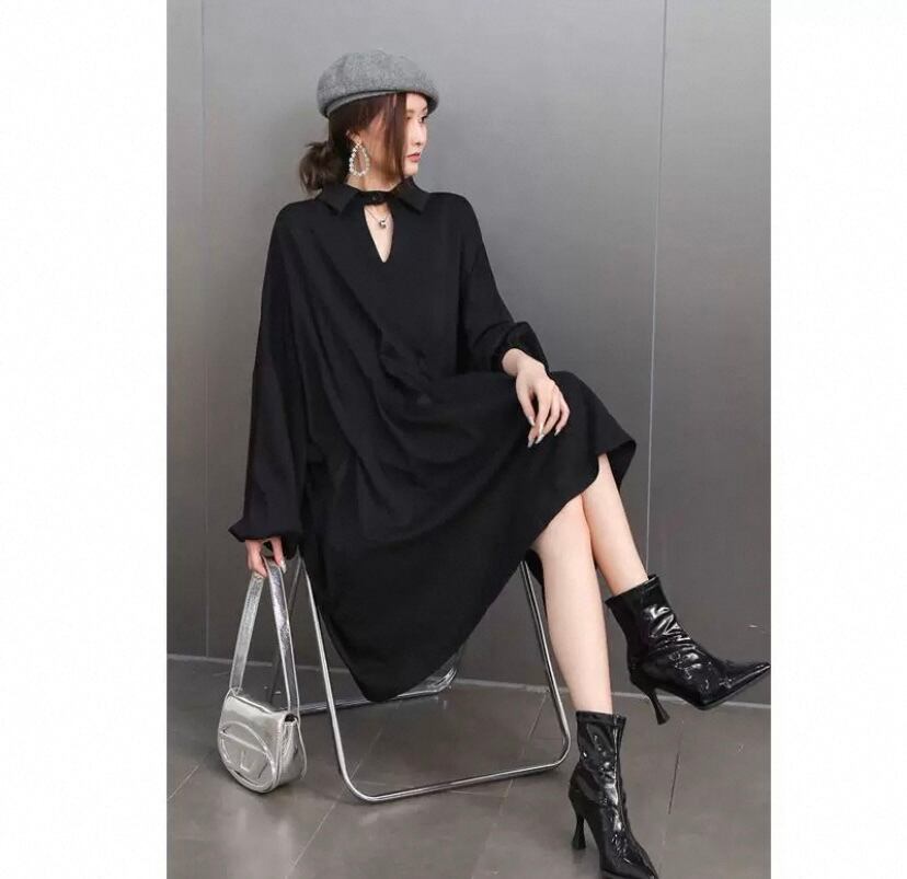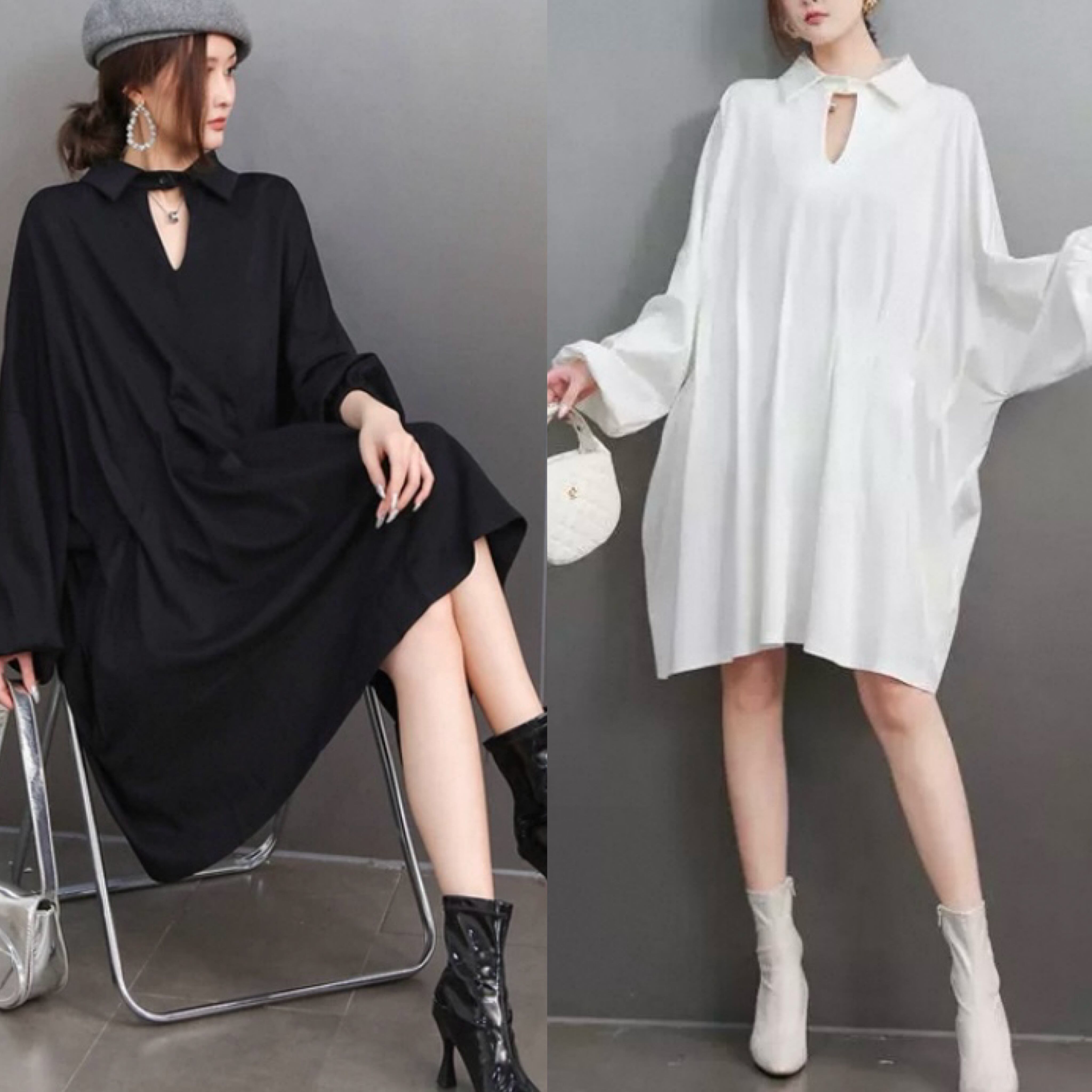黒 オーバーサイズ、ブラウス、白、トップス、チュニック、ワンピース、えり、XL、ゆったり、カジュアル、シンプル 無地