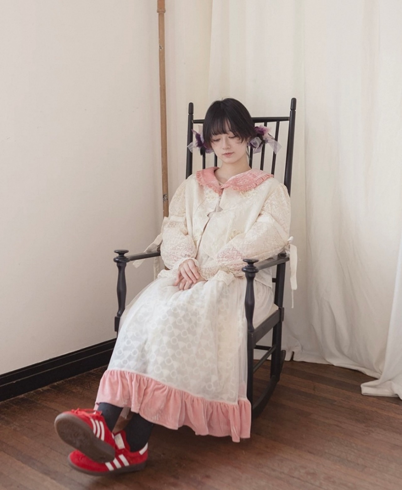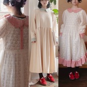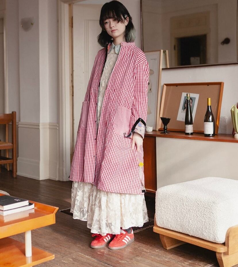 ゆったり マキシ 原宿 ガーリー、かわいい ロング ブラウス、赤 チェック、水色、ベージュ ワンピース、カジュアル モリガール 裏原宿、古着 レトロ シンプル かわいい