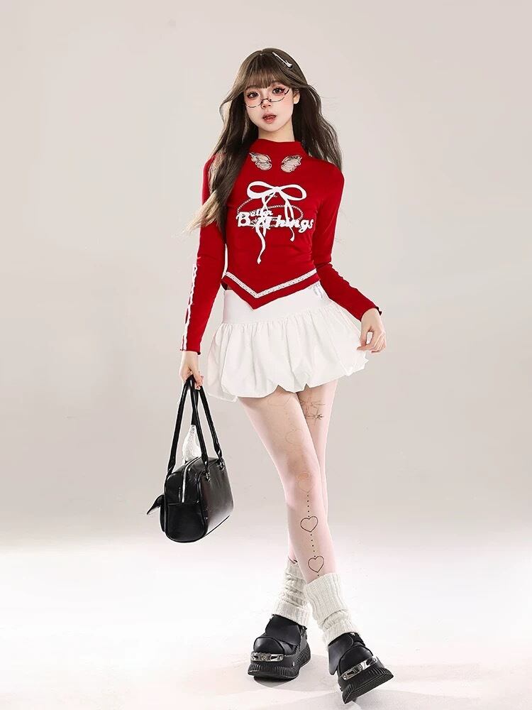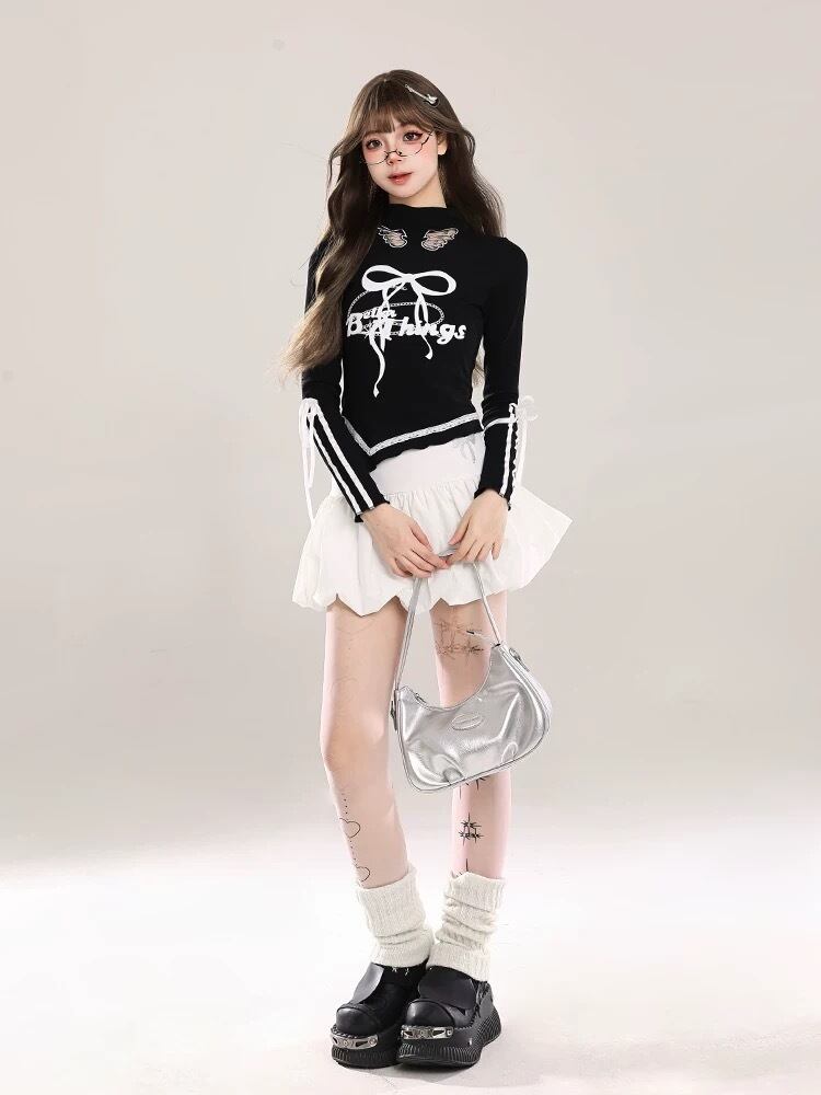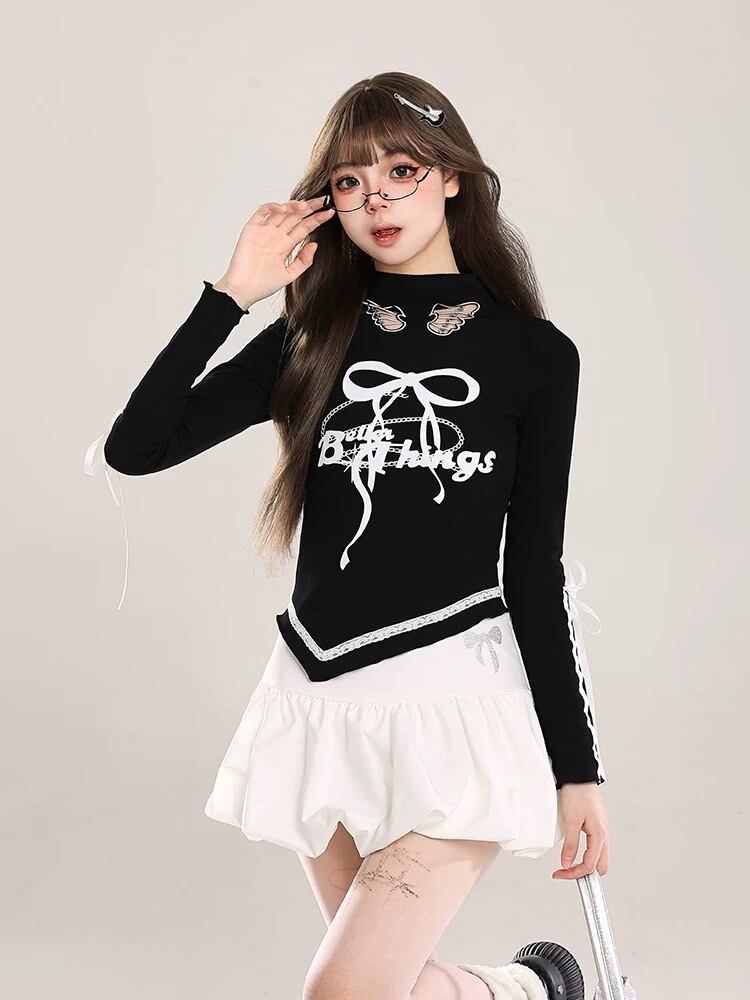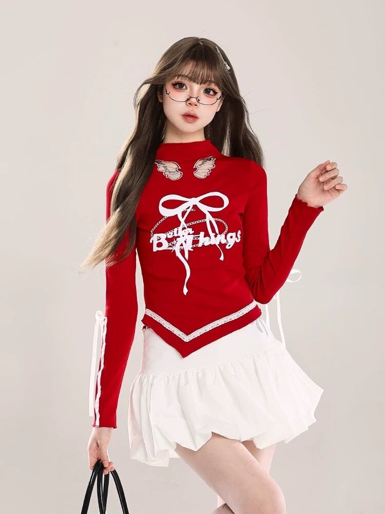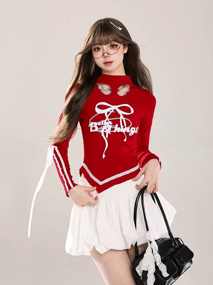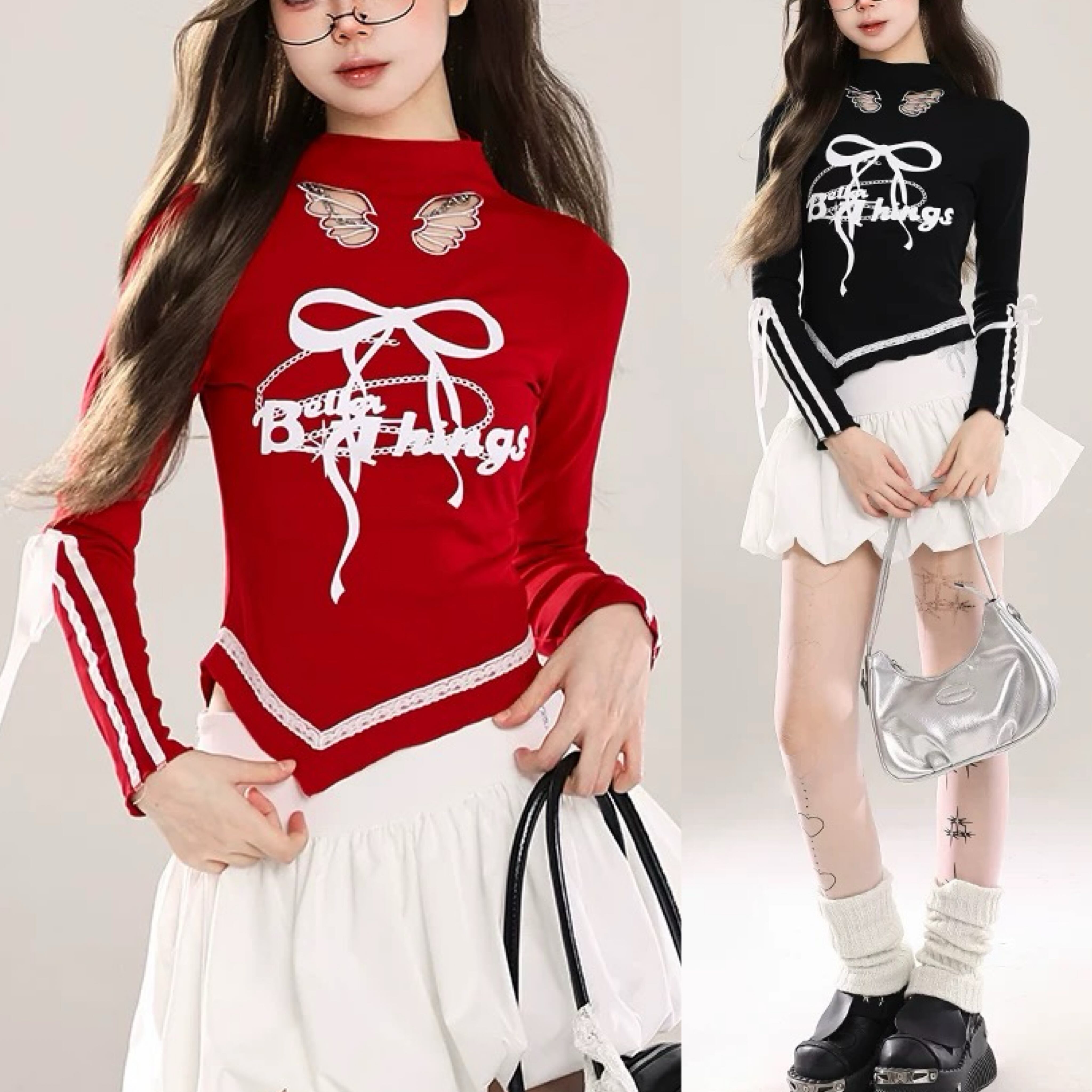 赤 黒 リボン 羽 スポーツ スポーティ、カジュアル ハイネック