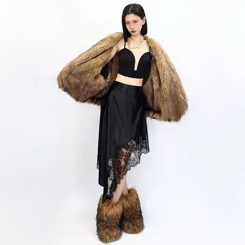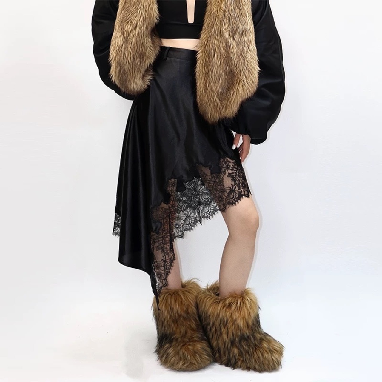 黒 XL アシンメトリー、レース、シンプル、セクシー、大人、スカート ボトムス
