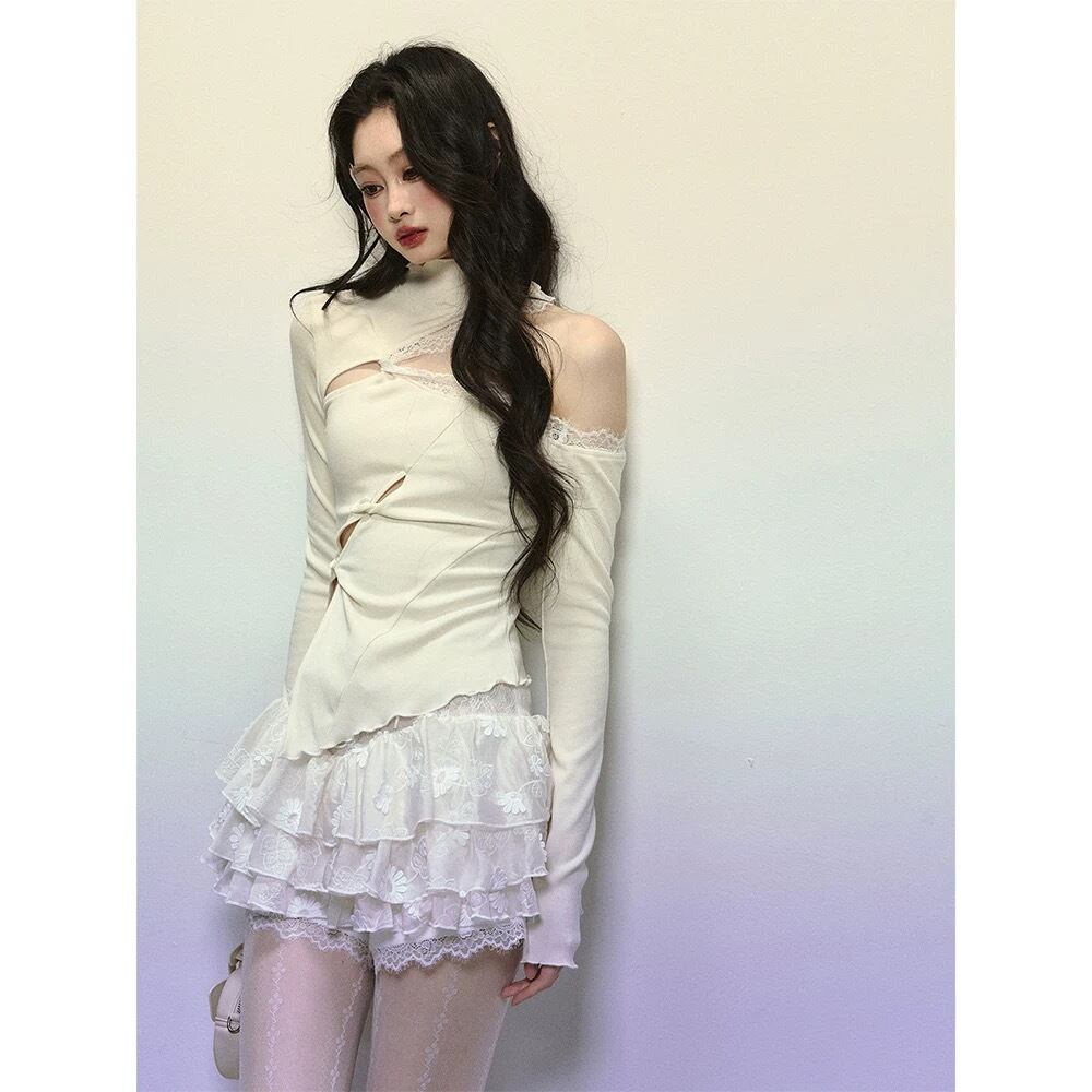 オフショルダー、ピンク、白 ブラウス、セーター、カーディガン、かわいいガーリ ー