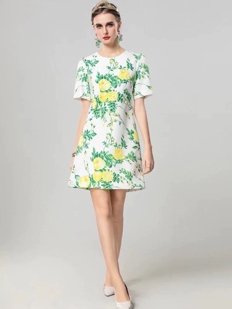 花柄 フラワー デコレーション、黄色 和柄 緑 オレンジ薔薇 黄色 センス、エレガント ゴージャス、シンプル、お嬢様、ドレス フラワー XL 2XL