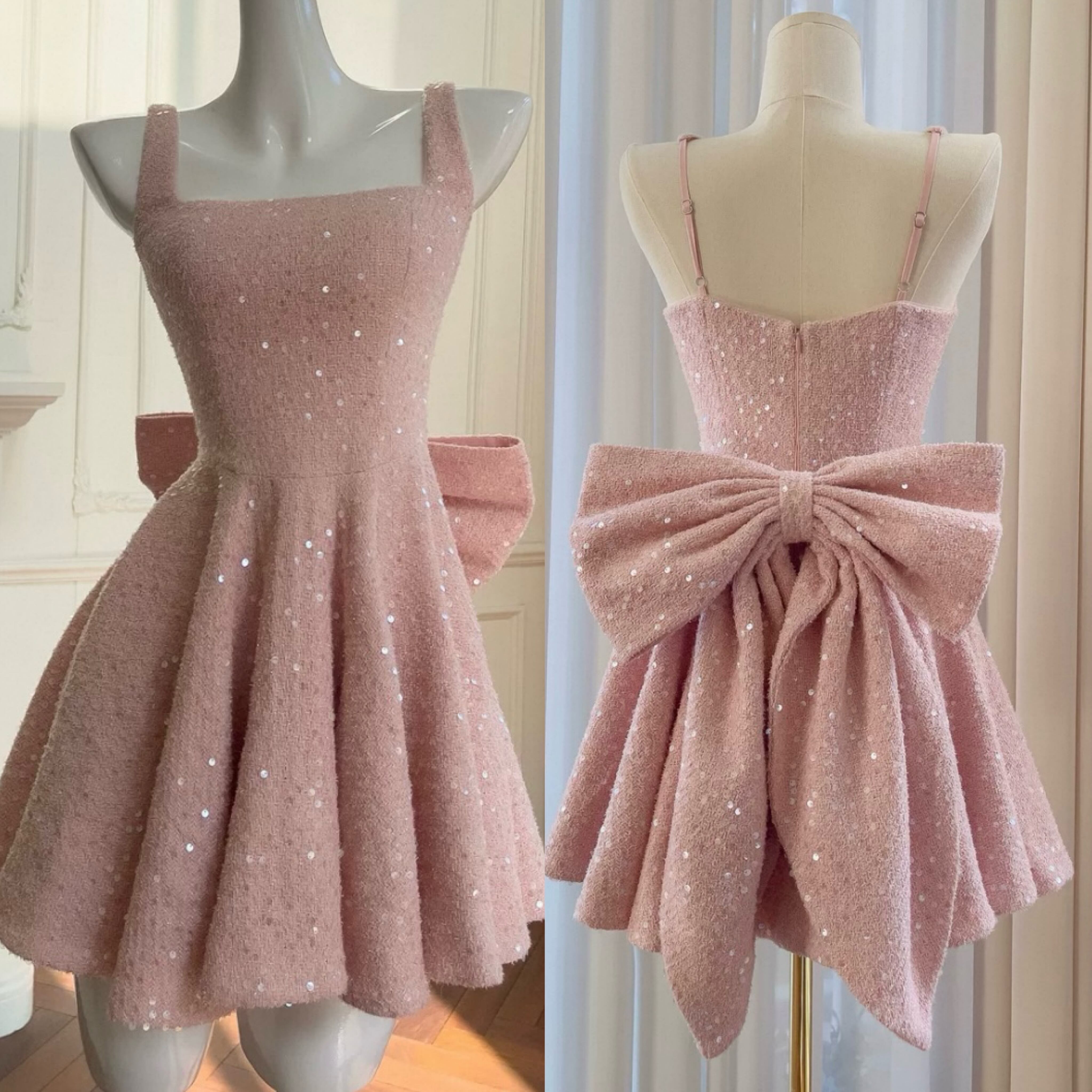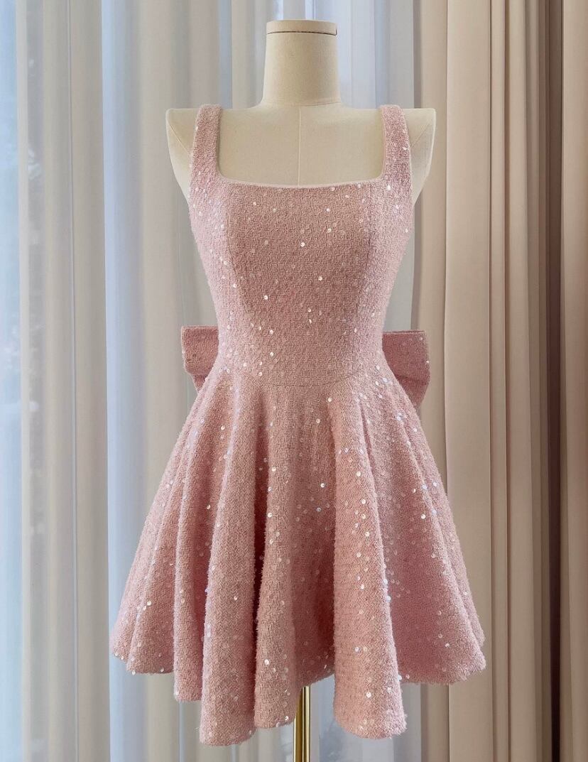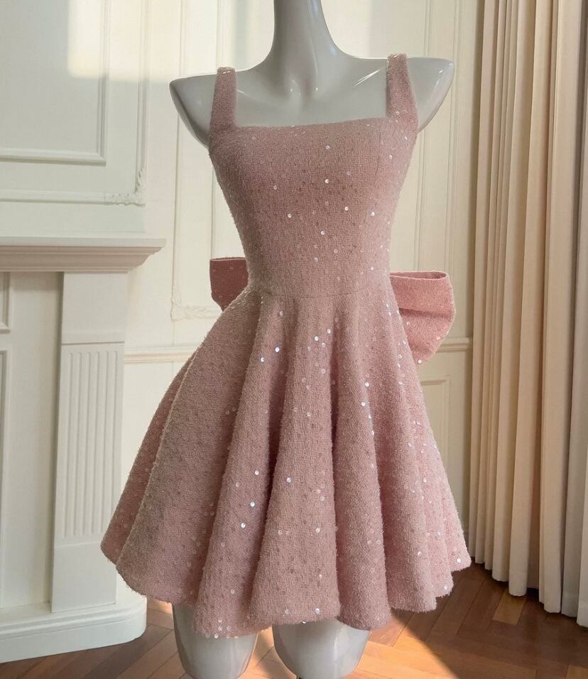 ピンク キラキラ ラメ リボン キャミソール ドレス ワンピース ガーリー、かわいい 姫