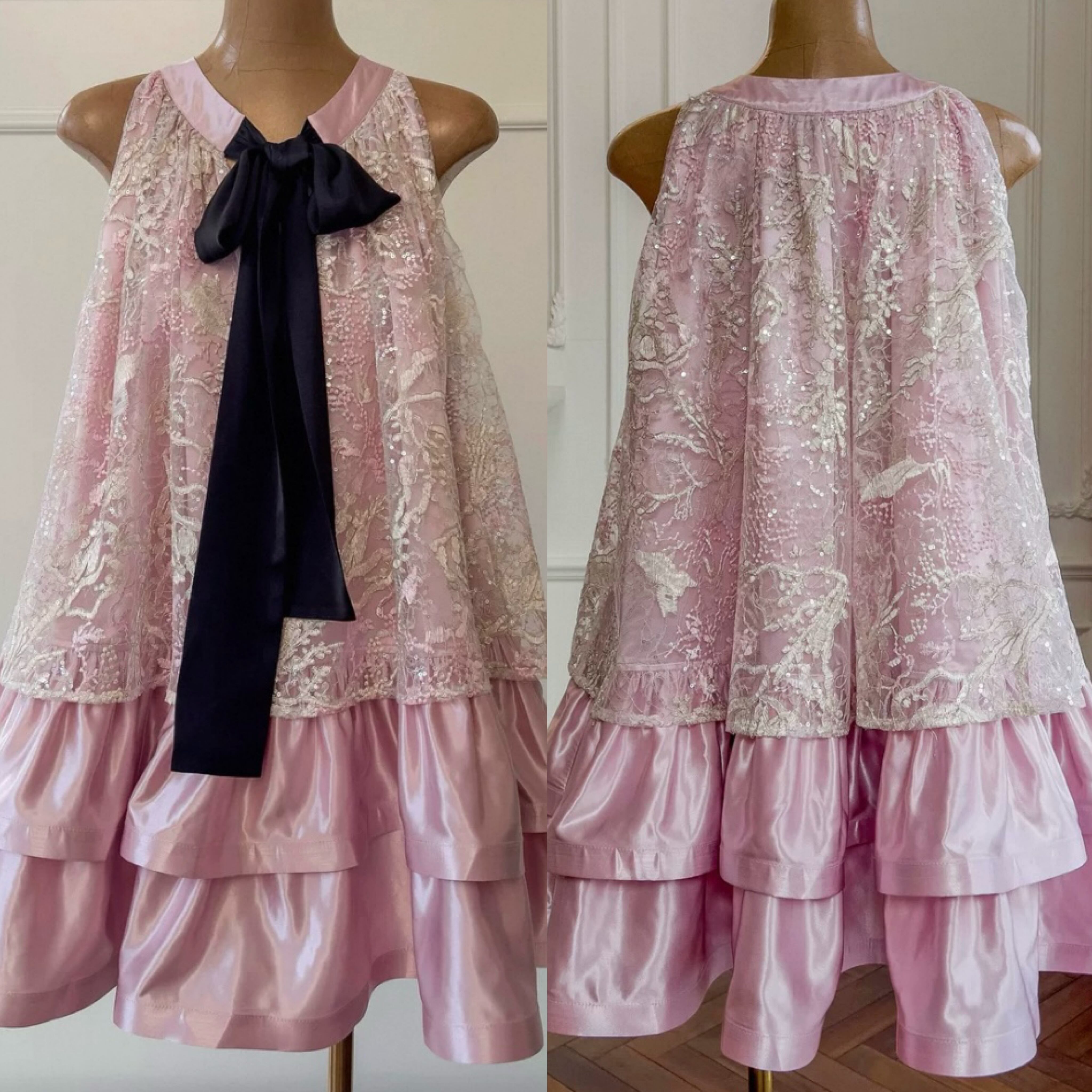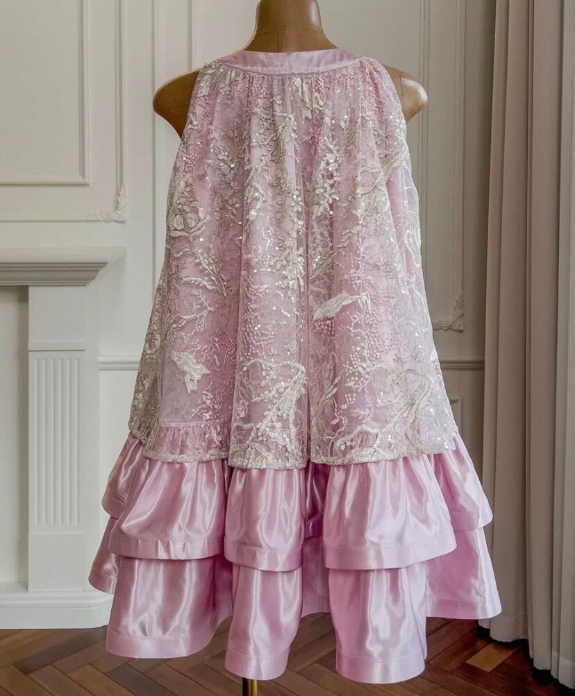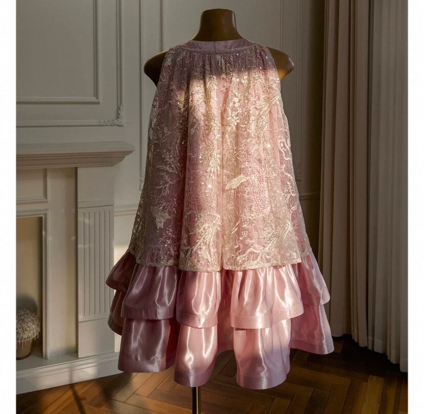 ピンク チュニック ドレス かわいい レース、花柄 フラワー