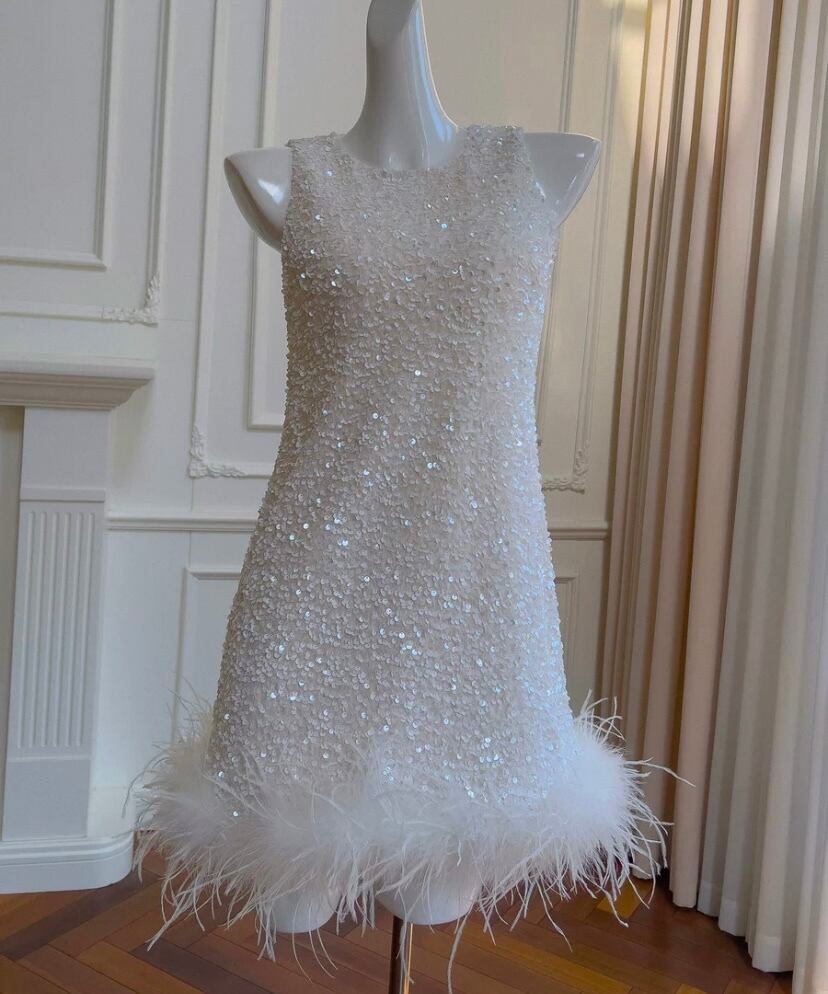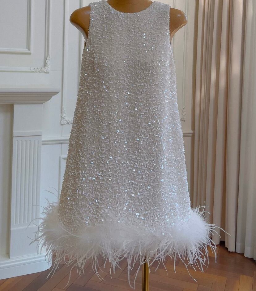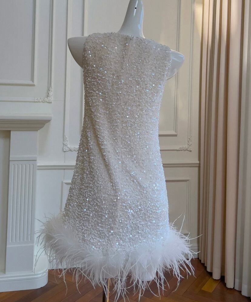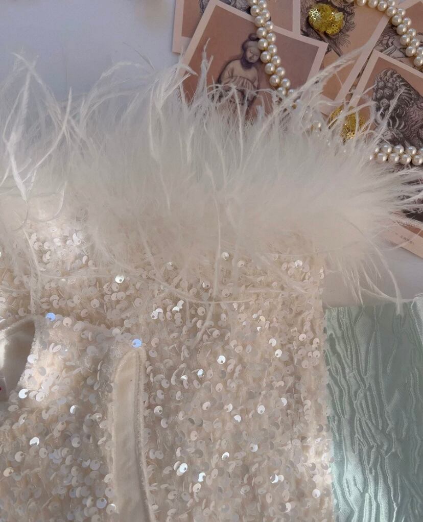 キラキラ ラメ、スパンコール、白 ファー ドレ