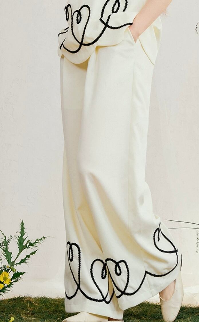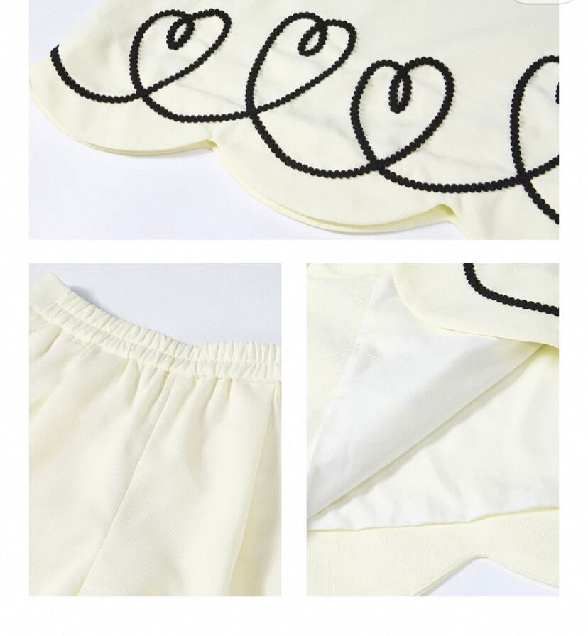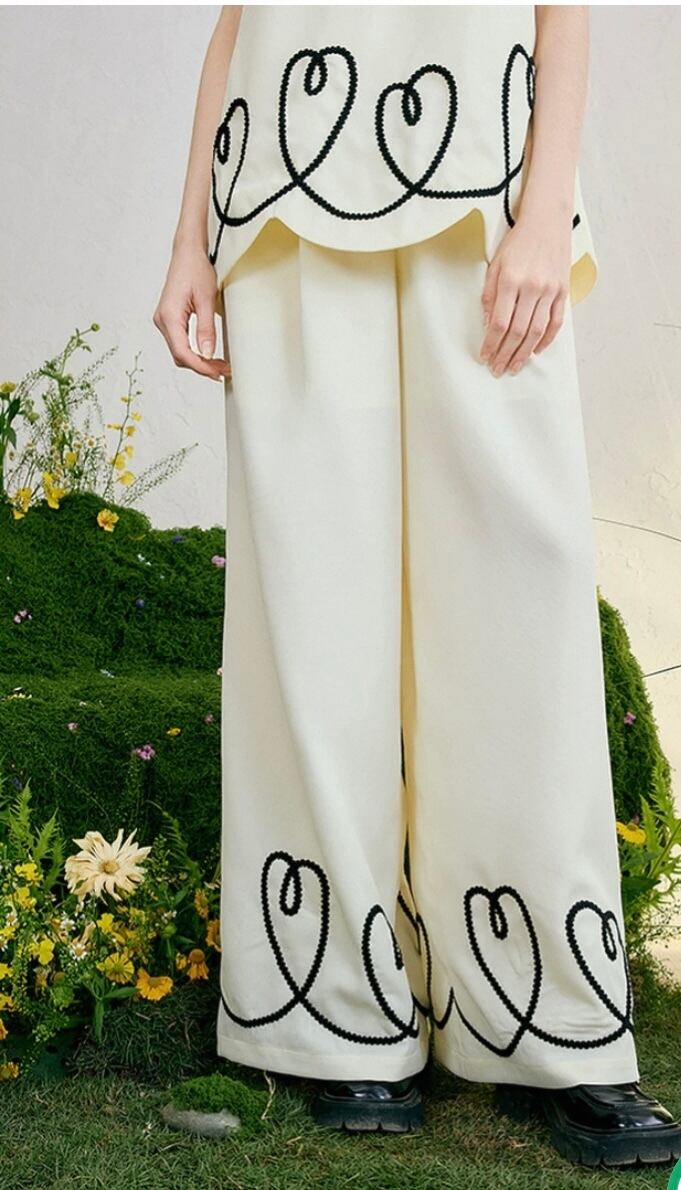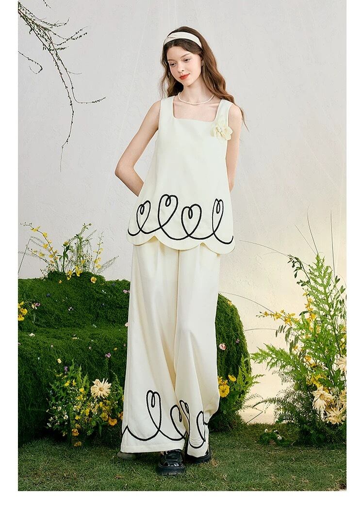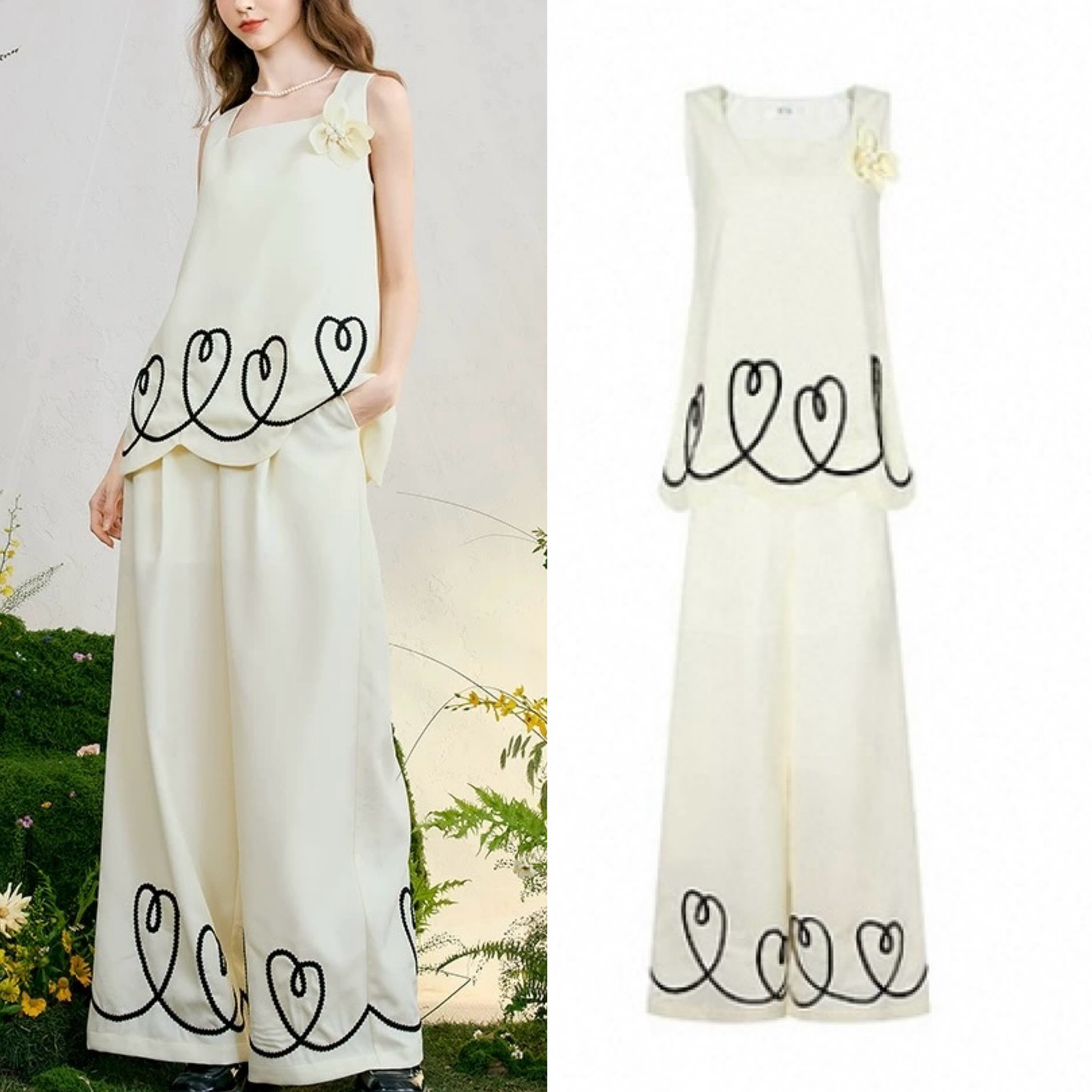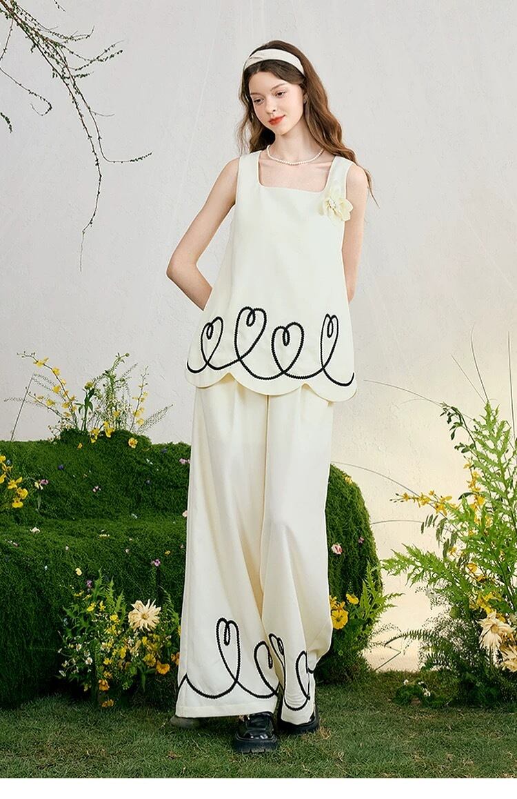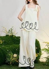 セットアップ 白 しろ ハート 黒、シンプル、カジュアル パンツ、太め、ボトムス タンクトップ、ノースリーブ ブラウス、ツーピース ピー