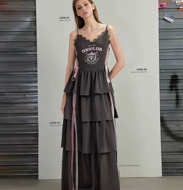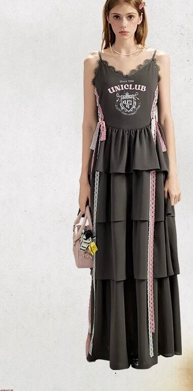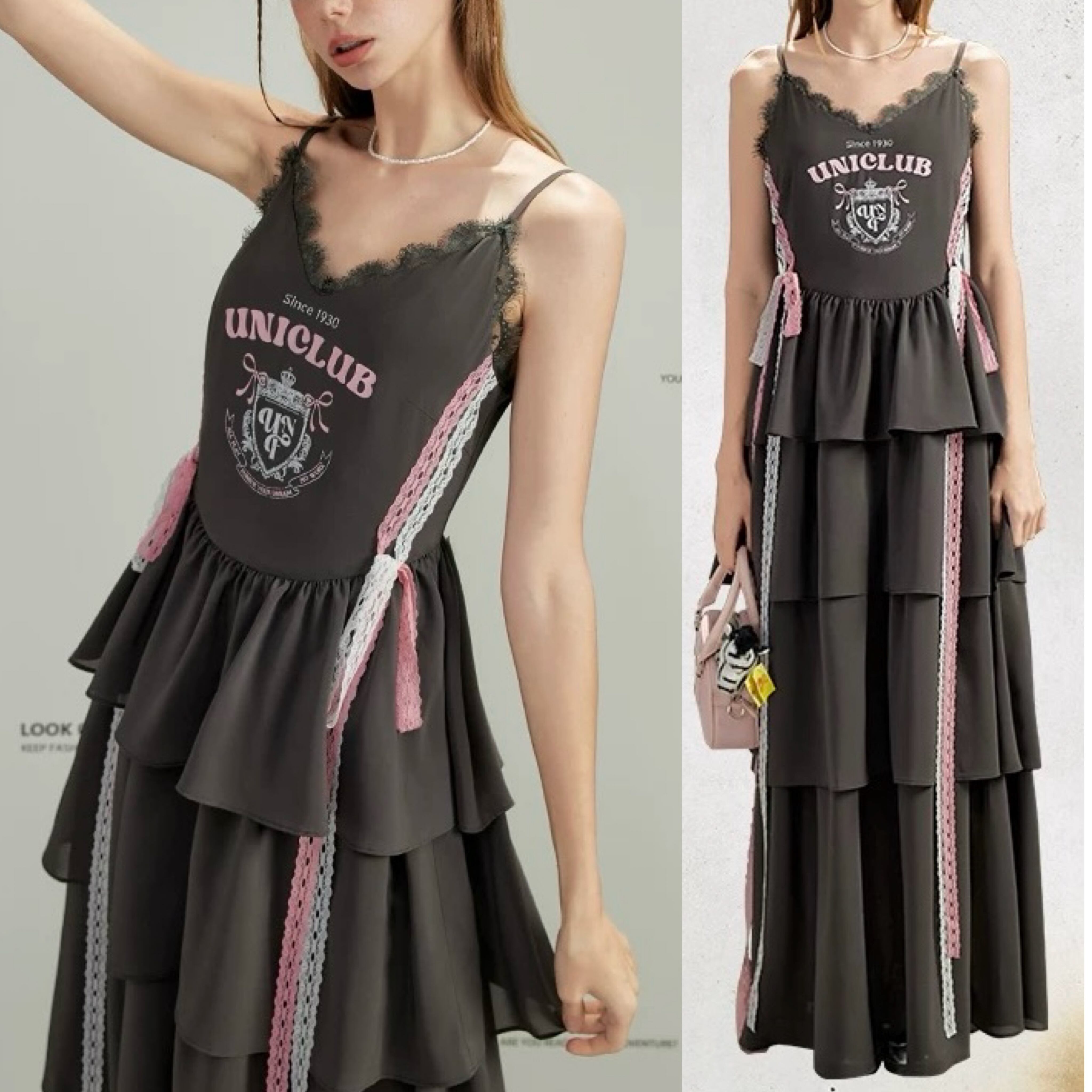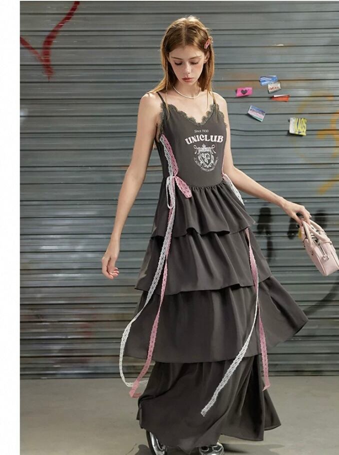 ★サイズ キャミソール スポーティー、マキシ、グレー、リボン、ピンク ガーリー、かわいい フレアスカート ワンピース ロングスカート 原宿、スウェット カジュアル スポーティー