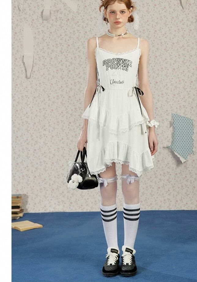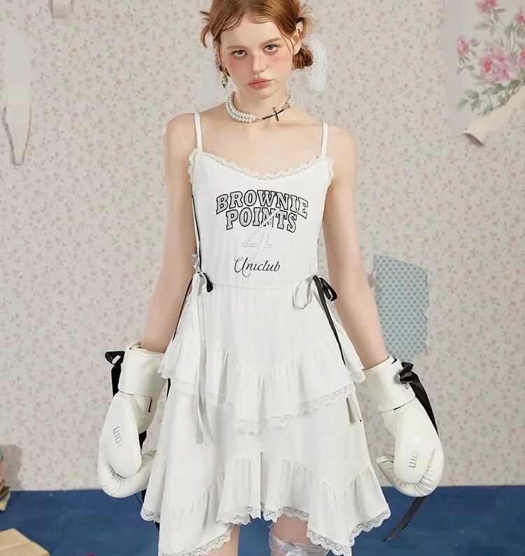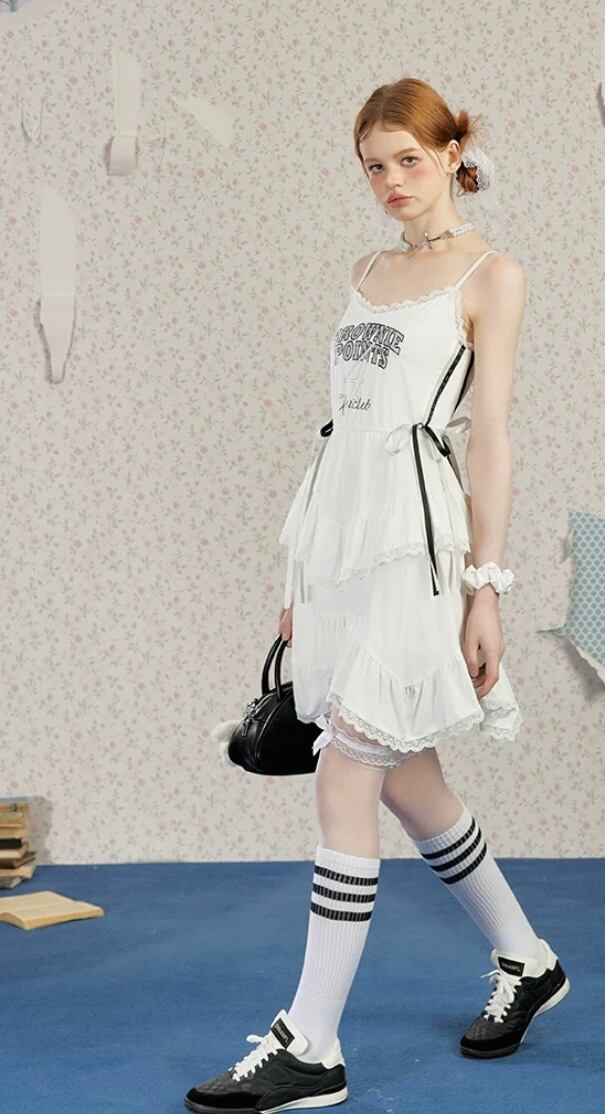 キャミソール、白、スポーティー、カジュアル リボン ガーリー、ホワイト、ミニスカート、原宿、カジュアル かわいい ガーリー、キャミソール ワンピース ドレス