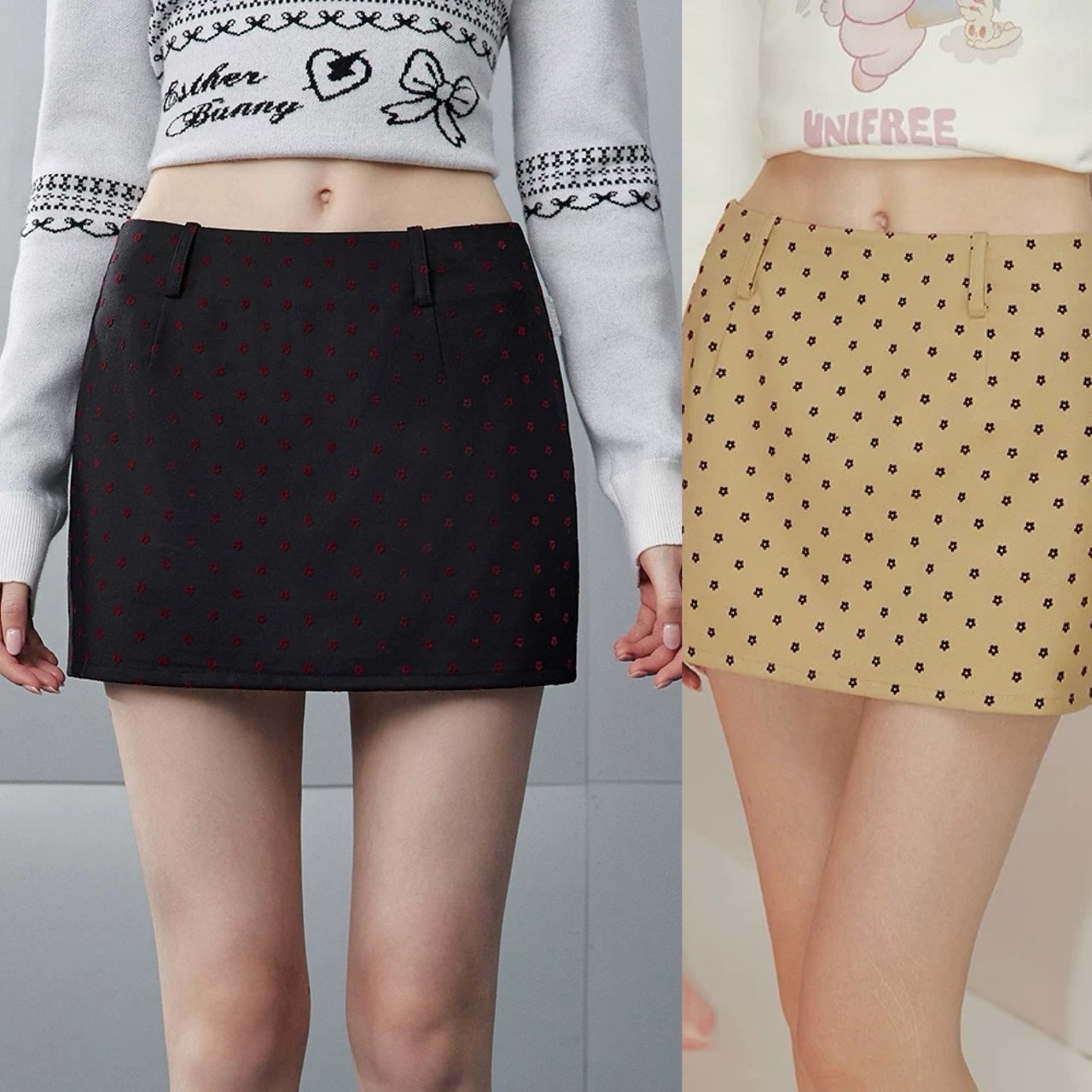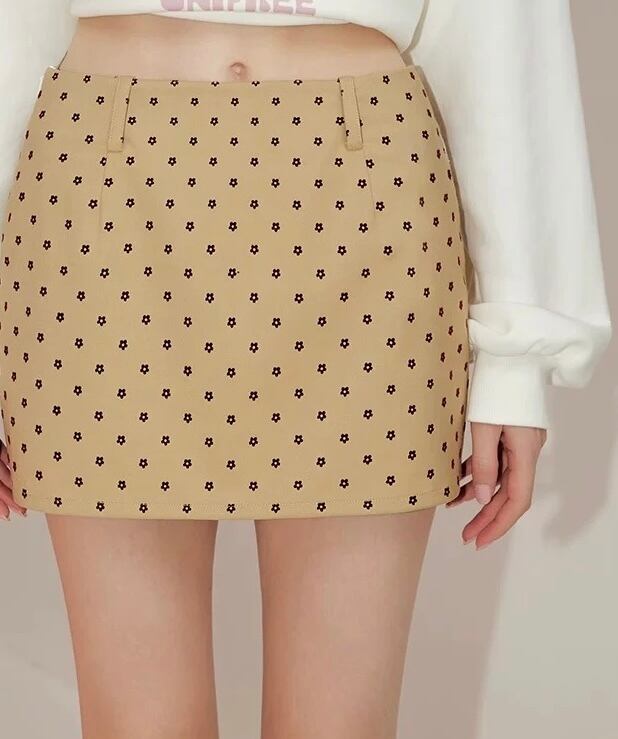 ボトムス スカート、タイトスカート、花柄、フラワーカジュアル、シンプル、ミニスカート、ベージュ、黒 赤 ガーリー、原宿 かわいい