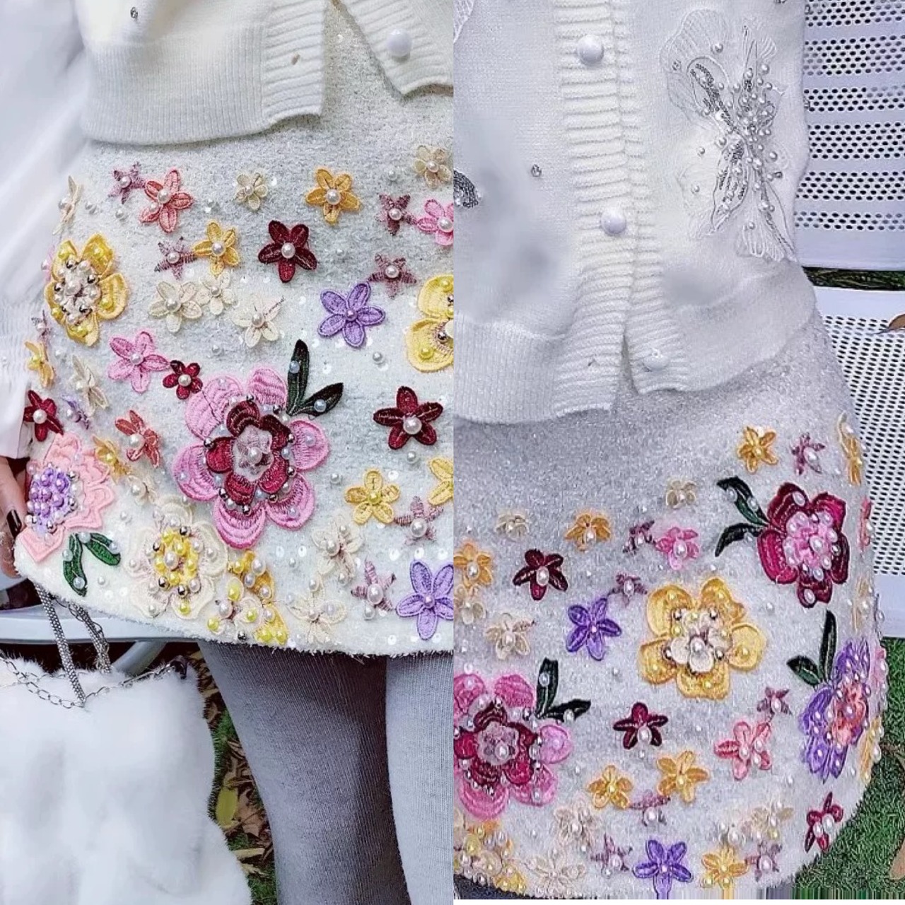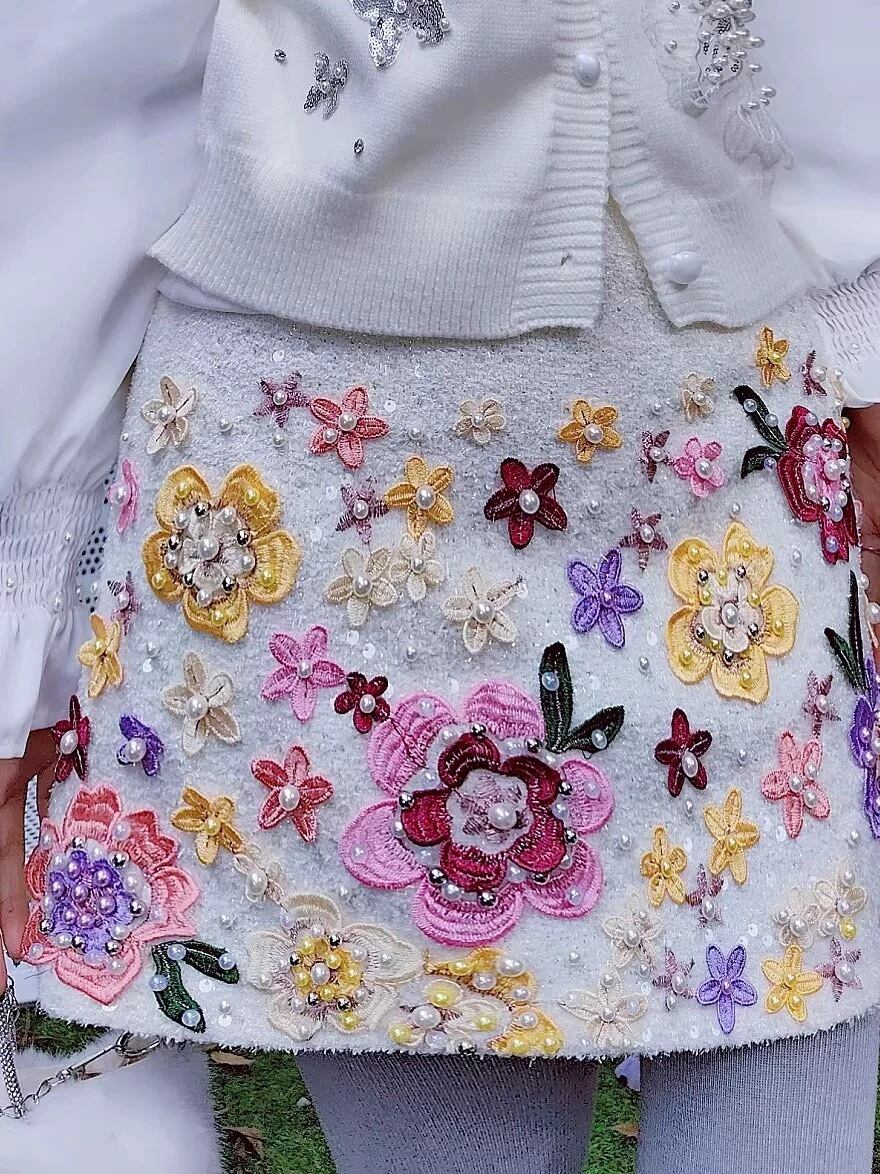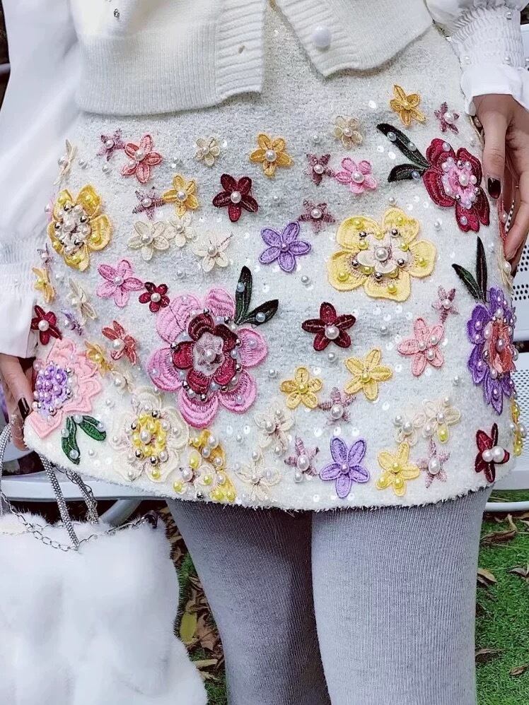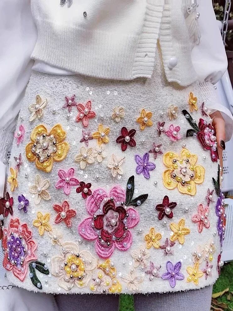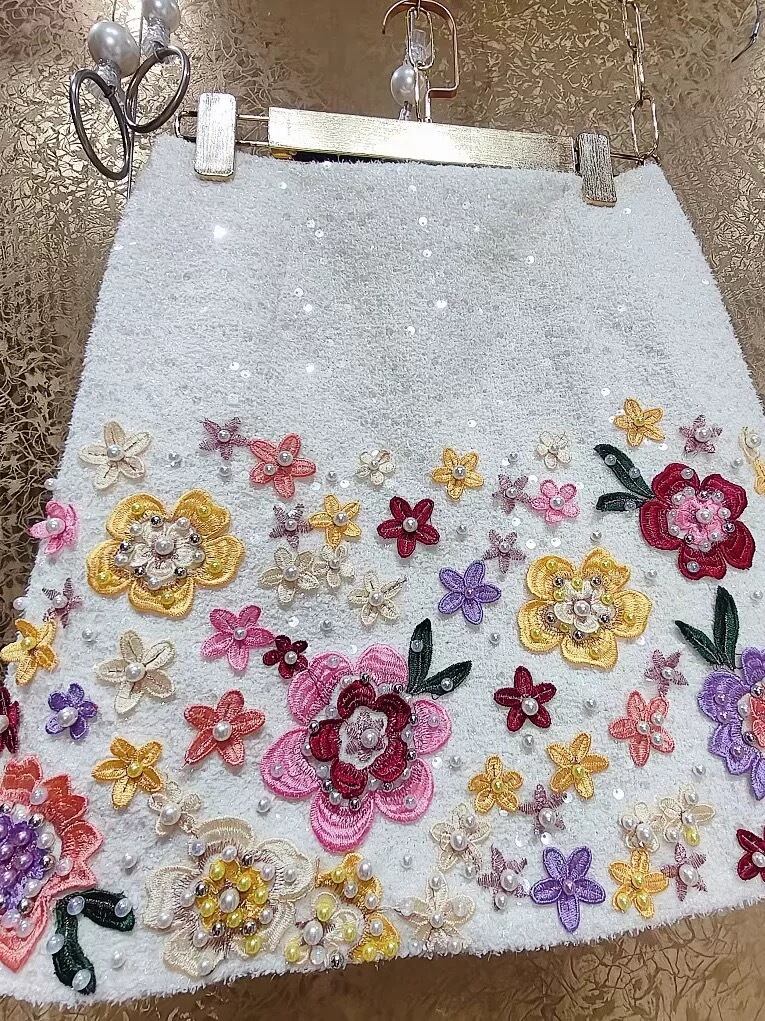 デコレーション スカート、ボトムス フラワー ひまわり ミニスカート フラワー カラフル、ラインストーン カラフル キラキラ ラメ